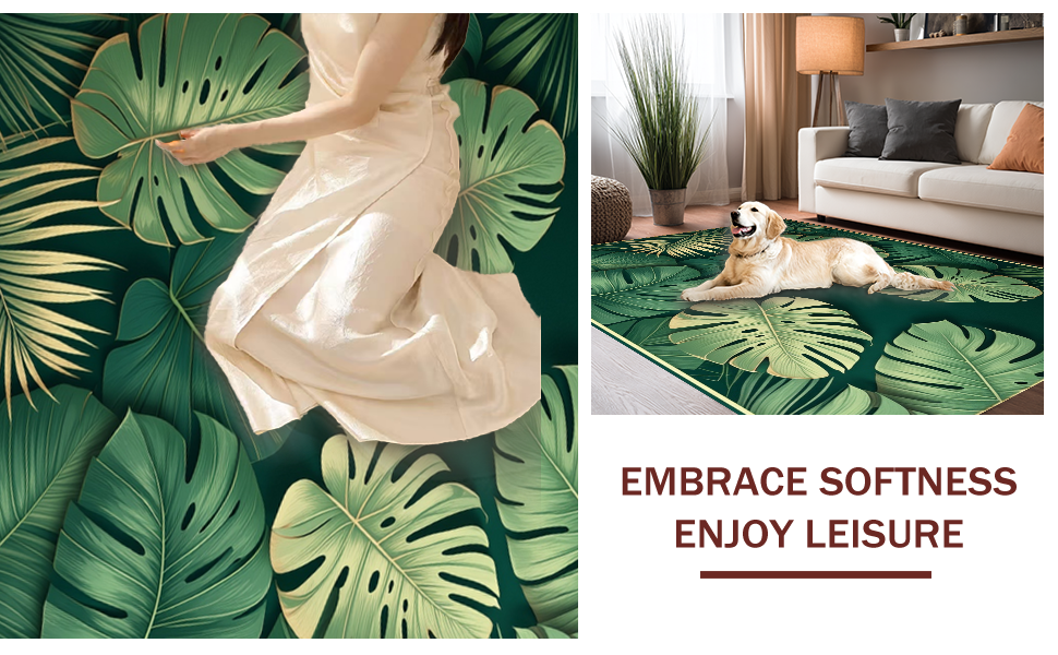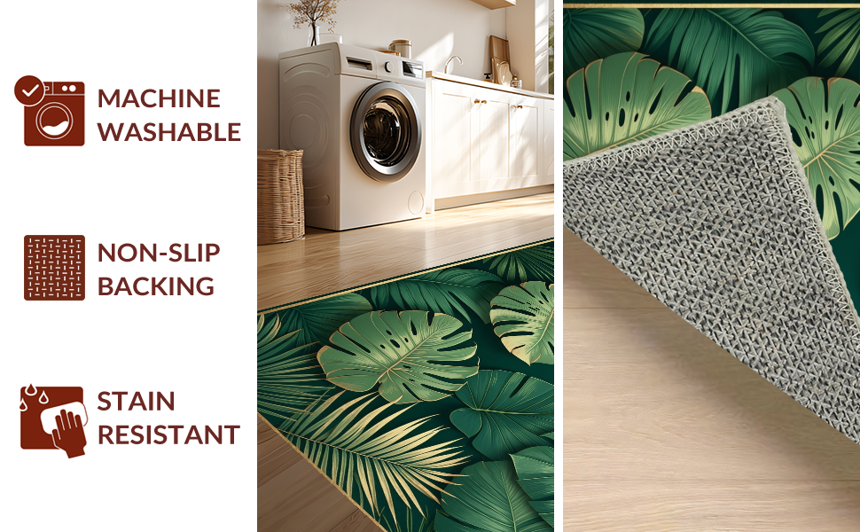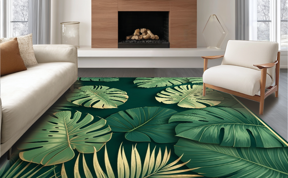 Ultra Soft Area Rug, Non Slip, Stain Resistant, Washable Area Rugs for Living Room, Bedroom, Elegant Gold Green Botanical Motif(Green) Overview: