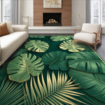Flatwoven High Traffic Area Rug, Elegant Gold Green Botanical Motif, Non Slip, Stain Resistant, Washable Area Rugs for Living Room, Bedroom (Green) Overview: