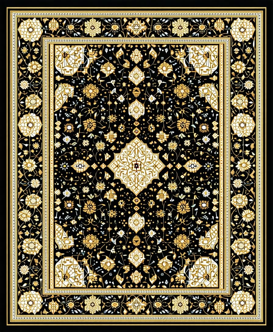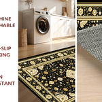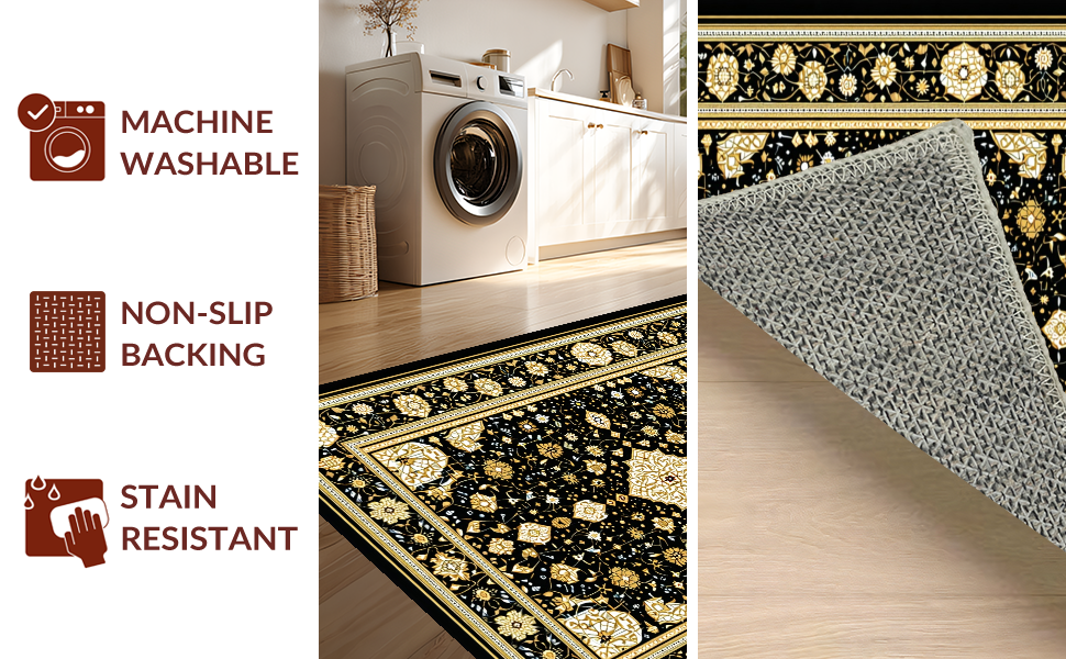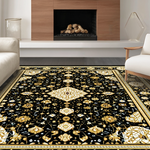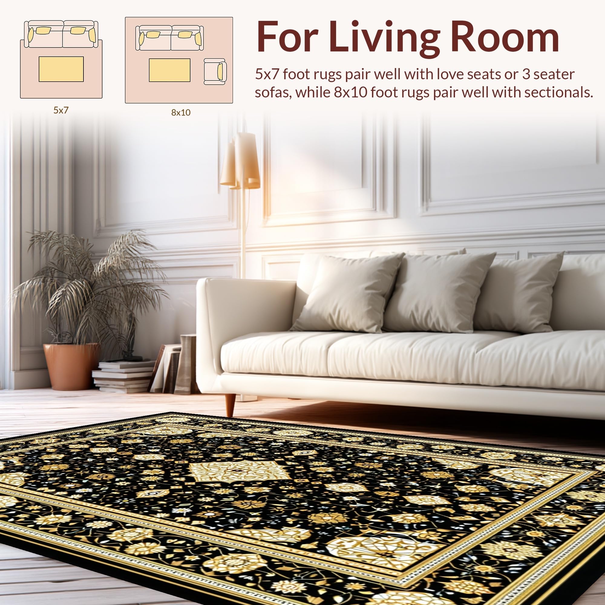 Ultra Soft Area Rug, Non Slip, Stain Resistant, Washable Area Rugs for Living Room, Bedroom, Elegant Gold Medallion Pattern(Black) Overview: