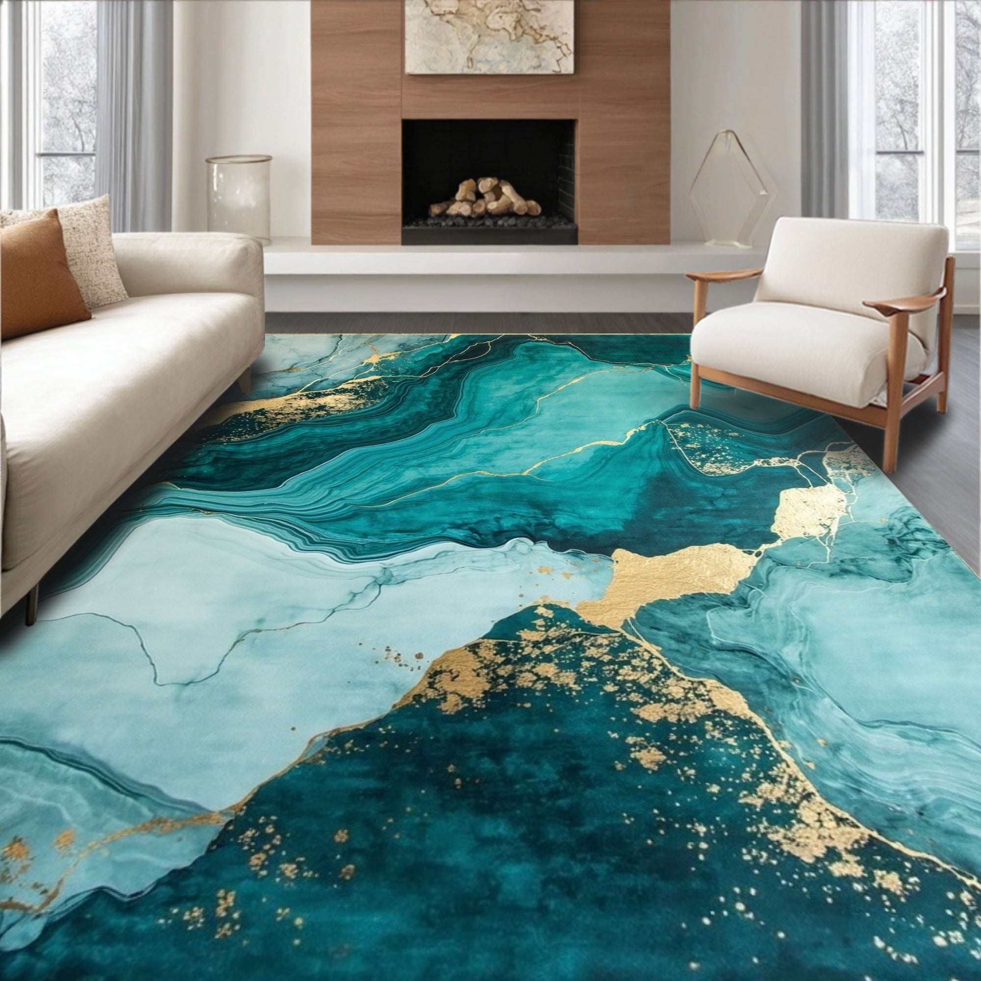 Flatwoven High Traffic Area Rug, Elegant Gold Veined Aesthetic, Non Slip, Stain Resistant, Washable Area Rugs for Living Room, Bedroom (Blue) Overview: