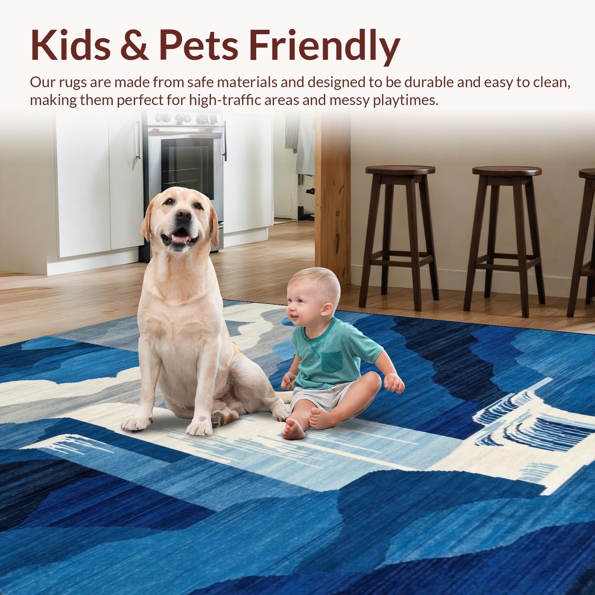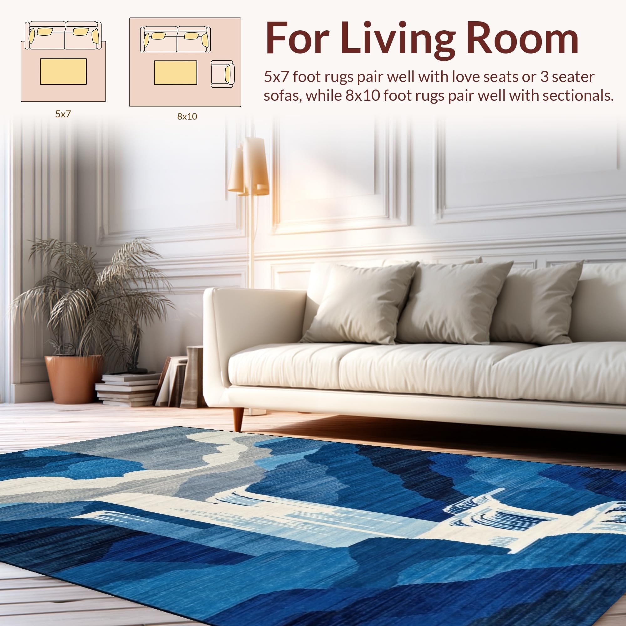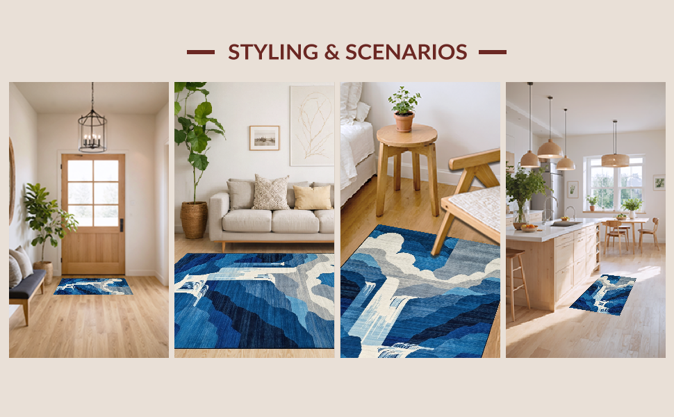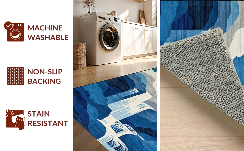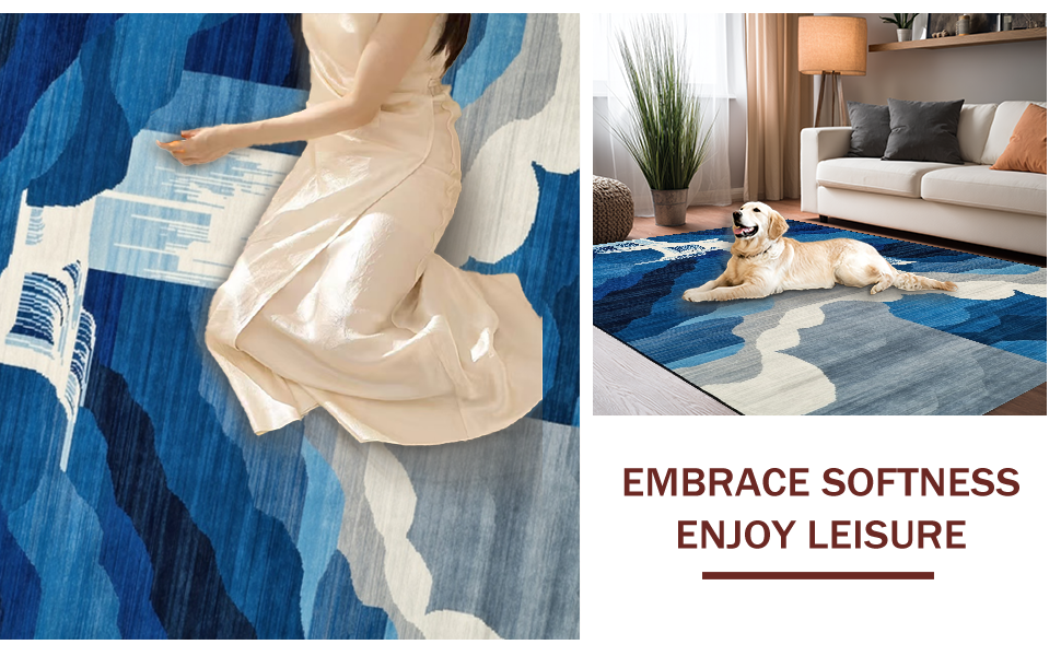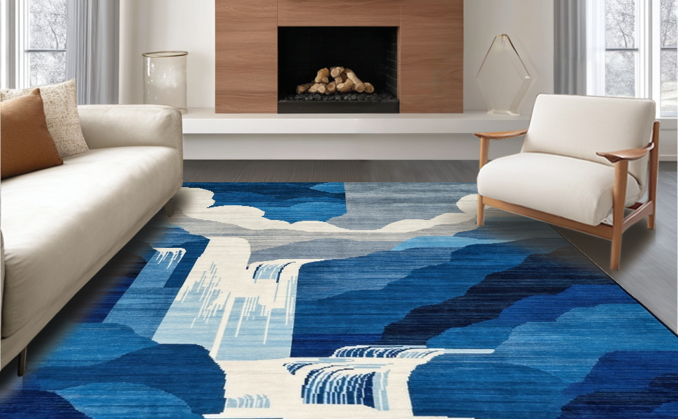 Ultra Soft Area Rug, Non Slip, Stain Resistant, Washable Area Rugs for Living Room, Bedroom, Elegant Gradual Color Transition(Blue) Overview: