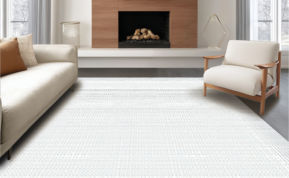 Ultra Soft Area Rug, Non Slip, Stain Resistant, Washable Area Rugs for Living Room, Bedroom, Elegant Gray and White Grids(Gray) Overview: