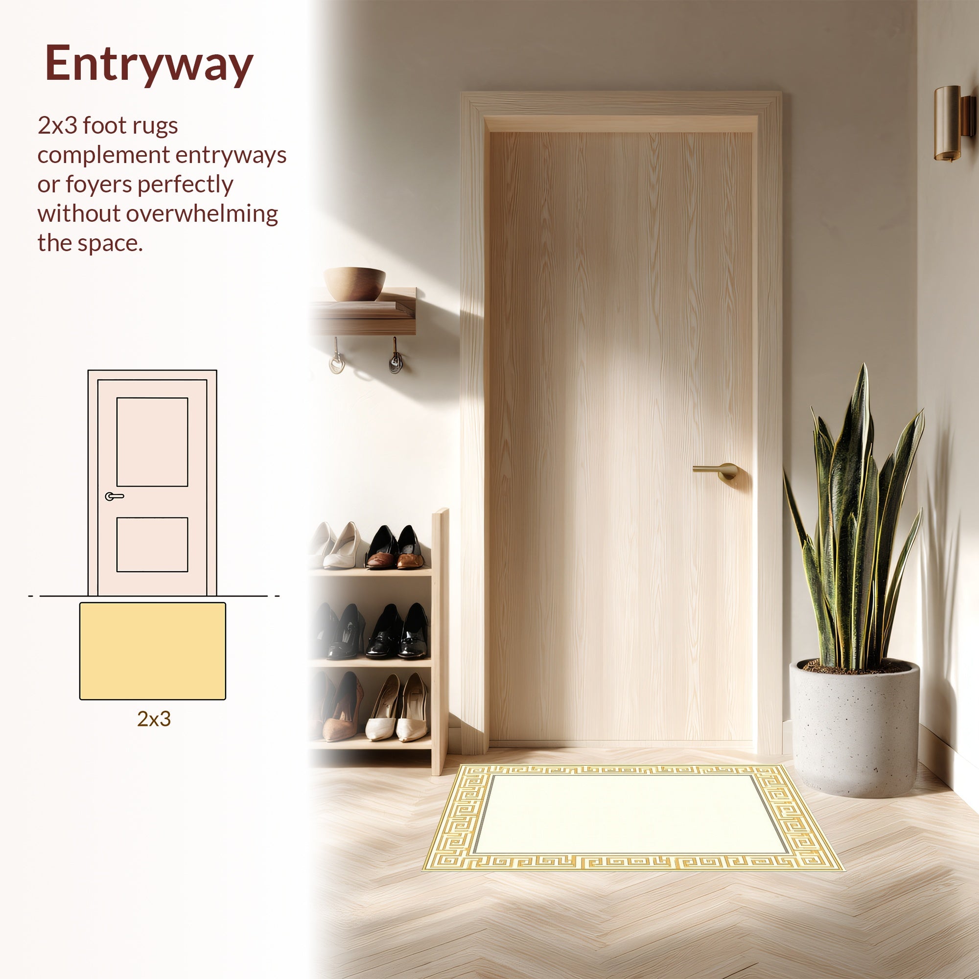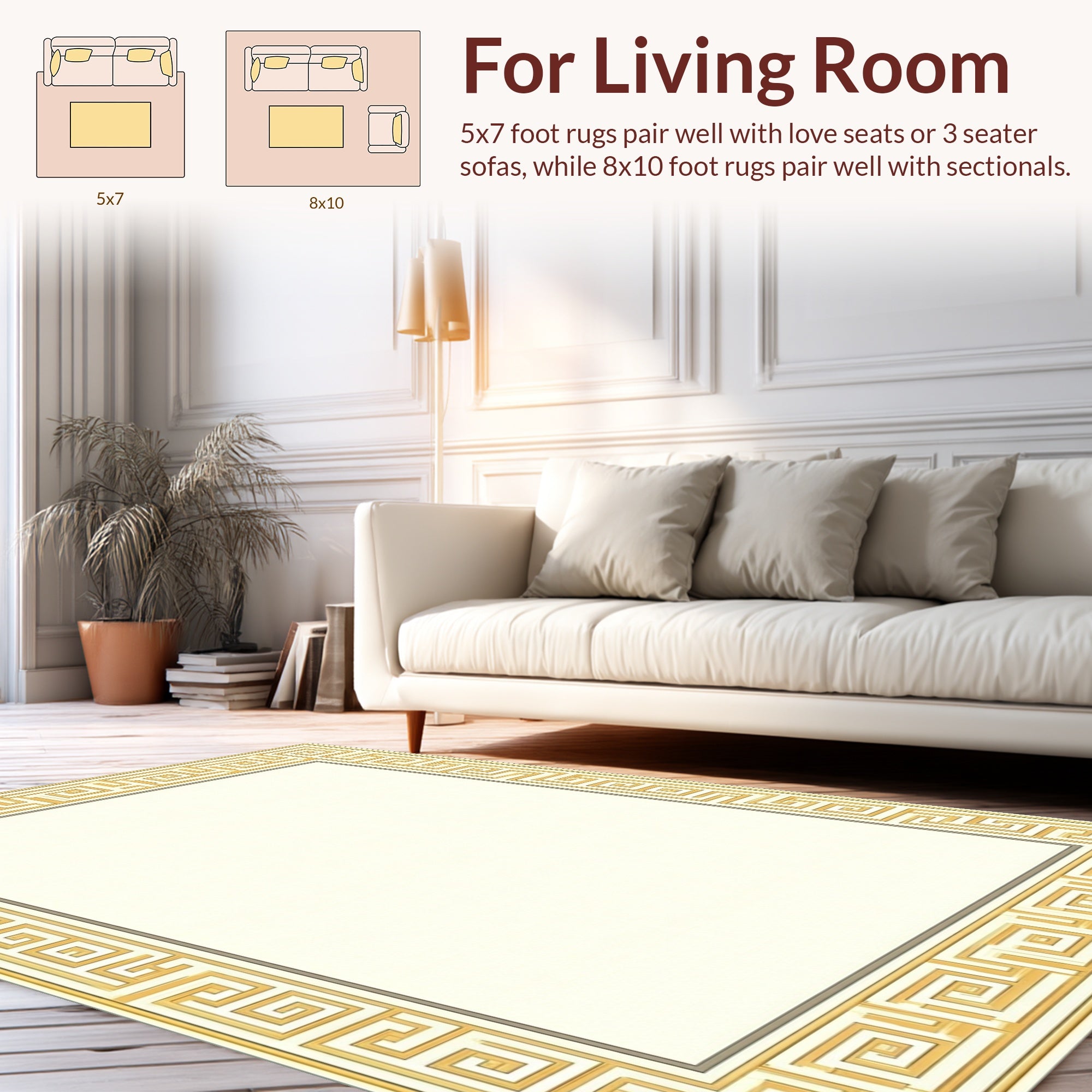 Flatwoven High Traffic Area Rug, Elegant Greek Key Geometric Motif, Non Slip, Stain Resistant, Washable Area Rugs for Living Room, Bedroom (Beige) Overview: