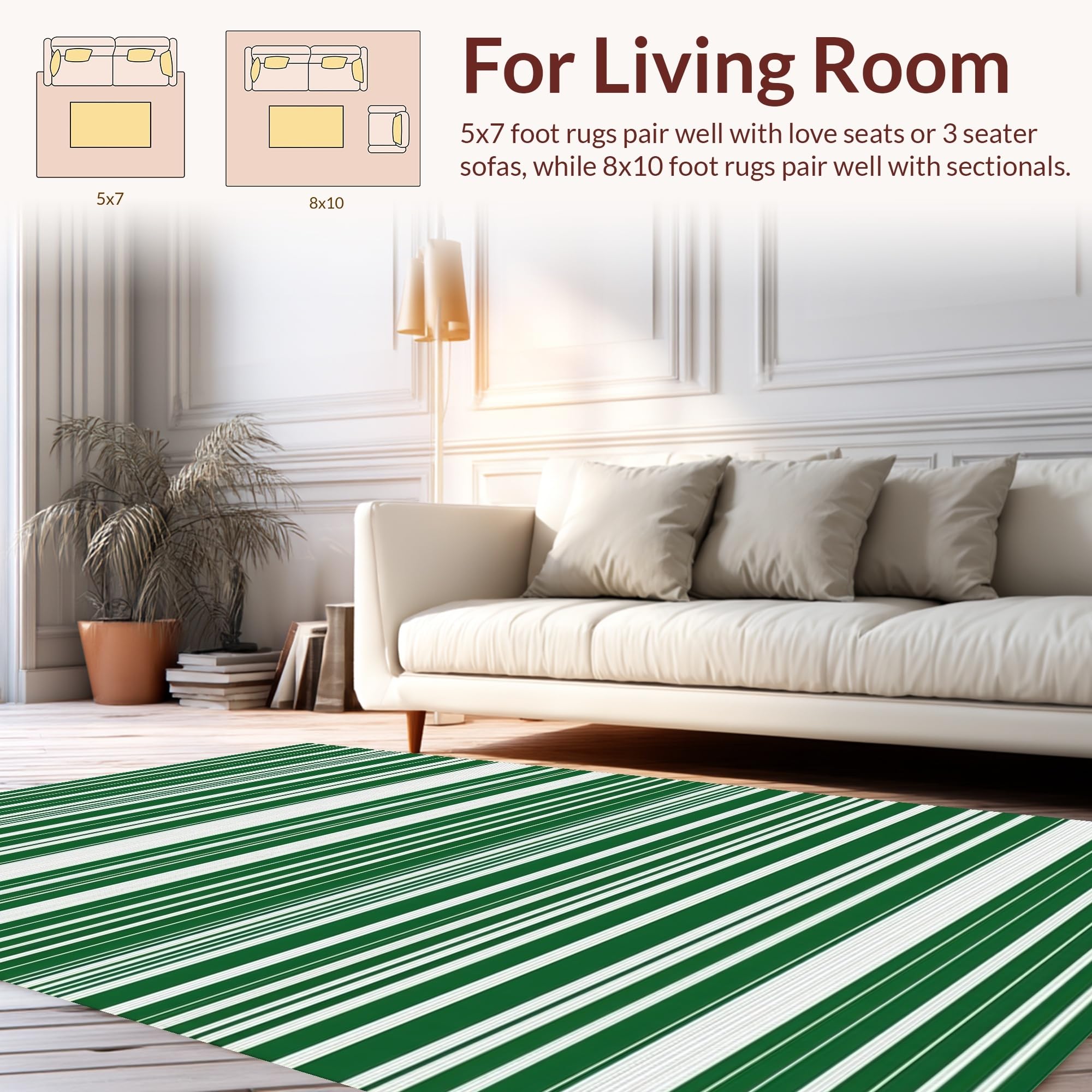 Ultra Soft Area Rug, Non Slip, Stain Resistant, Washable Area Rugs for Living Room, Bedroom, Elegant Green and White Symmetry(Green) Overview: