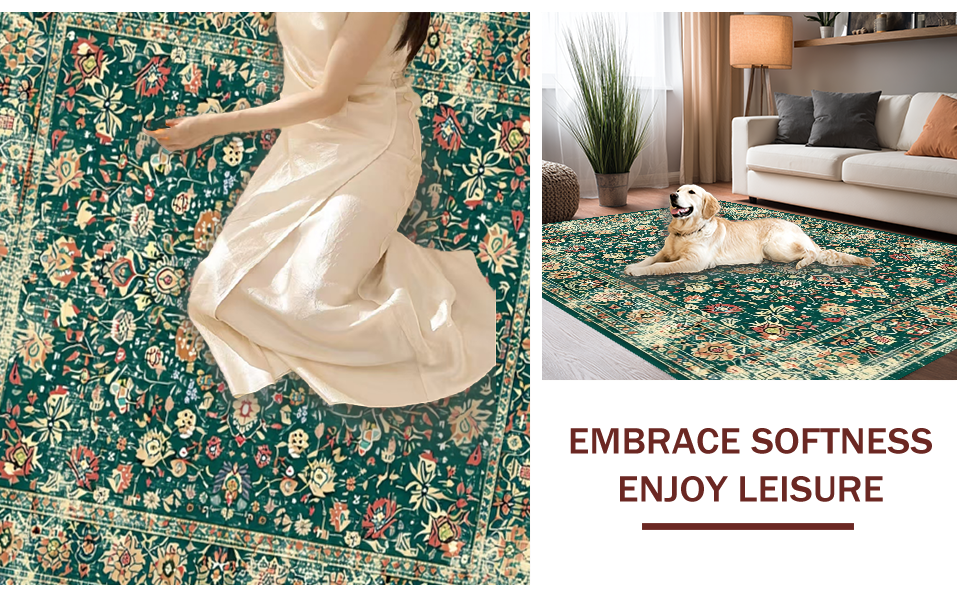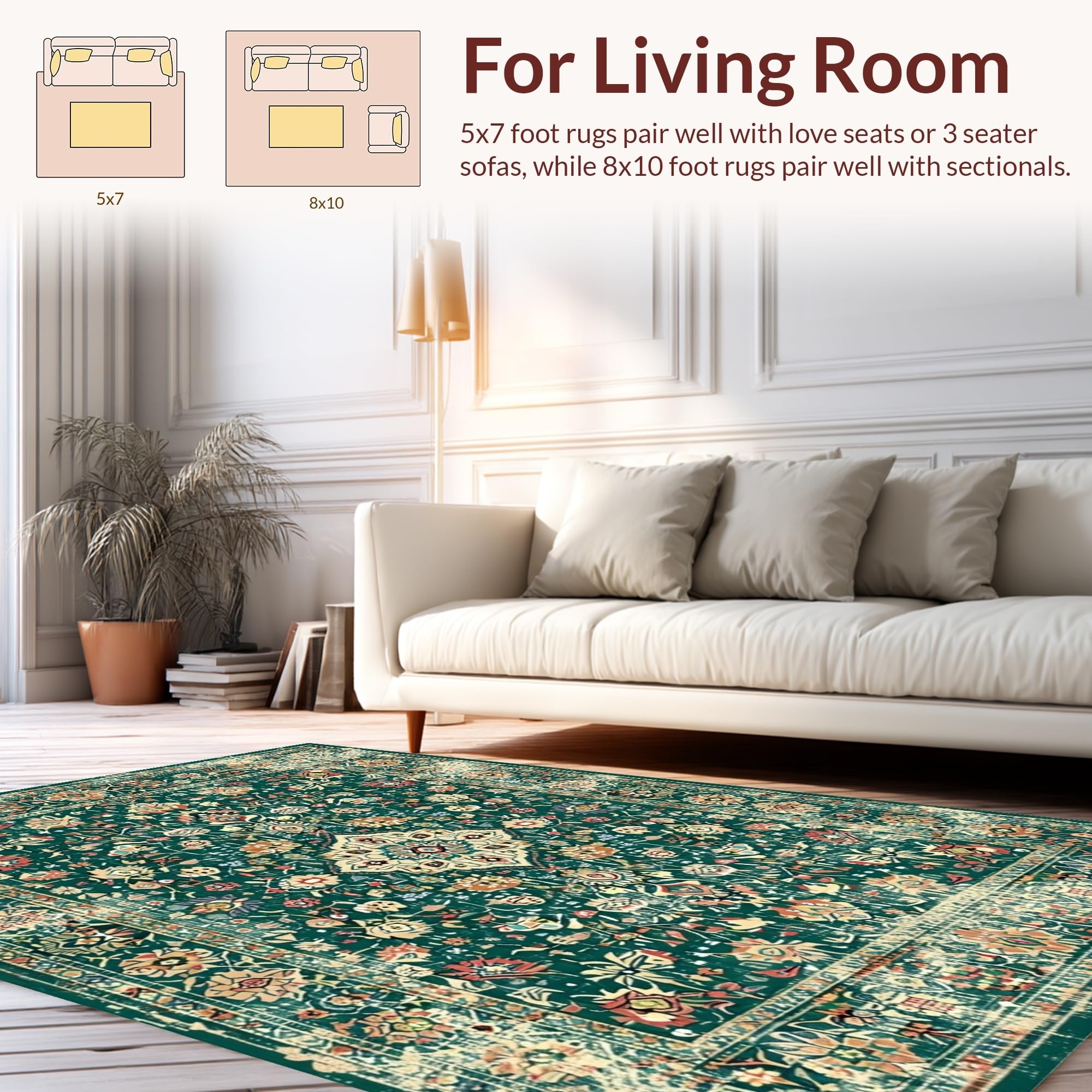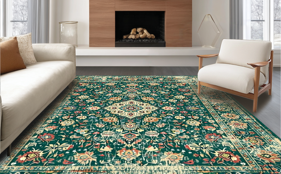Ultra Soft Area Rug, Non Slip, Stain Resistant, Washable Area Rugs for Living Room, Bedroom, Elegant Green Botanical Pattern(Green) Overview: