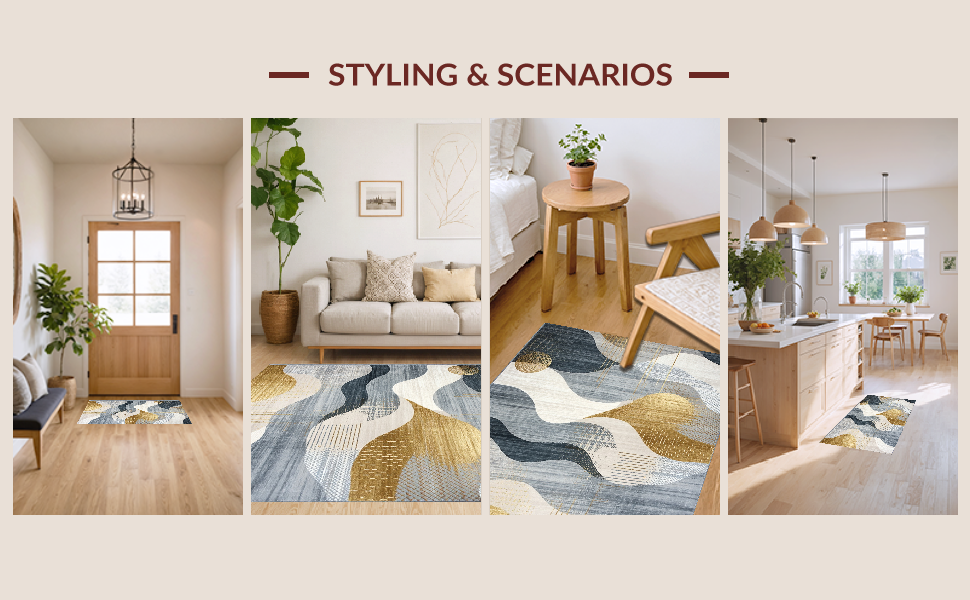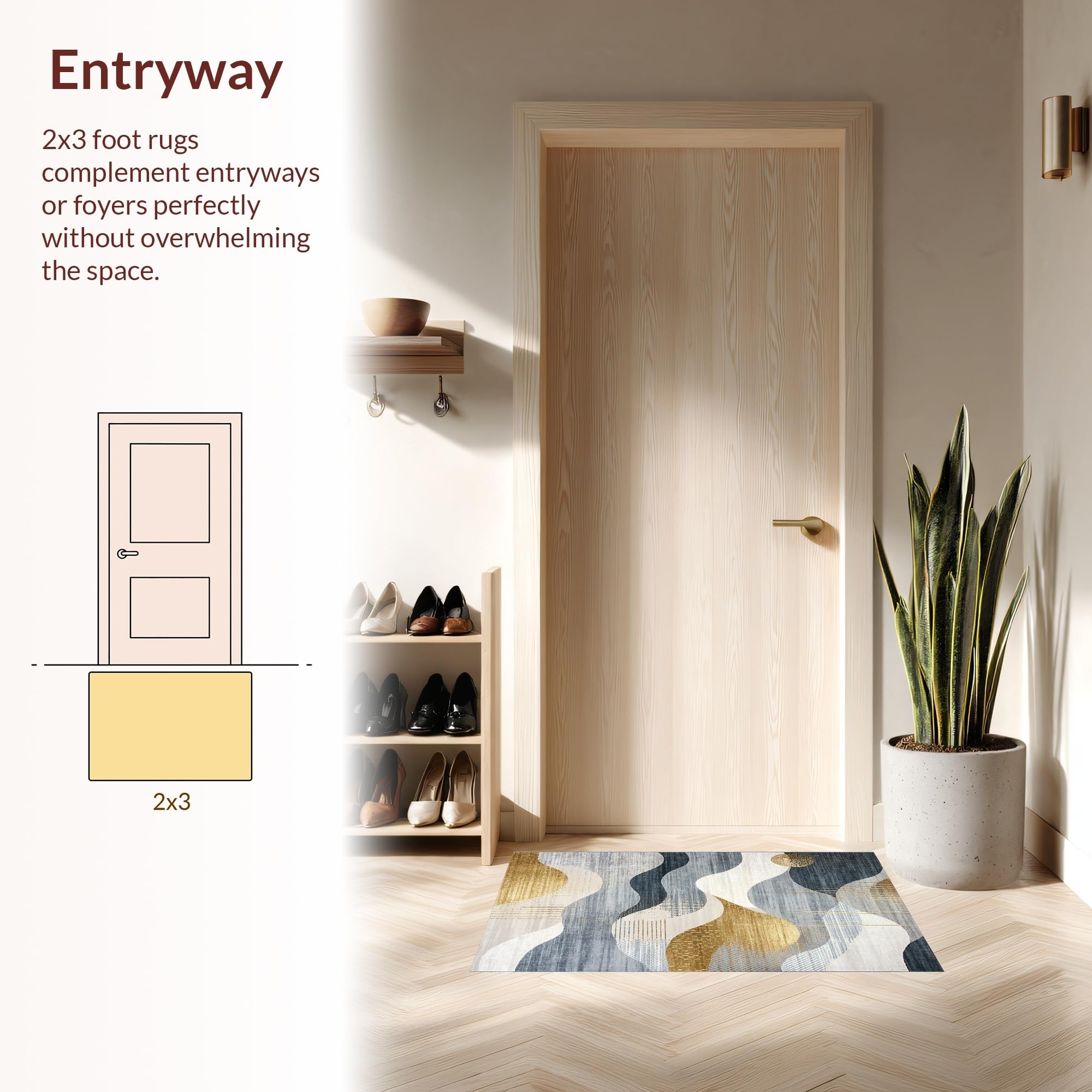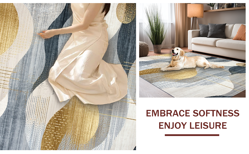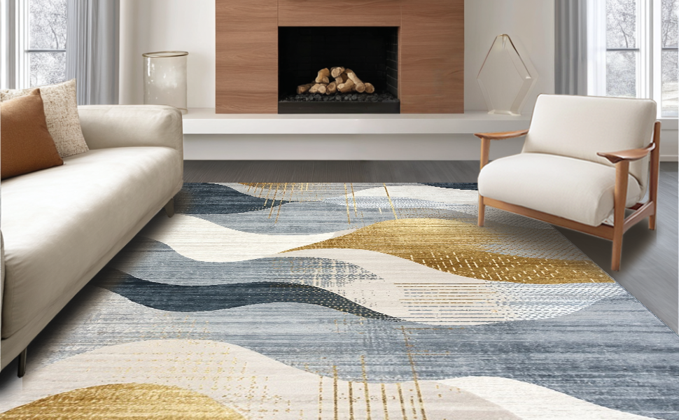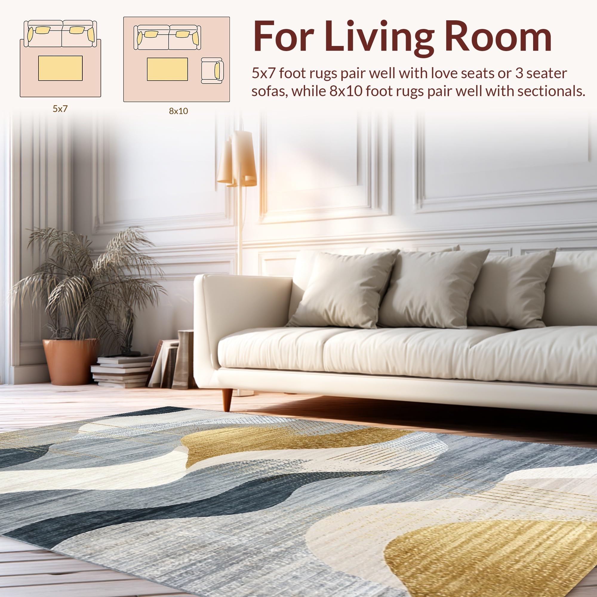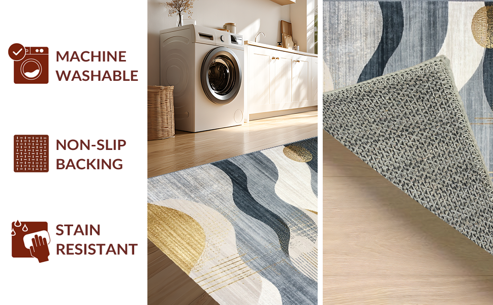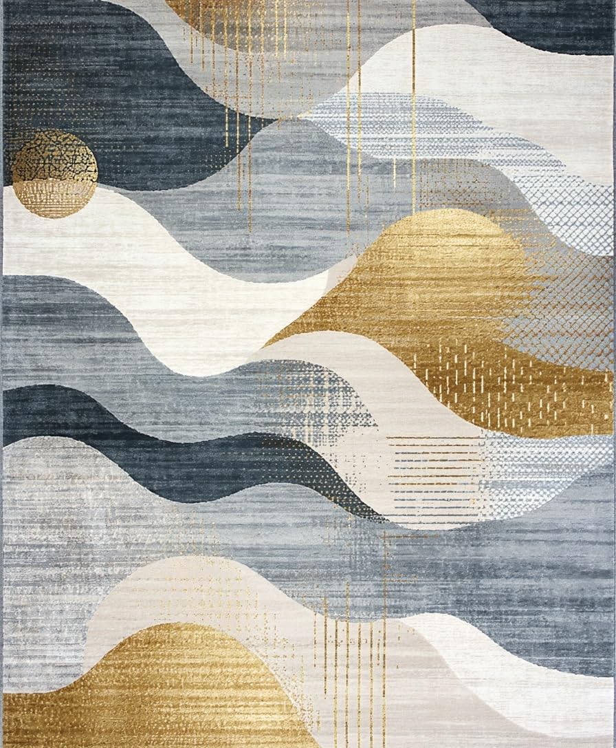 Ultra Soft Area Rug, Non Slip, Stain Resistant, Washable Area Rugs for Living Room, Bedroom, Elegant Grey Gold Geometric Fusion(Gray) Overview: