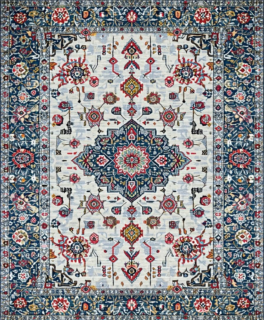 Ultra Soft Area Rug, Non Slip, Stain Resistant, Washable Area Rugs for Living Room, Bedroom, Elegant Grey Tiled Pattern(White) Overview: