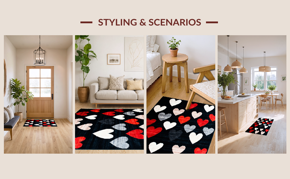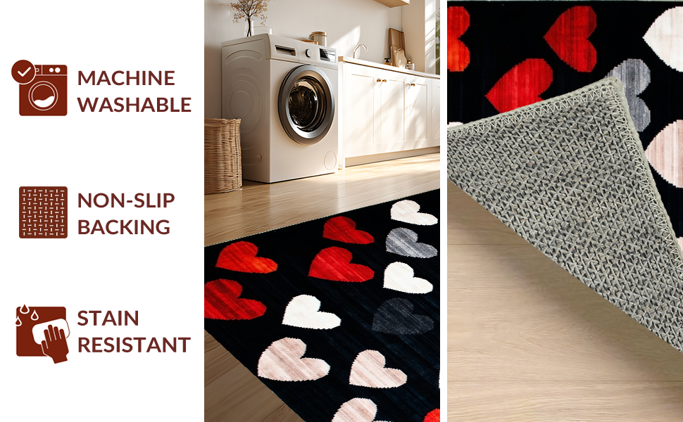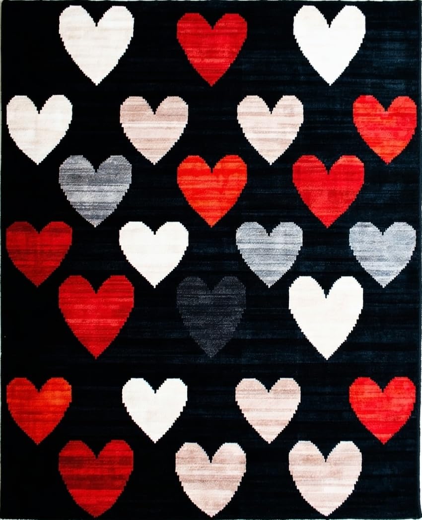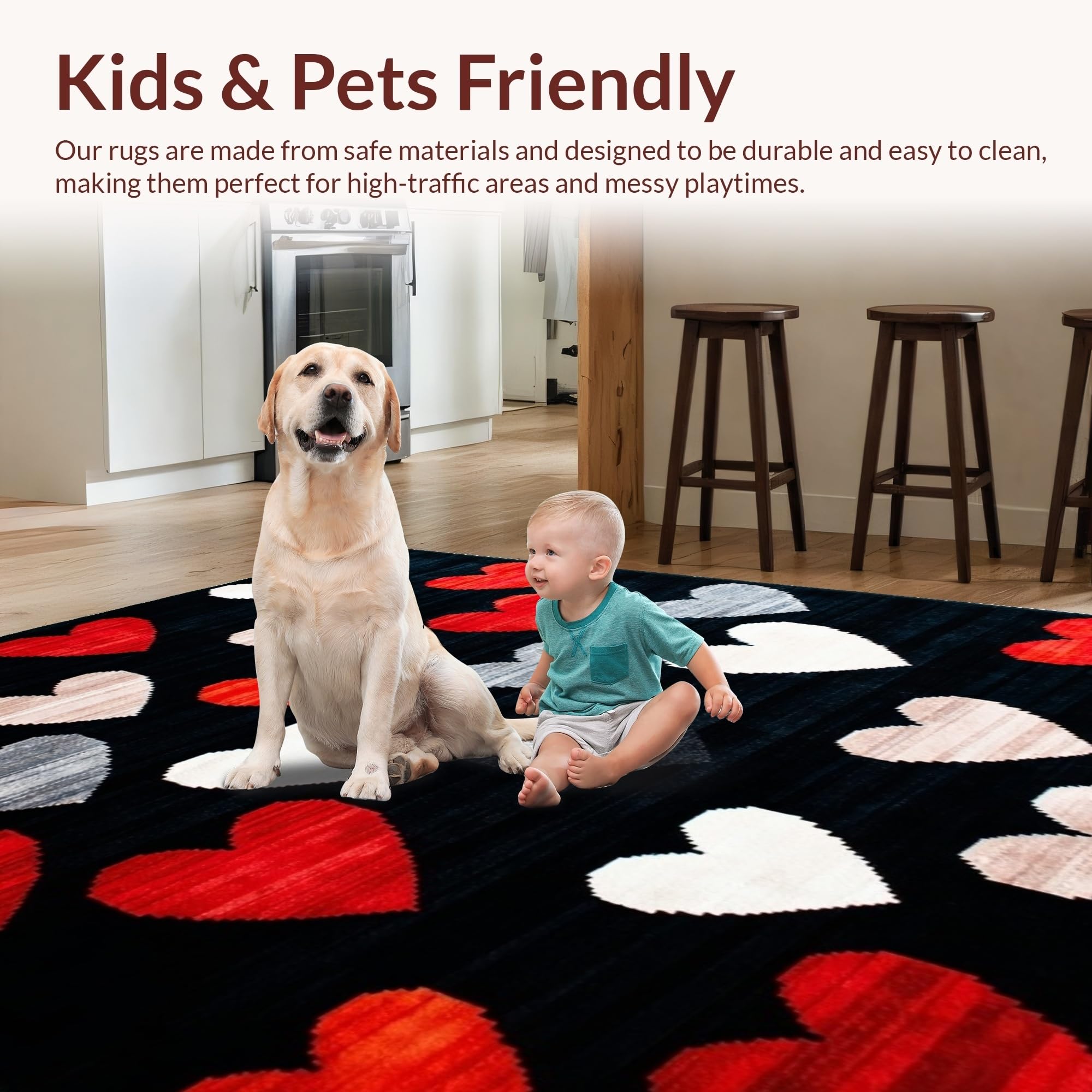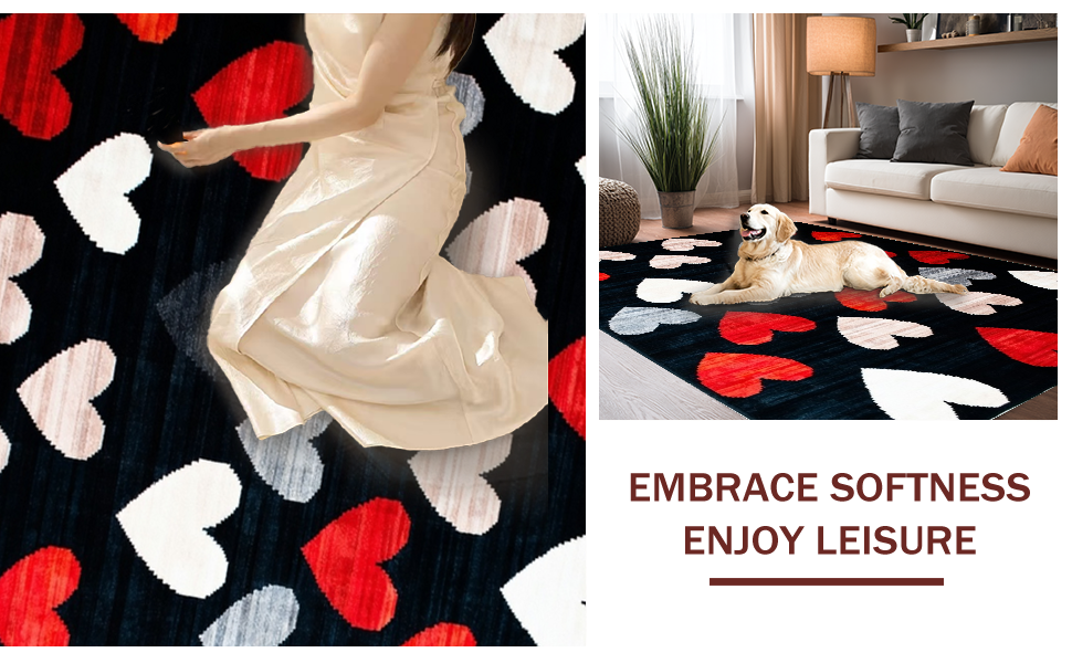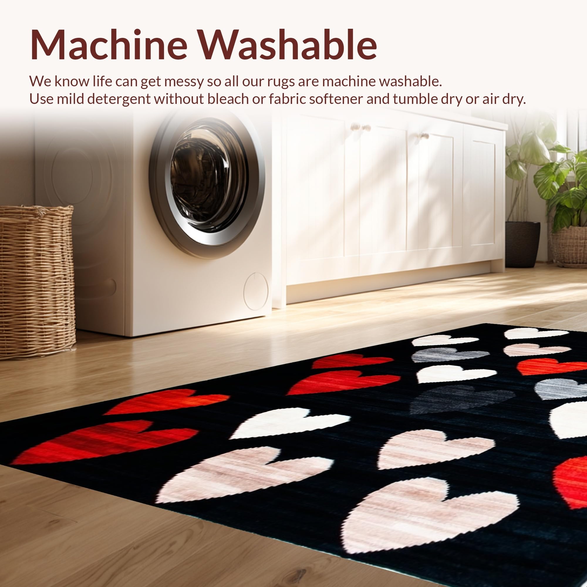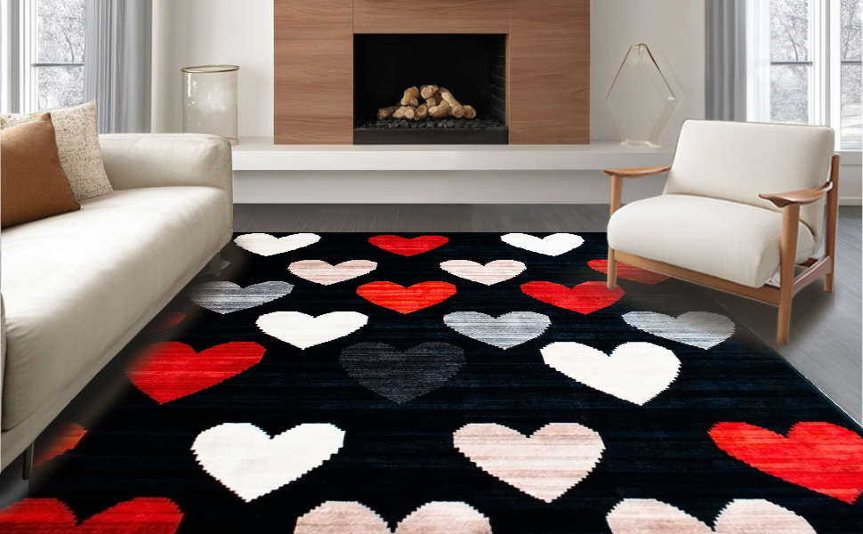 Ultra Soft Area Rug, Non Slip, Stain Resistant, Washable Area Rugs for Living Room, Bedroom, Elegant Heart-Shaped Modern Rug(Black) Overview: