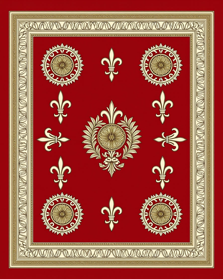 Elegant Heraldic Crest with Ornate Fleur de Accents(Red)