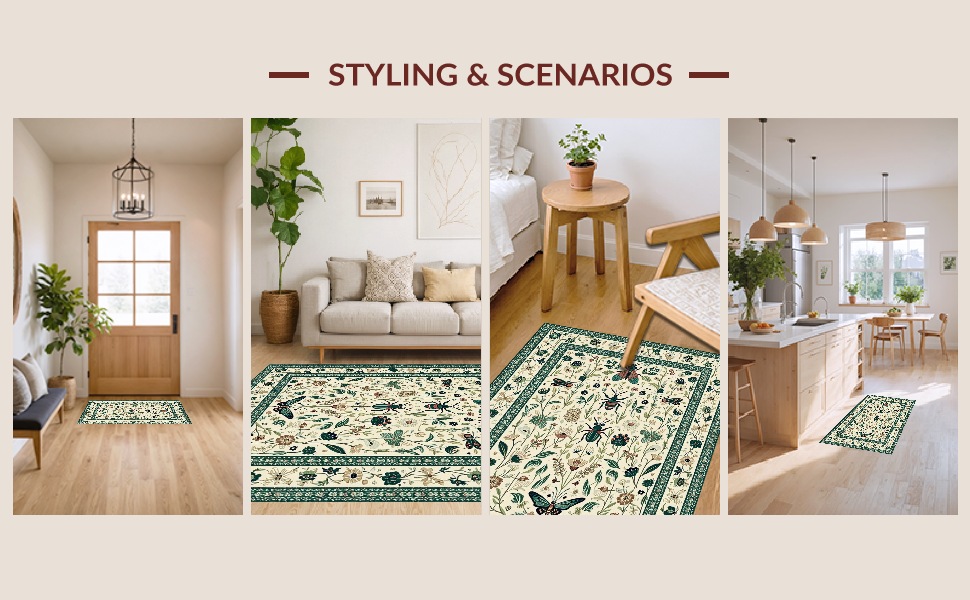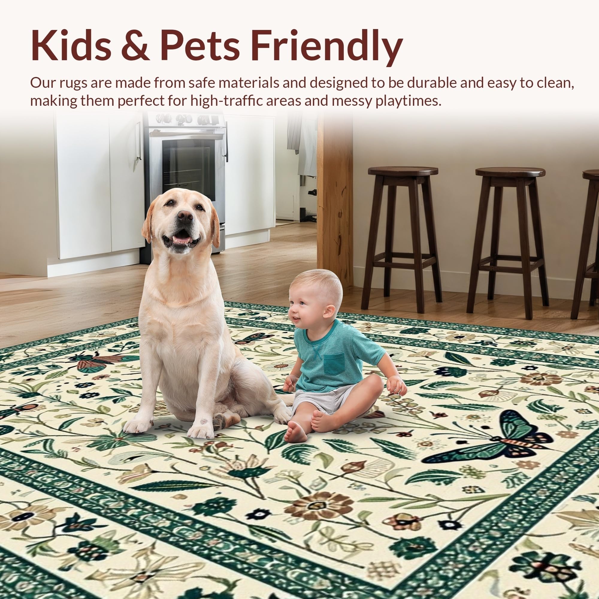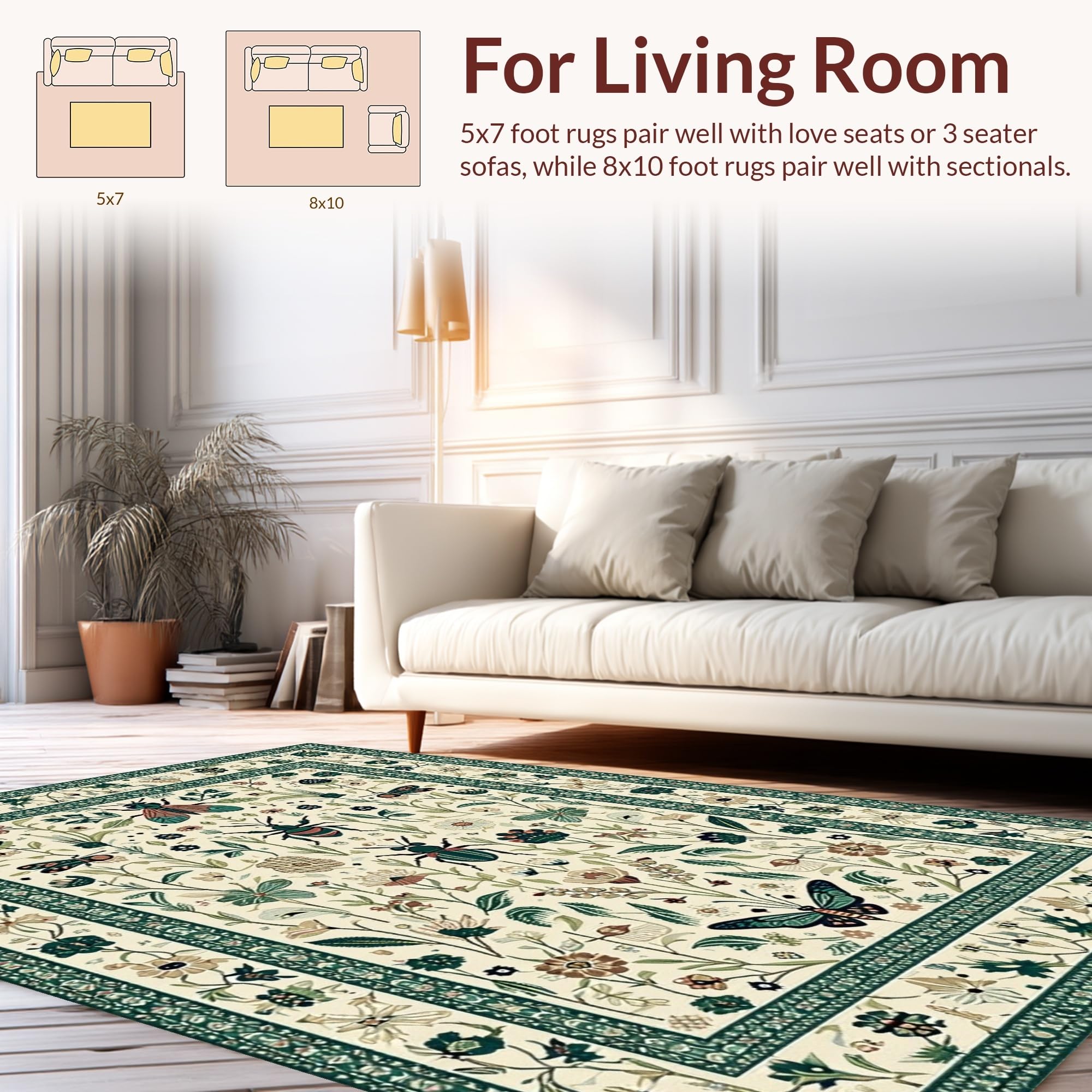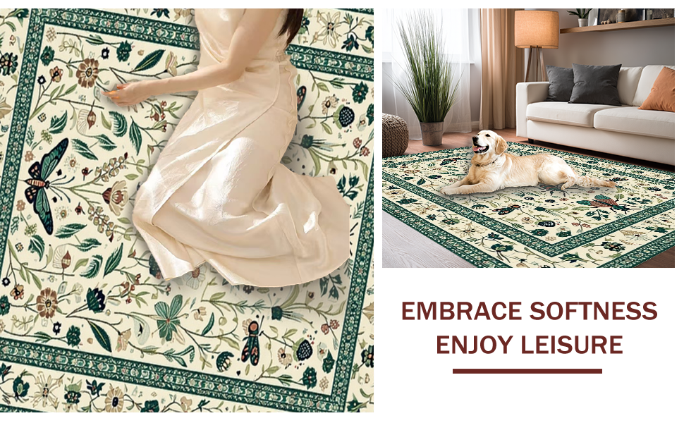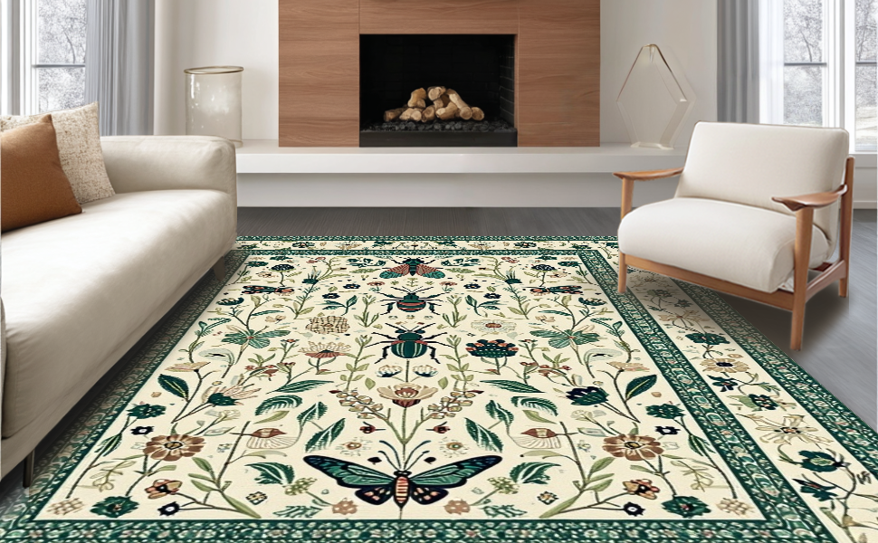 Ultra Soft Area Rug, Non Slip, Stain Resistant, Washable Area Rugs for Living Room, Bedroom, Elegant Intricate Organic Design(Ivory) Overview: