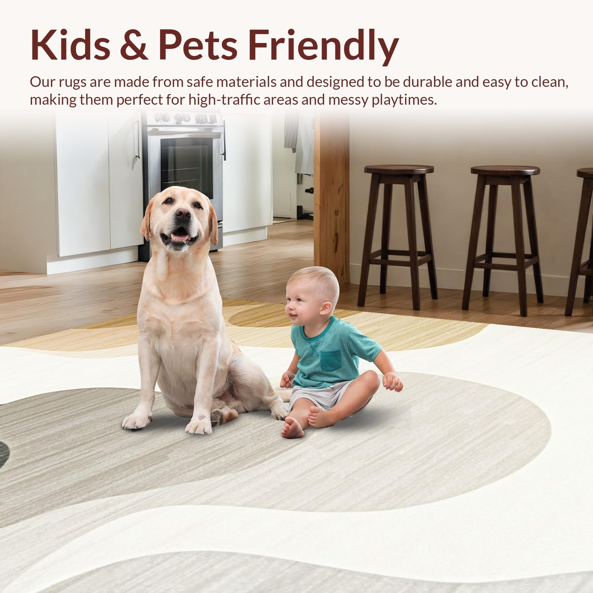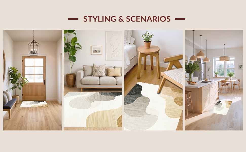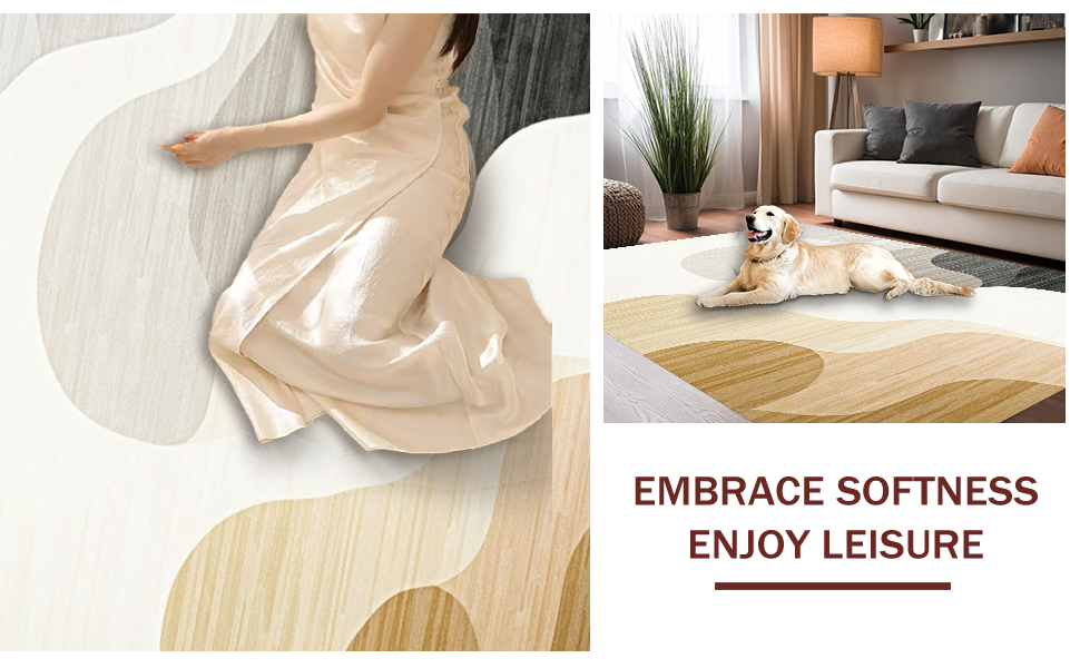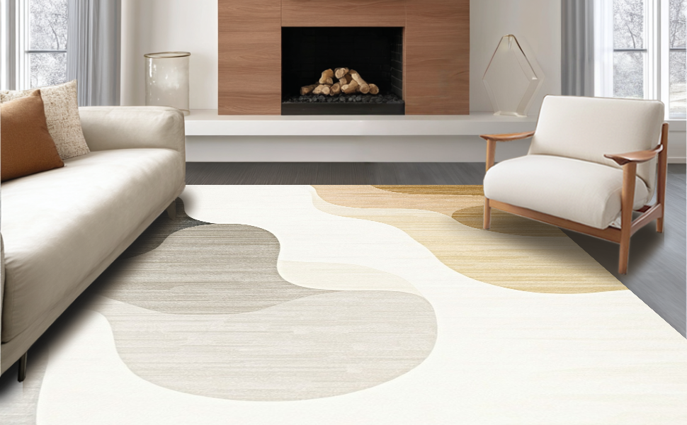 Ultra Soft Area Rug, Non Slip, Stain Resistant, Washable Area Rugs for Living Room, Bedroom, Elegant Irregular Soft Texture(Beige) Overview: