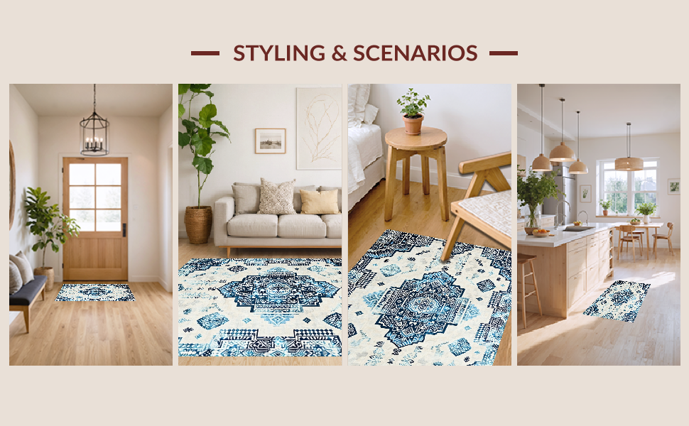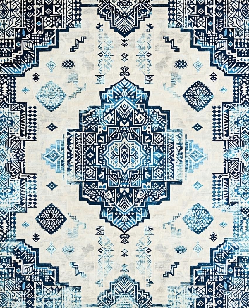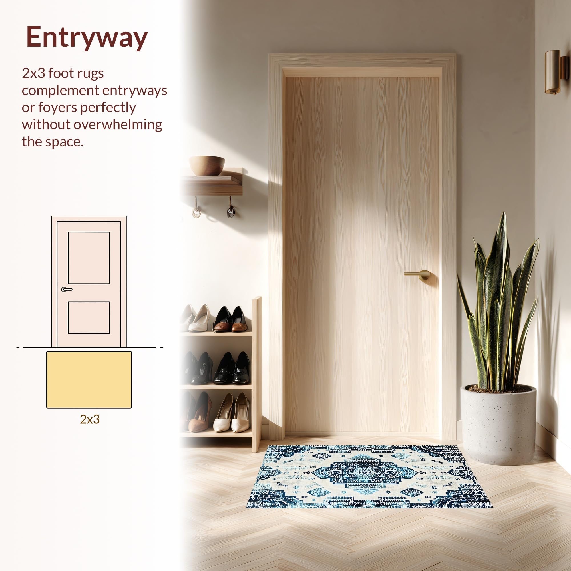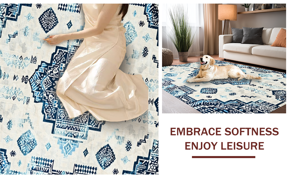 Ultra Soft Area Rug, Non Slip, Stain Resistant, Washable Area Rugs for Living Room, Bedroom, Elegant Ivory Blue Abstract Design(Beige) Overview: