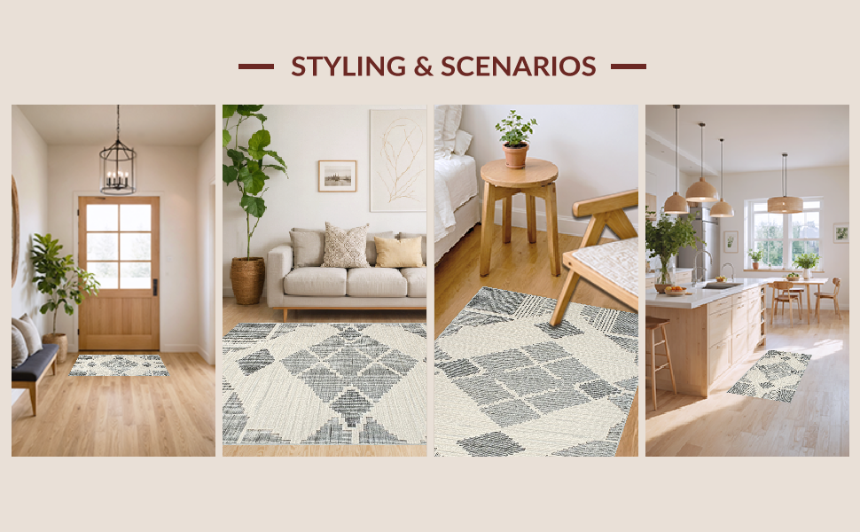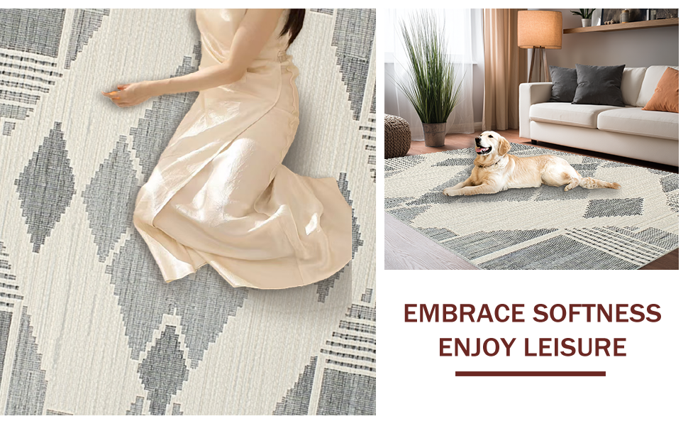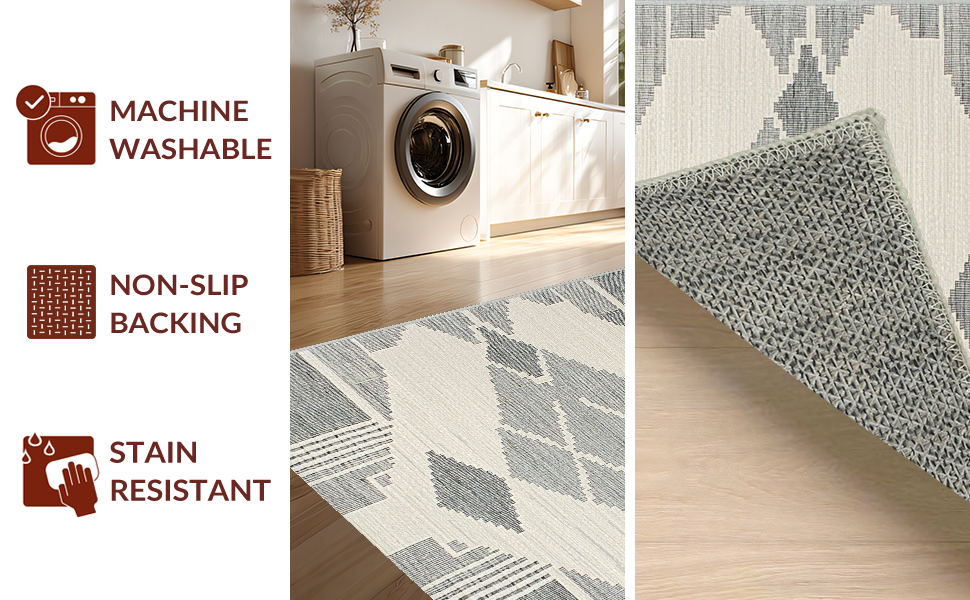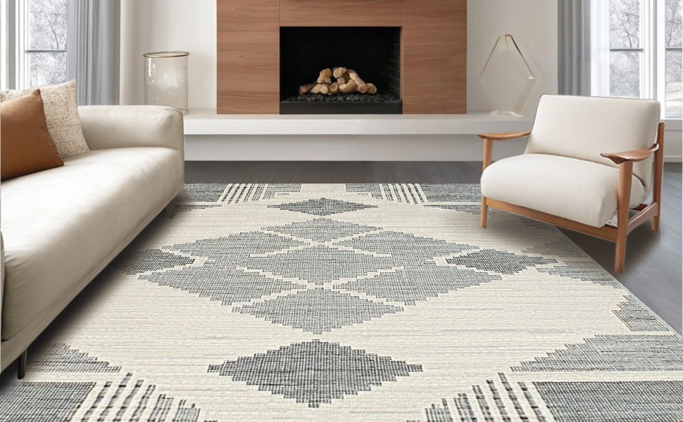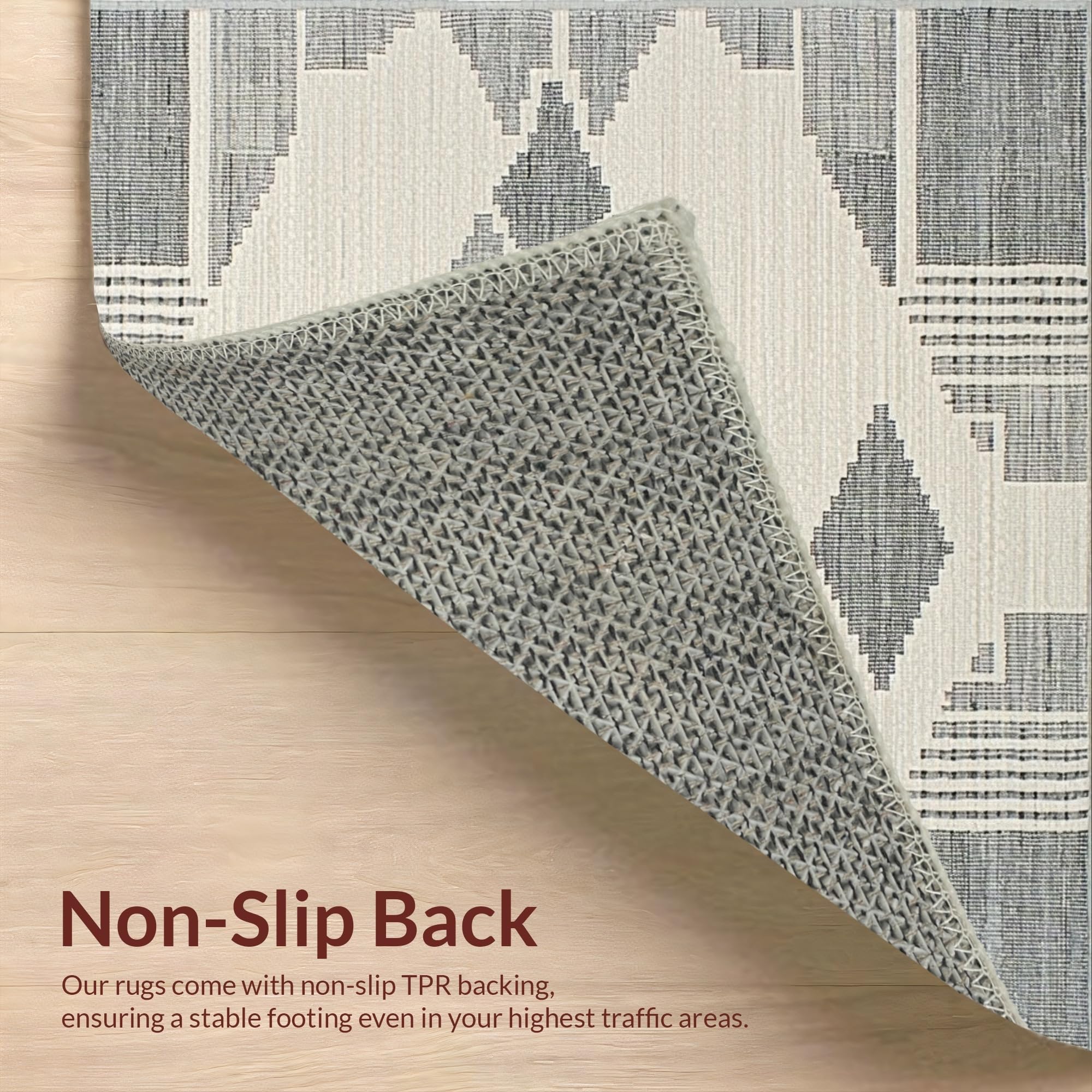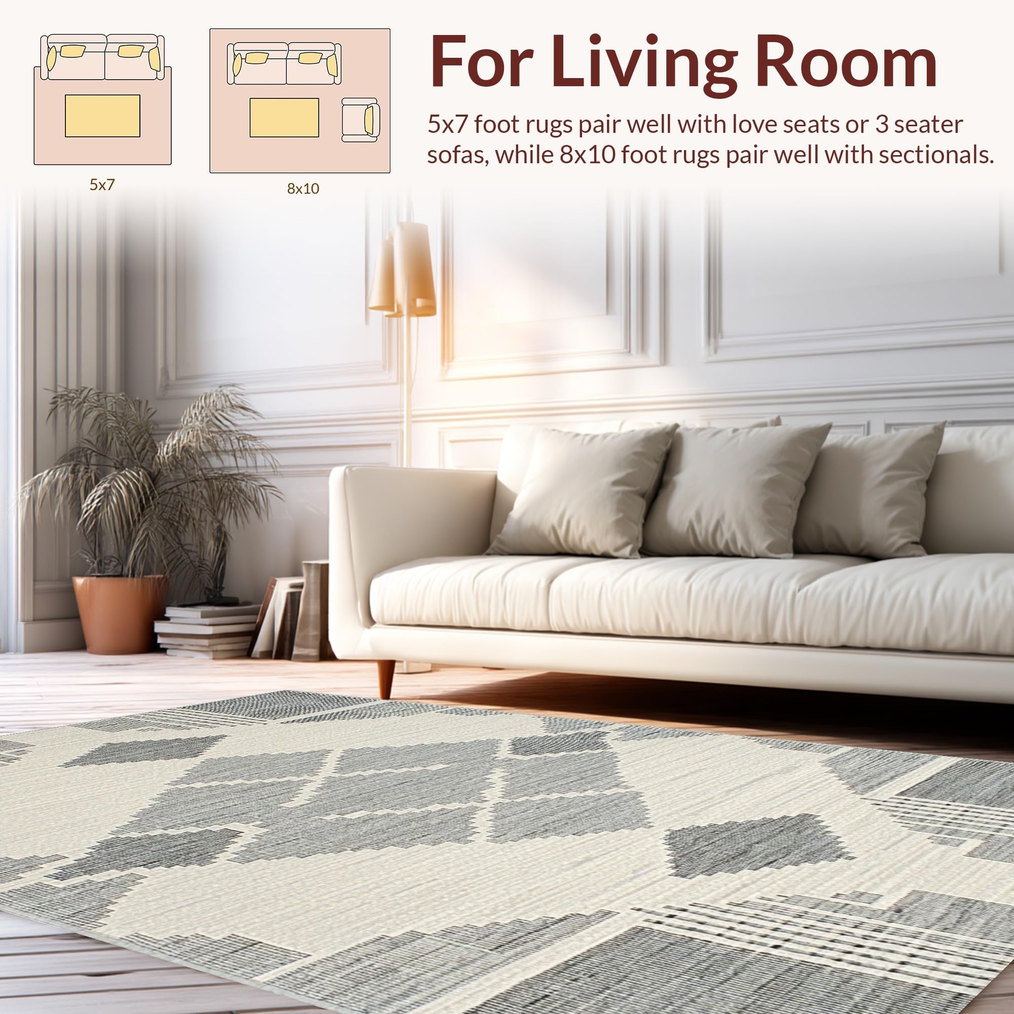 Ultra Soft Area Rug, Non Slip, Stain Resistant, Washable Area Rugs for Living Room, Bedroom, Elegant Ivory Geometric Weave(Gray) Overview: