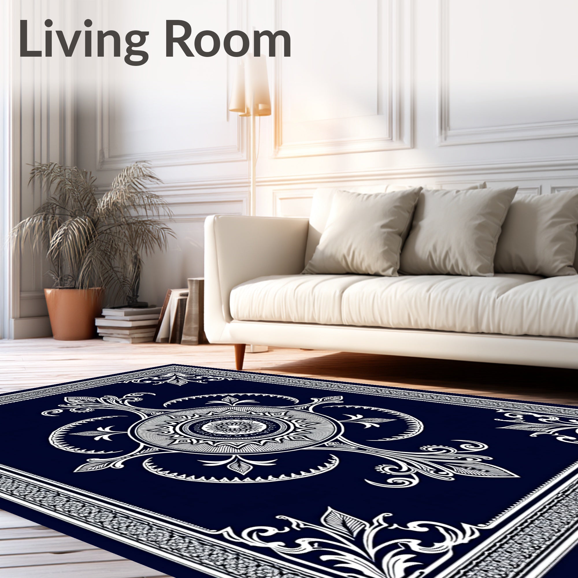 Flatwoven High Traffic Area Rug, Elegant Medallion Entryway Absorbent Doormat With Ornate Floral Motifs, Non Slip, Stain Resistant, Washable Area Rugs for Living Room, Bedroom (Blue) Overview: