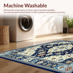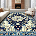 Ultra Soft Area Rug, Non Slip, Stain Resistant, Washable Area Rugs for Living Room, Bedroom, Elegant Medallion Navy Beige Coastal Floral(Ivory) Overview:
