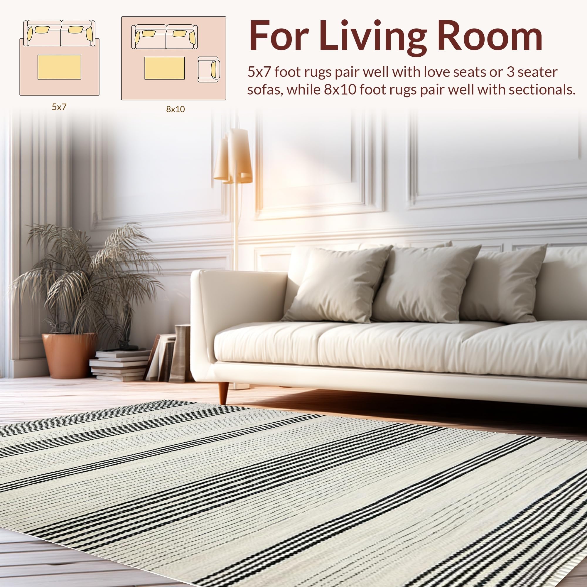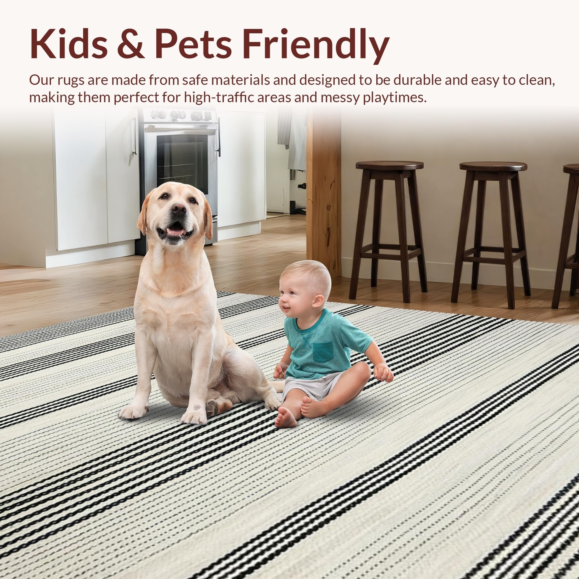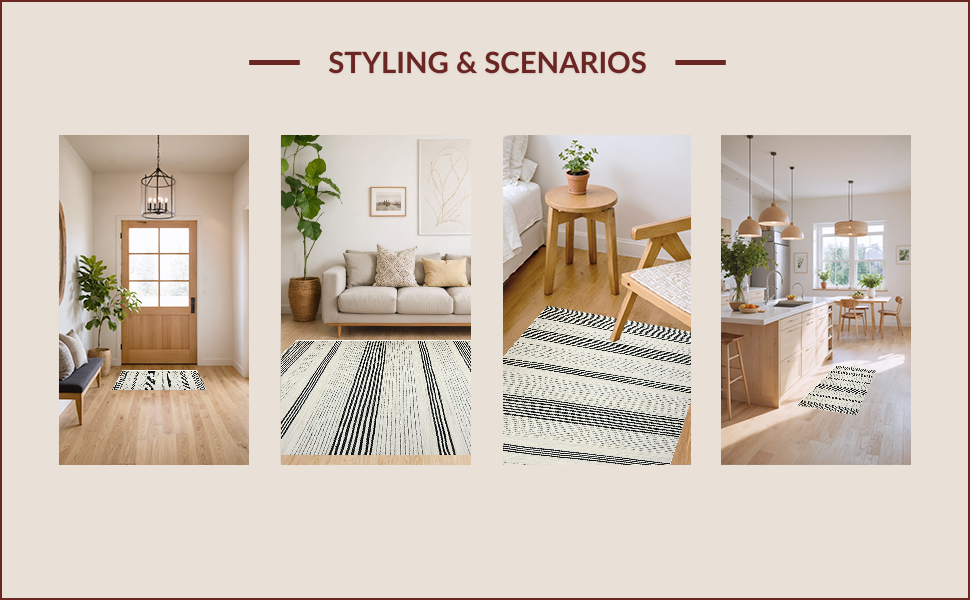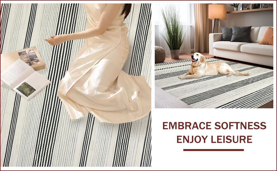 Ultra Soft Area Rug, Non Slip, Stain Resistant, Washable Area Rugs for Living Room, Bedroom, Elegant Minimalist Geometric Lines(Black) Overview: