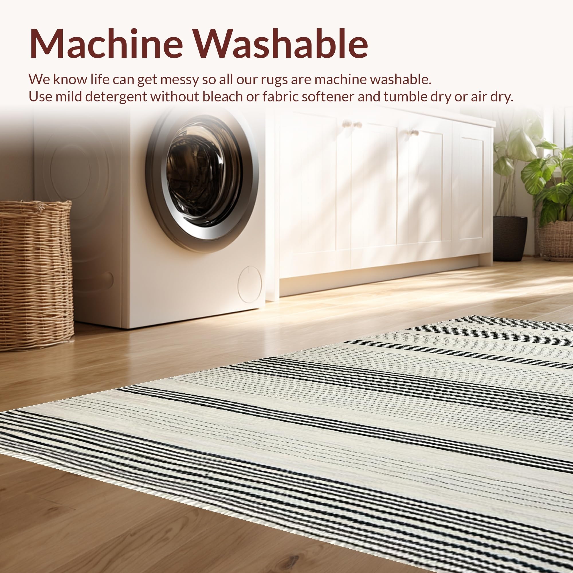 - Machine Washable: Our rugs can be easily thrown in the wash machine.
