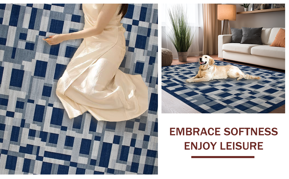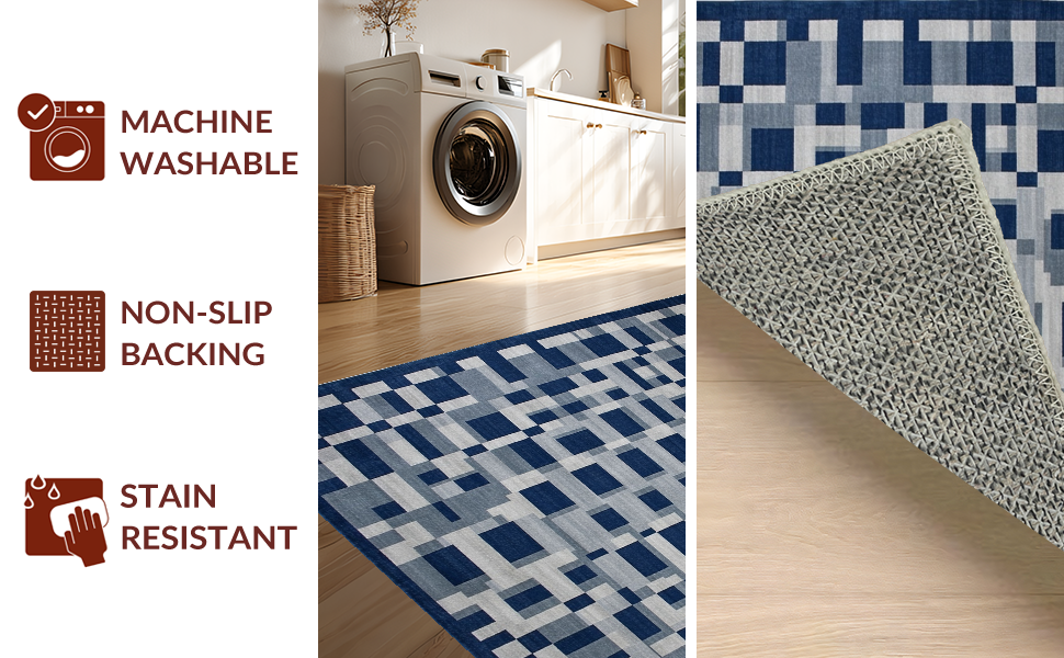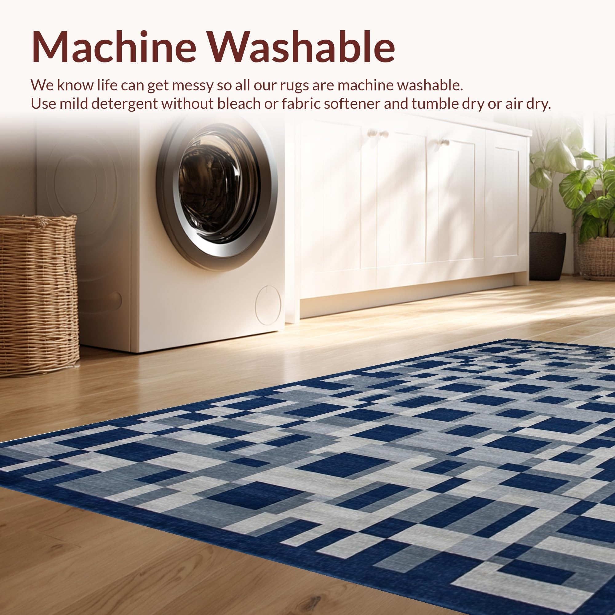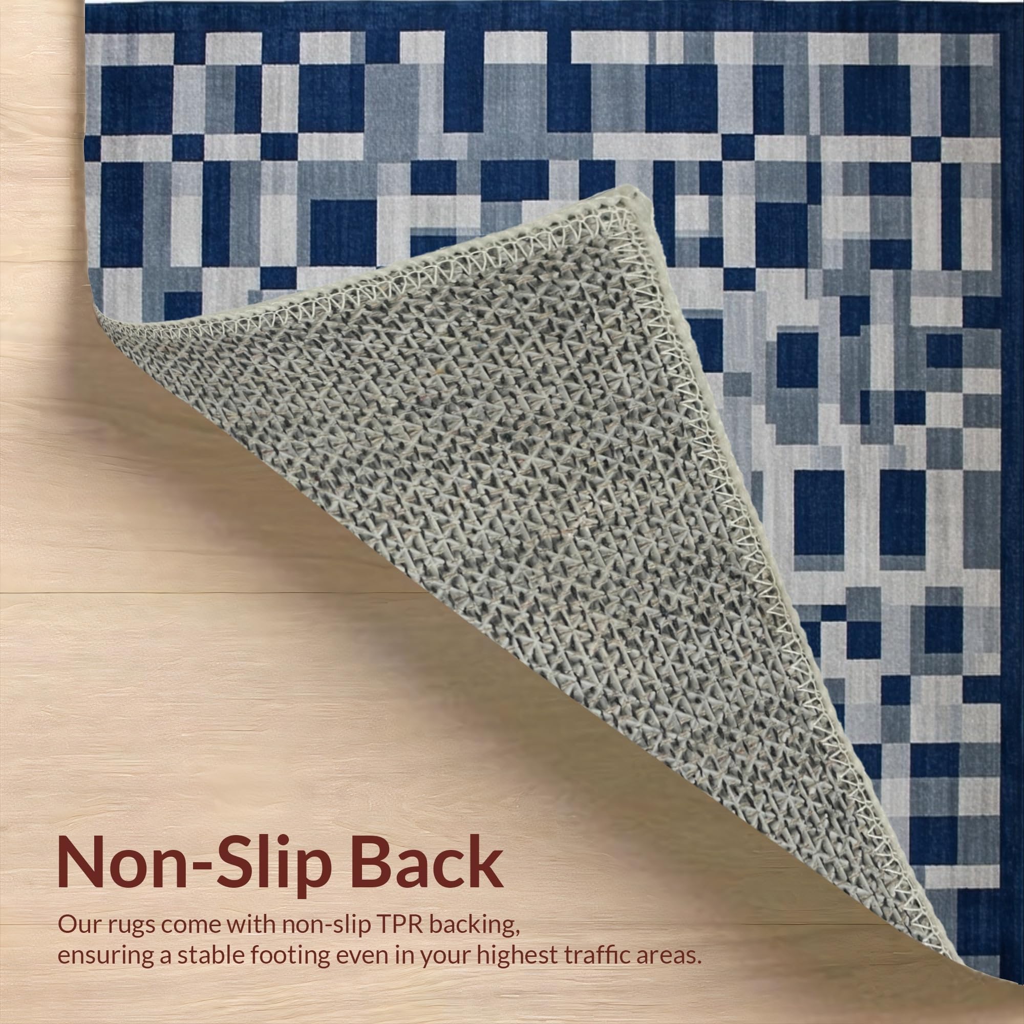 Ultra Soft Area Rug, Non Slip, Stain Resistant, Washable Area Rugs for Living Room, Bedroom, Elegant Modern Box Design(Blue) Overview: