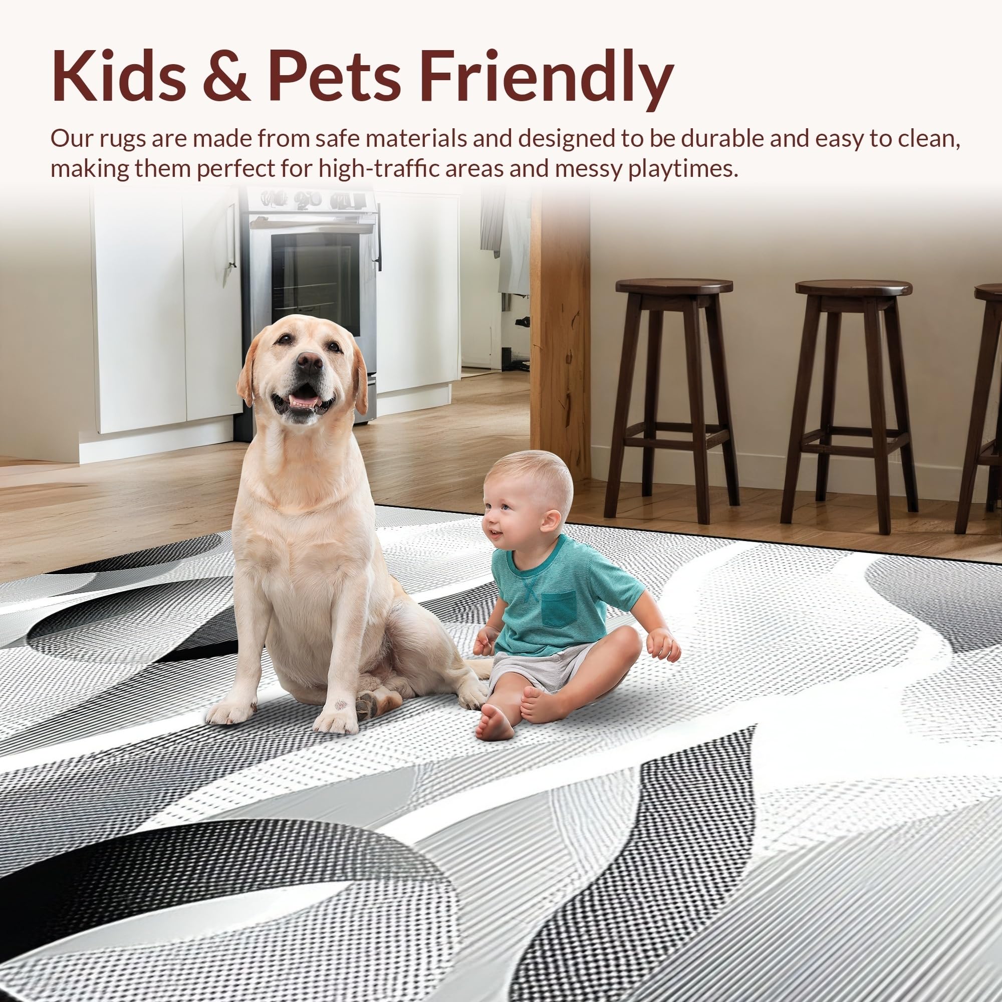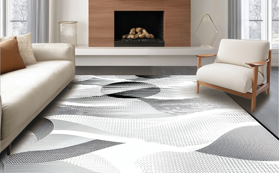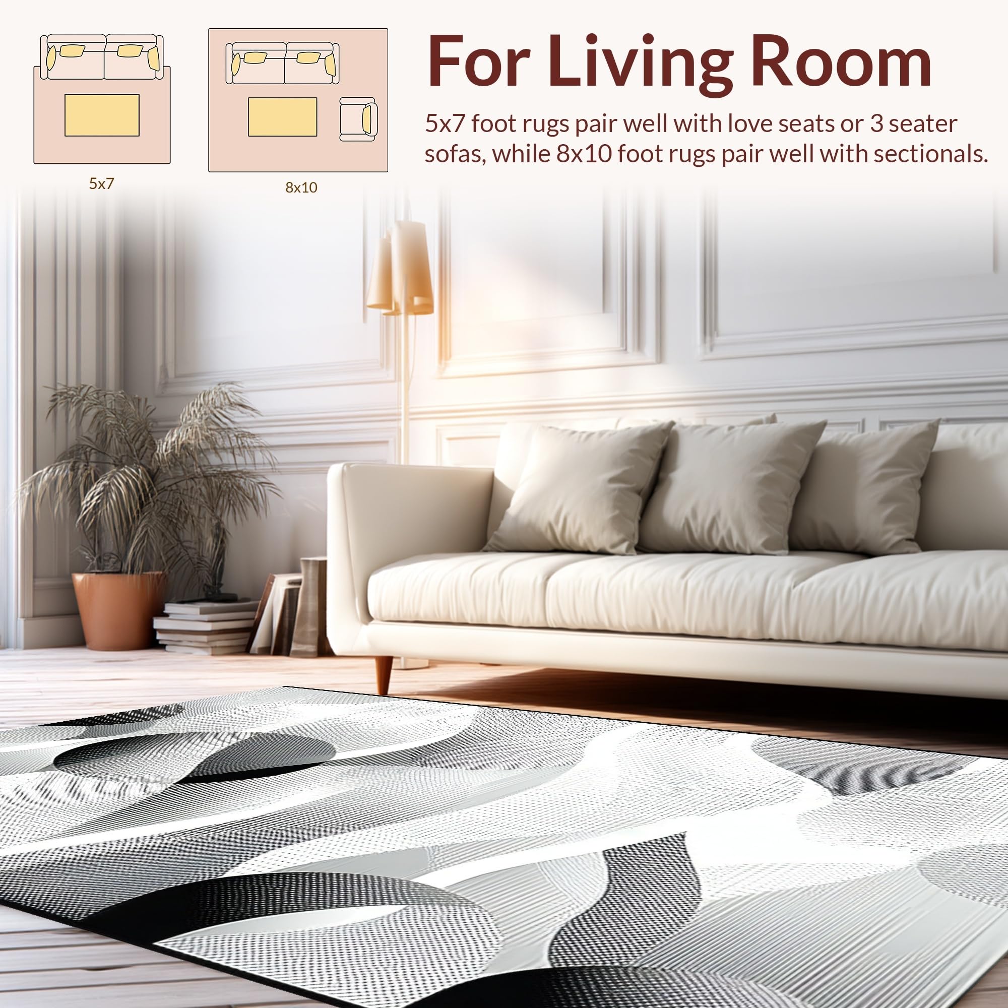 Ultra Soft Area Rug, Non Slip, Stain Resistant, Washable Area Rugs for Living Room, Bedroom, Elegant Modern Circular Patterns(Gray) Overview:
