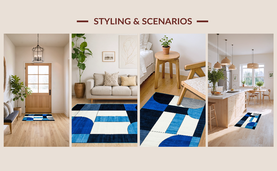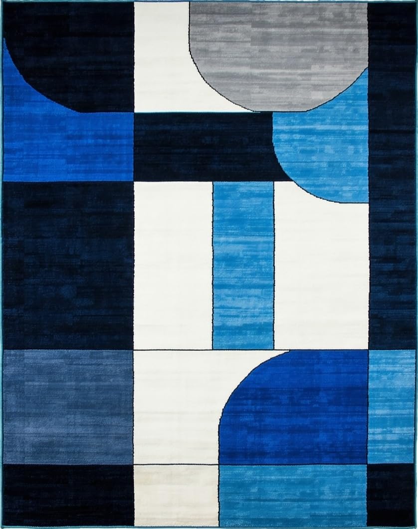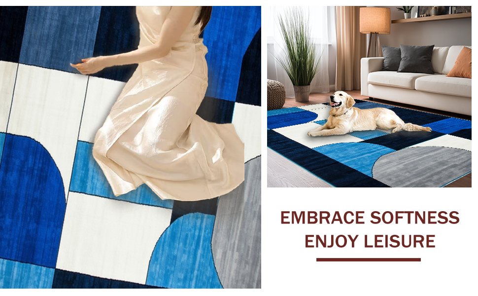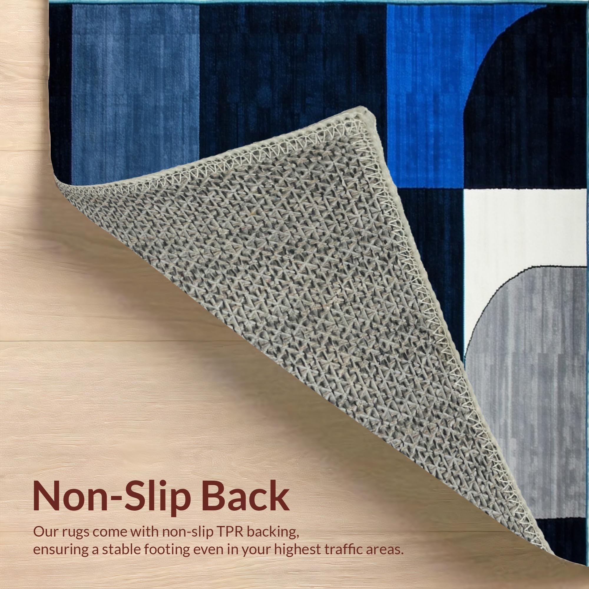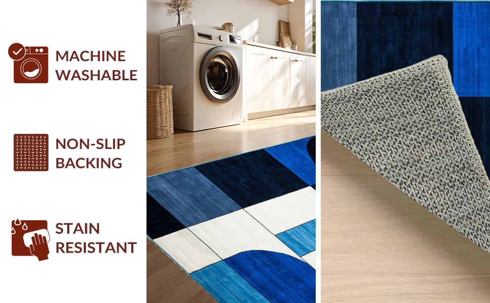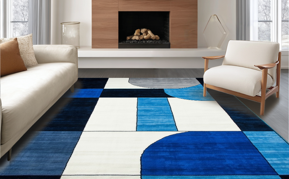 Ultra Soft Area Rug, Non Slip, Stain Resistant, Washable Area Rugs for Living Room, Bedroom, Elegant Modern Color-Blocked Design(Blue) Overview: