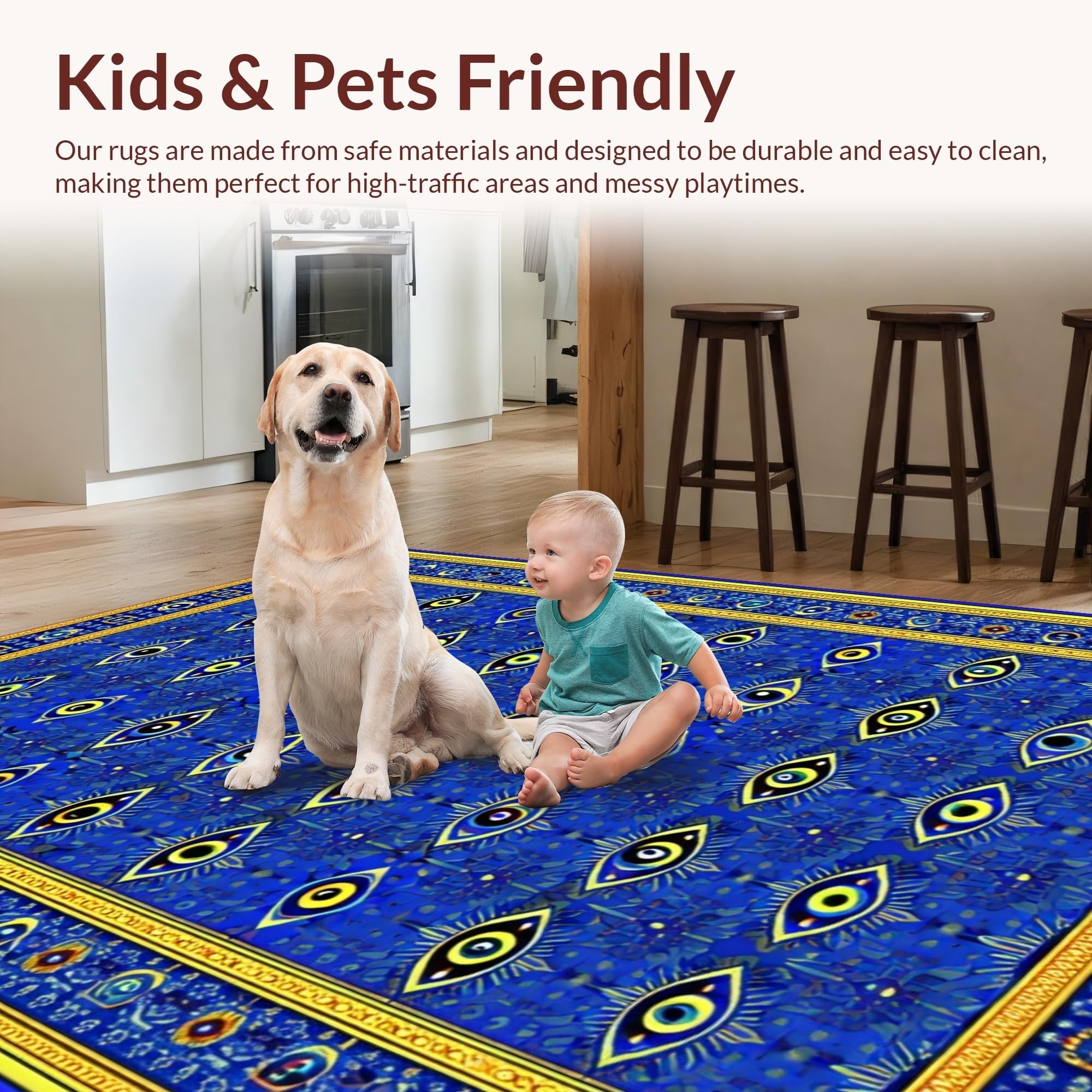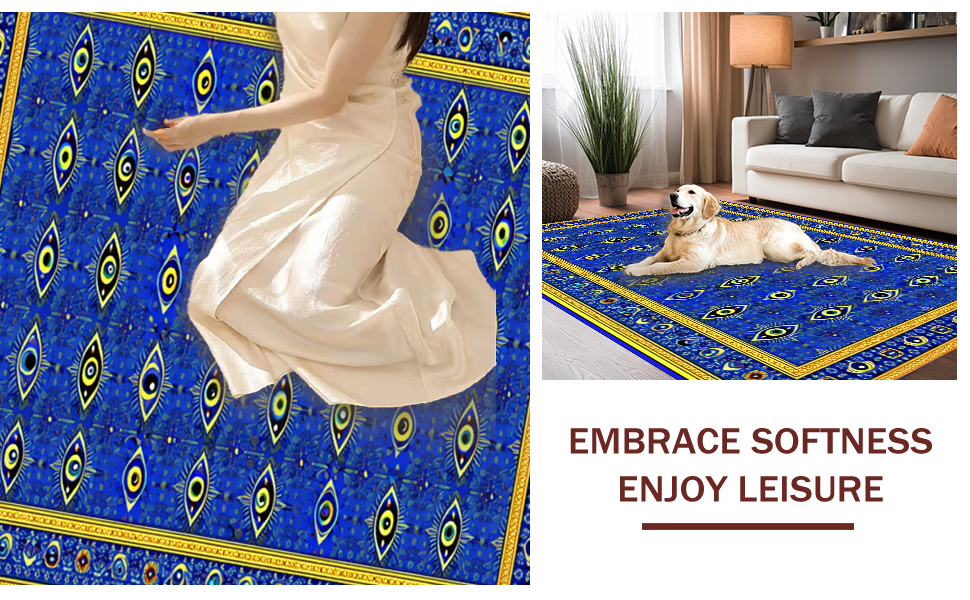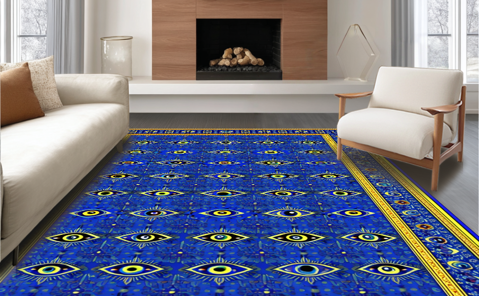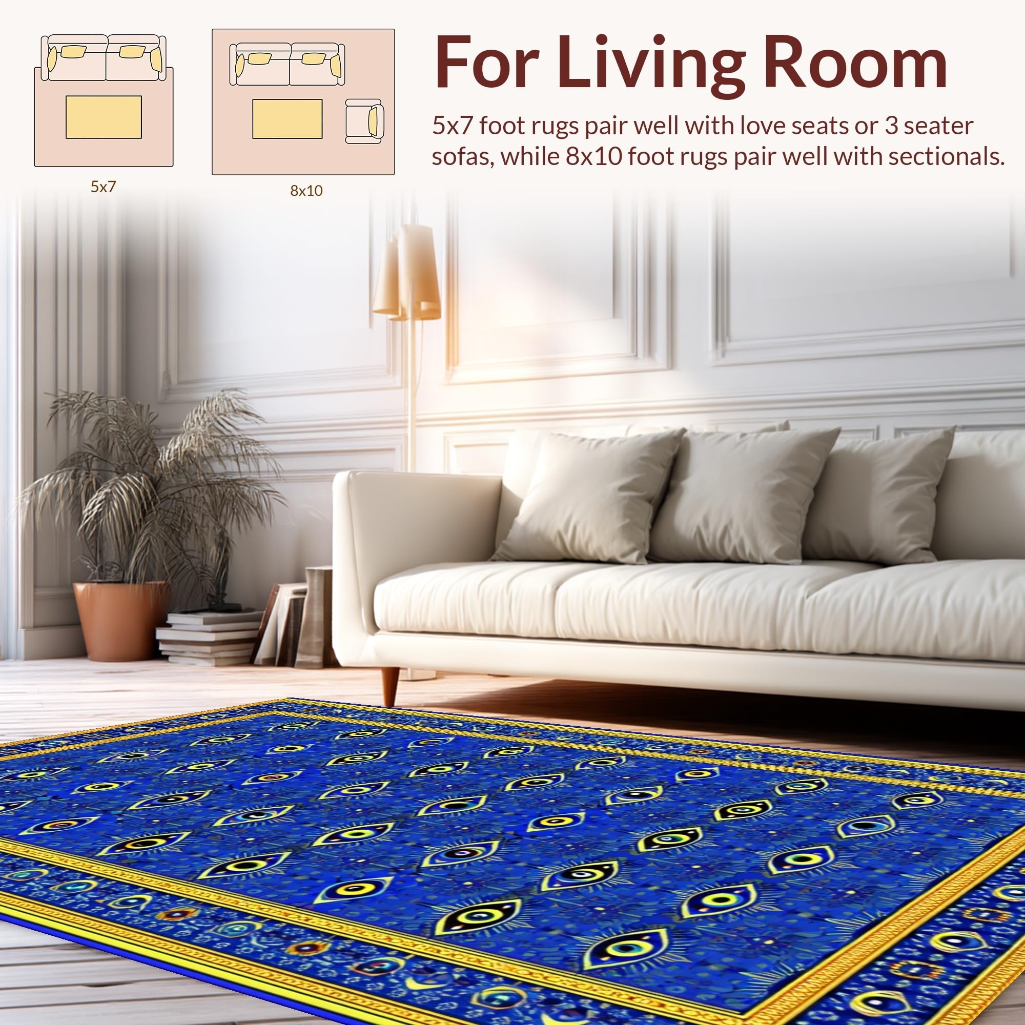 Ultra Soft Area Rug, Non Slip, Stain Resistant, Washable Area Rugs for Living Room, Bedroom, Elegant Modern Symmetrical Elements(Blue) Overview: