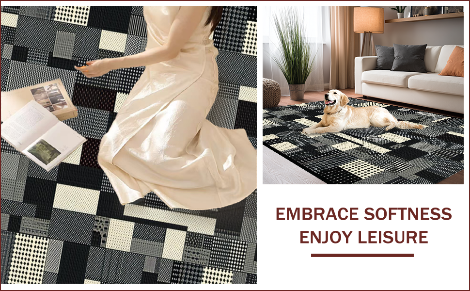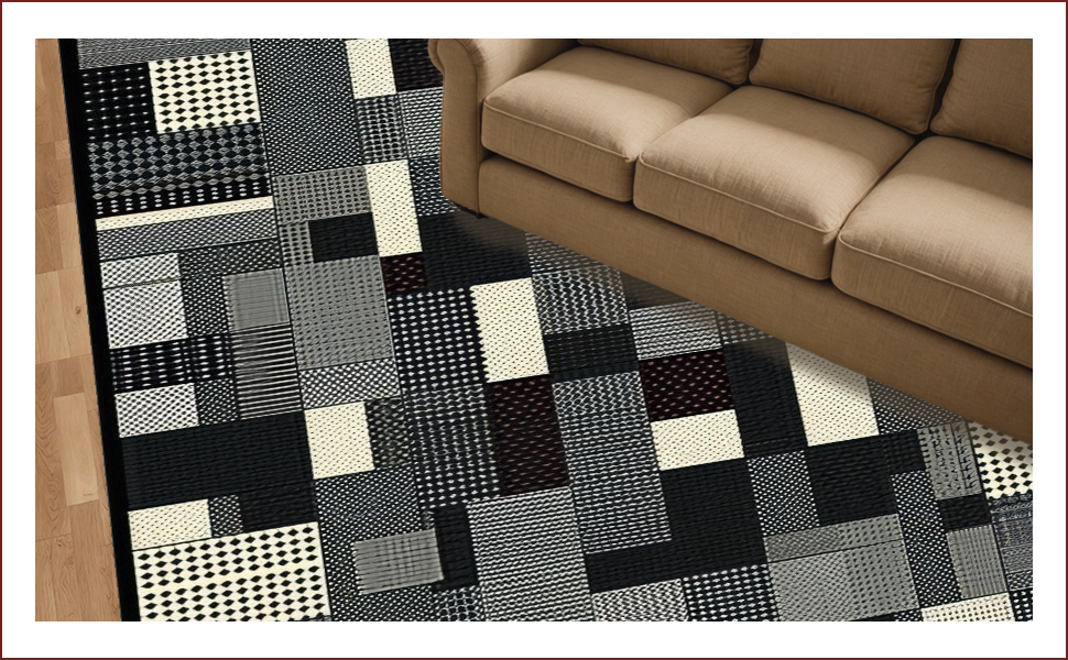 Ultra Soft Area Rug, Non Slip, Stain Resistant, Washable Area Rugs for Living Room, Bedroom, Elegant Monochrome Abstract Geometry(Black) Overview: