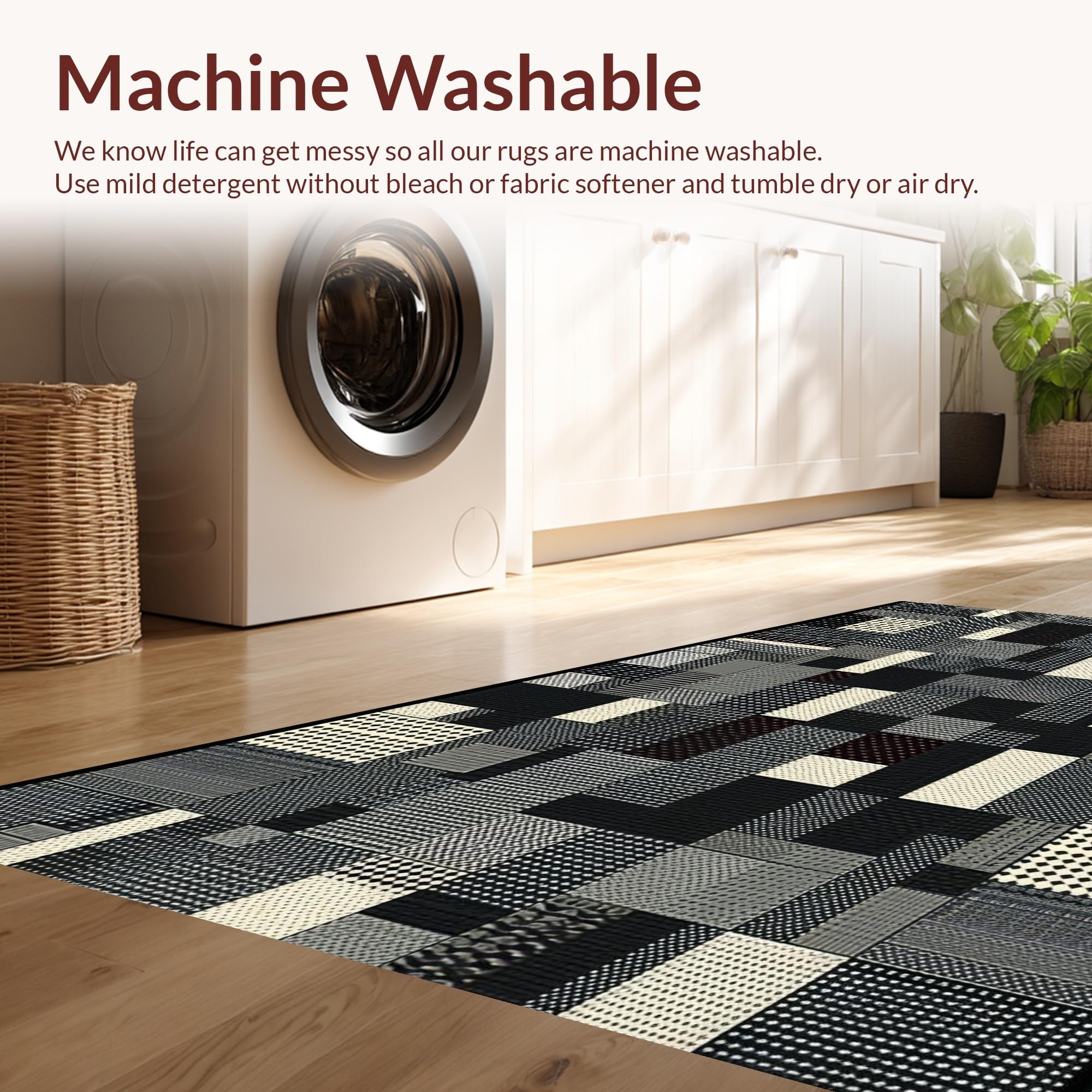 - Machine Washable: Our rugs can be easily thrown in the wash machine.