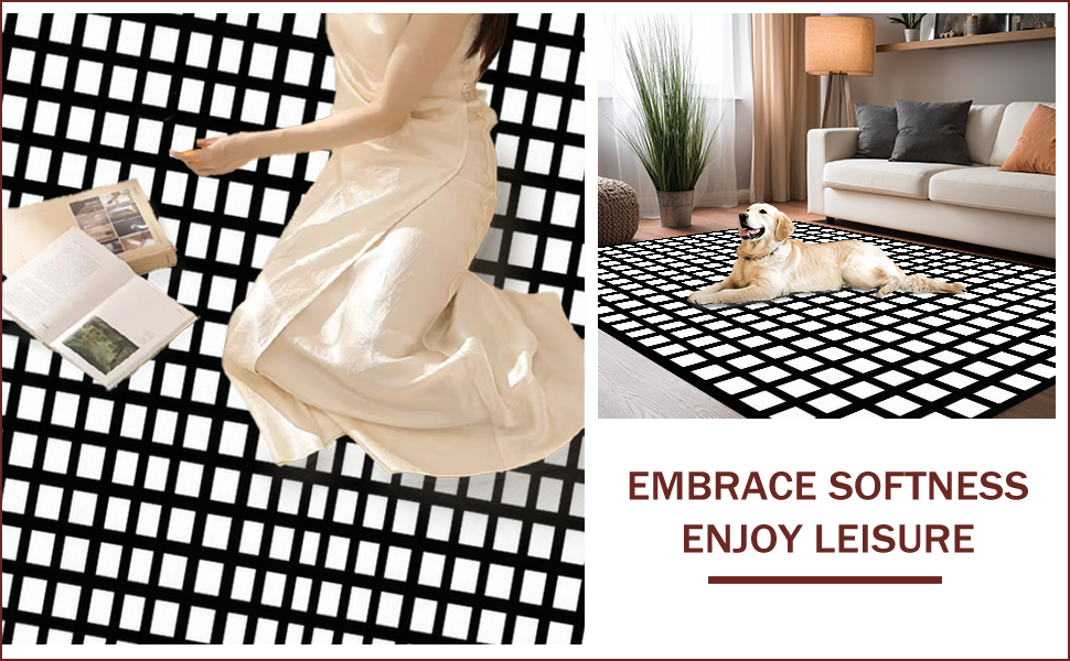 Ultra Soft Area Rug, Non Slip, Stain Resistant, Washable Area Rugs for Living Room, Bedroom, Elegant Monochrome Checkerboard Aesthetic(Black) Overview: