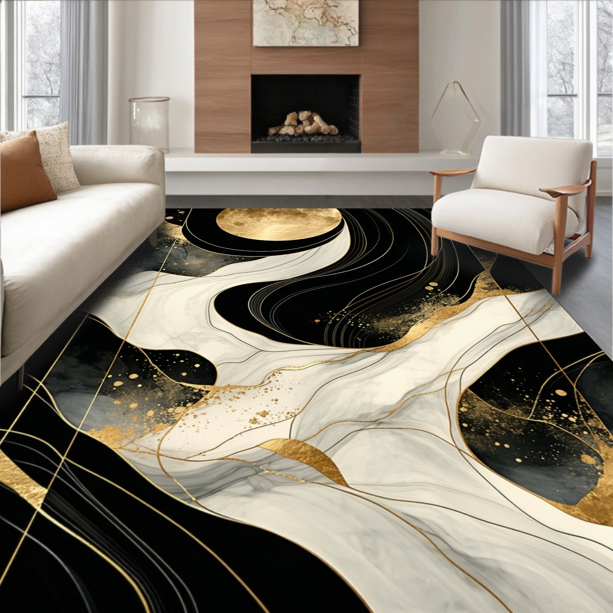Flatwoven High Traffic Area Rug, Elegant Monochrome Fluid Design, Non Slip, Stain Resistant, Washable Area Rugs for Living Room, Bedroom (Black) Overview:
