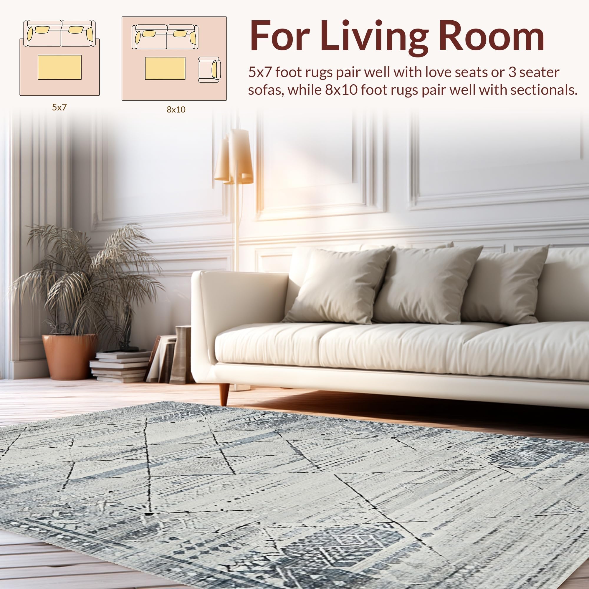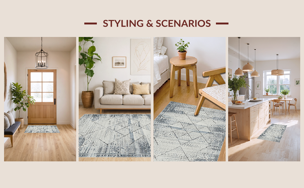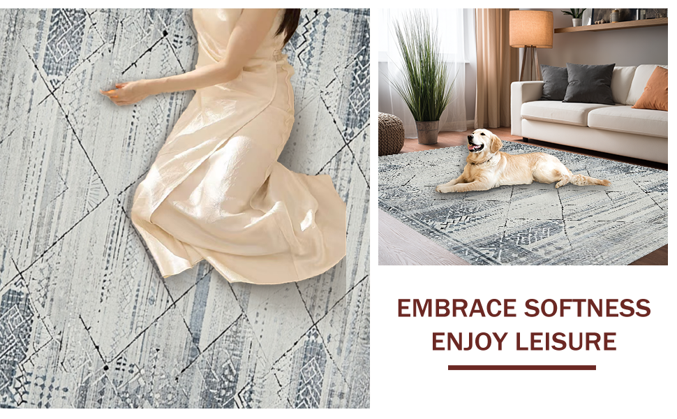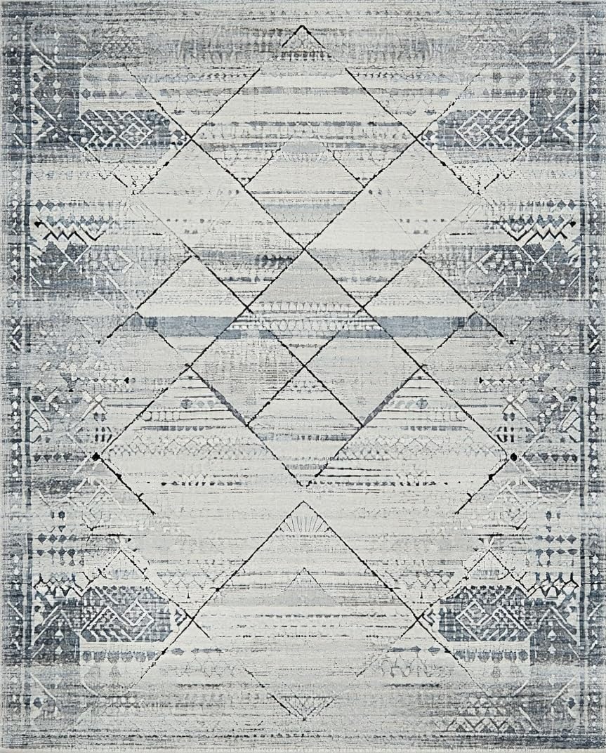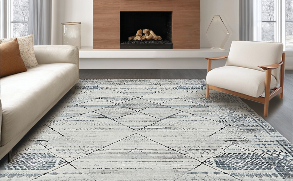 Ultra Soft Area Rug, Non Slip, Stain Resistant, Washable Area Rugs for Living Room, Bedroom, Elegant Monochrome Tiled Design(Gray) Overview:
