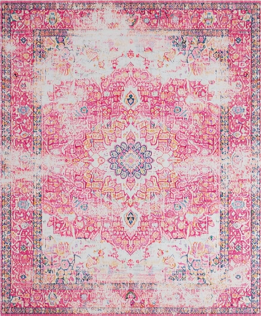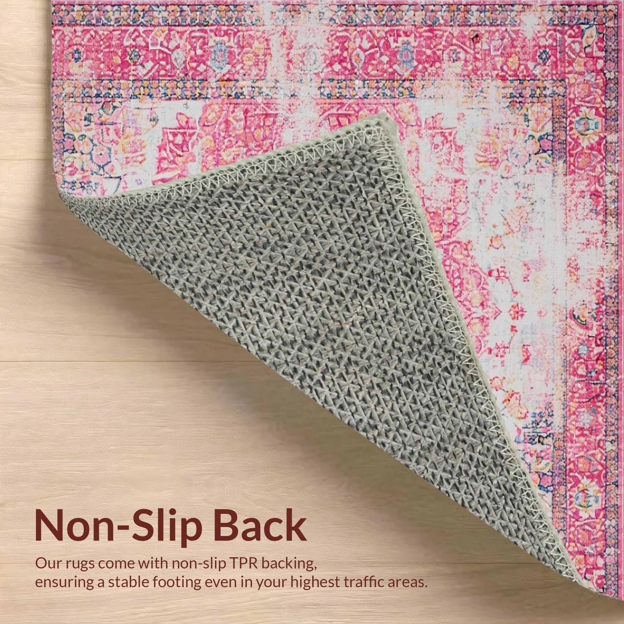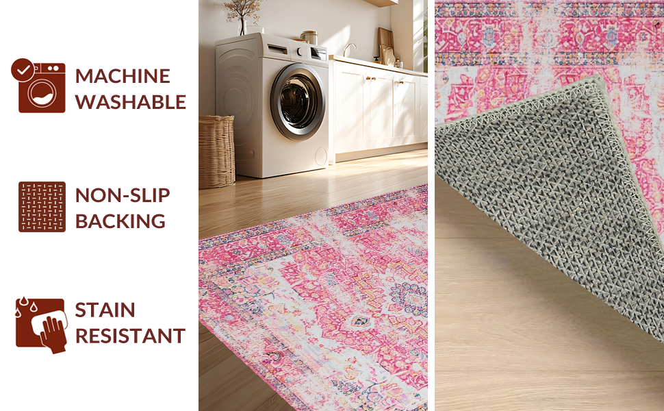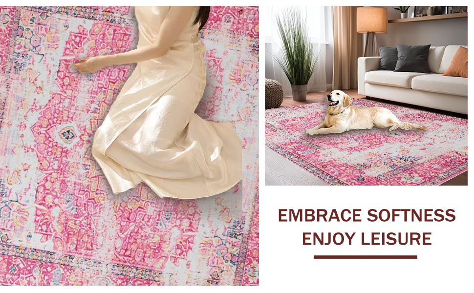 Ultra Soft Area Rug, Non Slip, Stain Resistant, Washable Area Rugs for Living Room, Bedroom, Elegant Muted Medallion Texture Vibe(Pink) Overview: