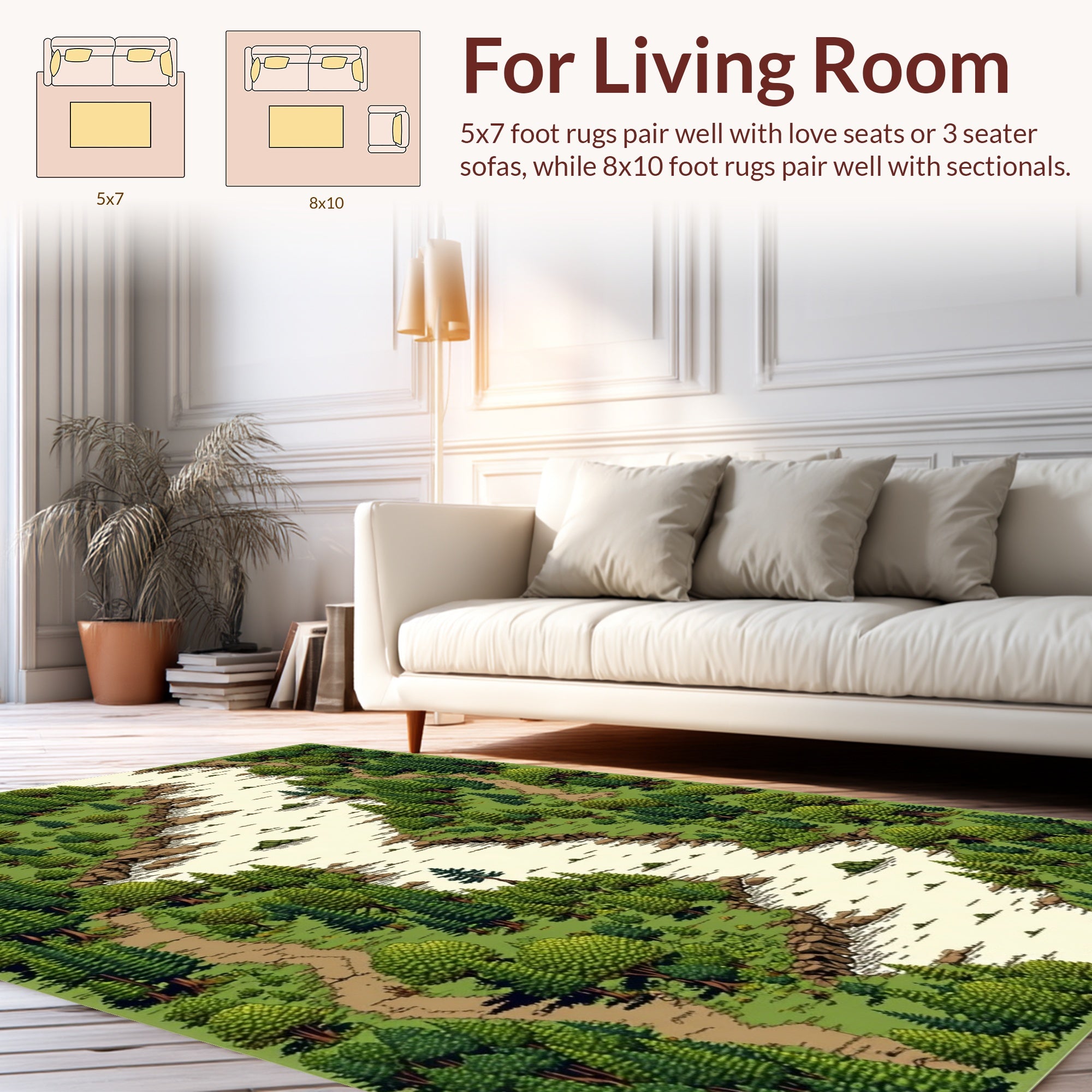 Flatwoven High Traffic Area Rug, Elegant Nature Inspired Play Surface, Non Slip, Stain Resistant, Washable Area Rugs for Living Room, Bedroom (Green) Overview: