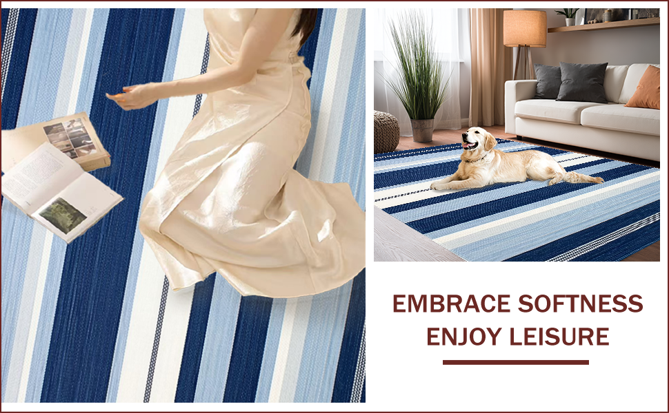 Ultra Soft Area Rug, Non Slip, Stain Resistant, Washable Area Rugs for Living Room, Bedroom, Elegant Navy Geometric Aesthetic(Blue) Overview: