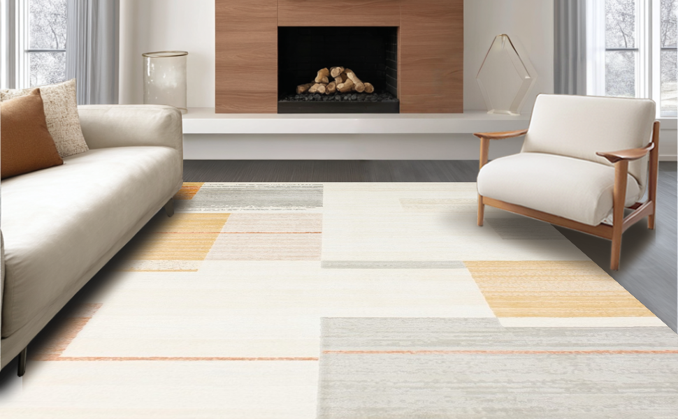 Ultra Soft Area Rug, Non Slip, Stain Resistant, Washable Area Rugs for Living Room, Bedroom, Elegant Neutral Abstract Texture(Beige) Overview: