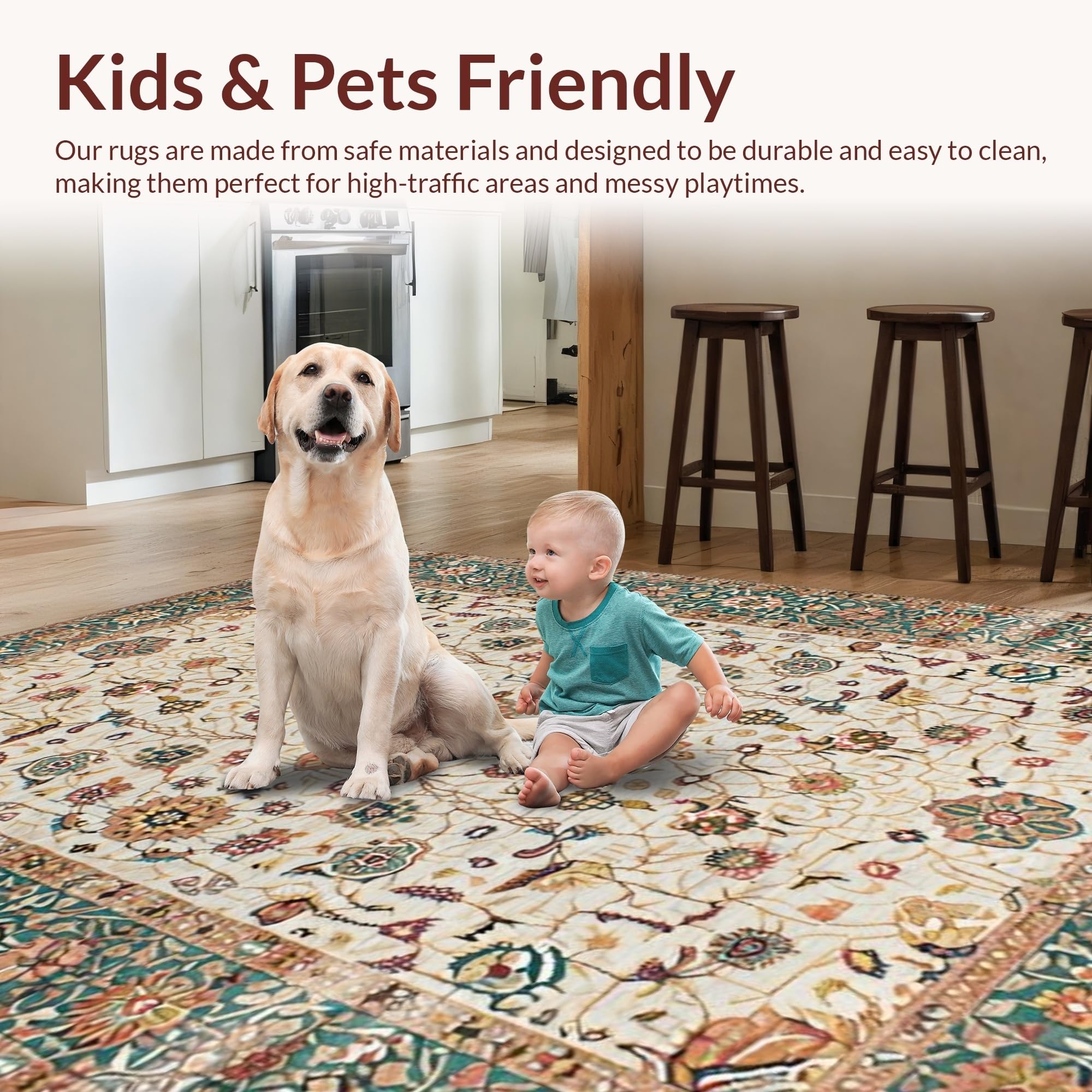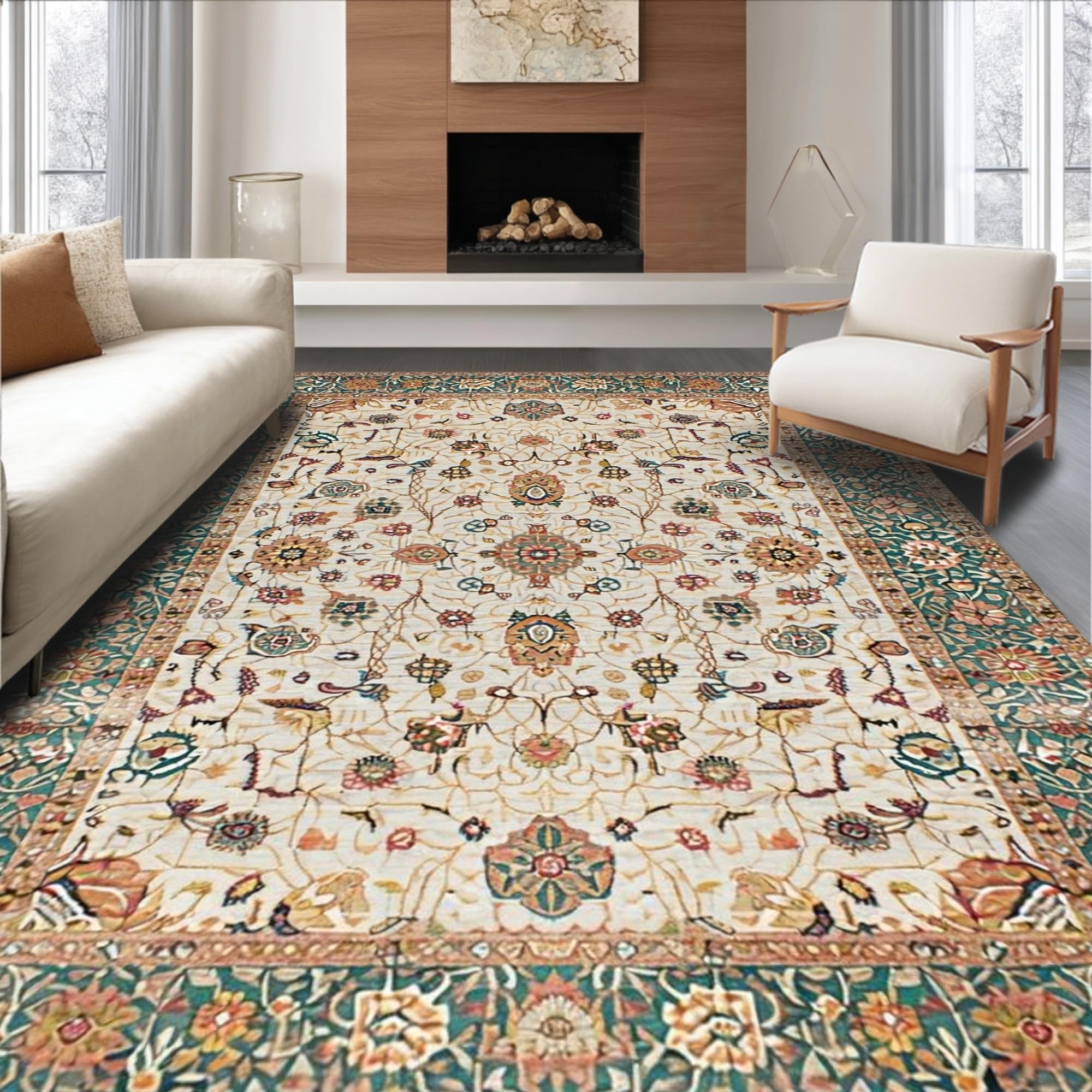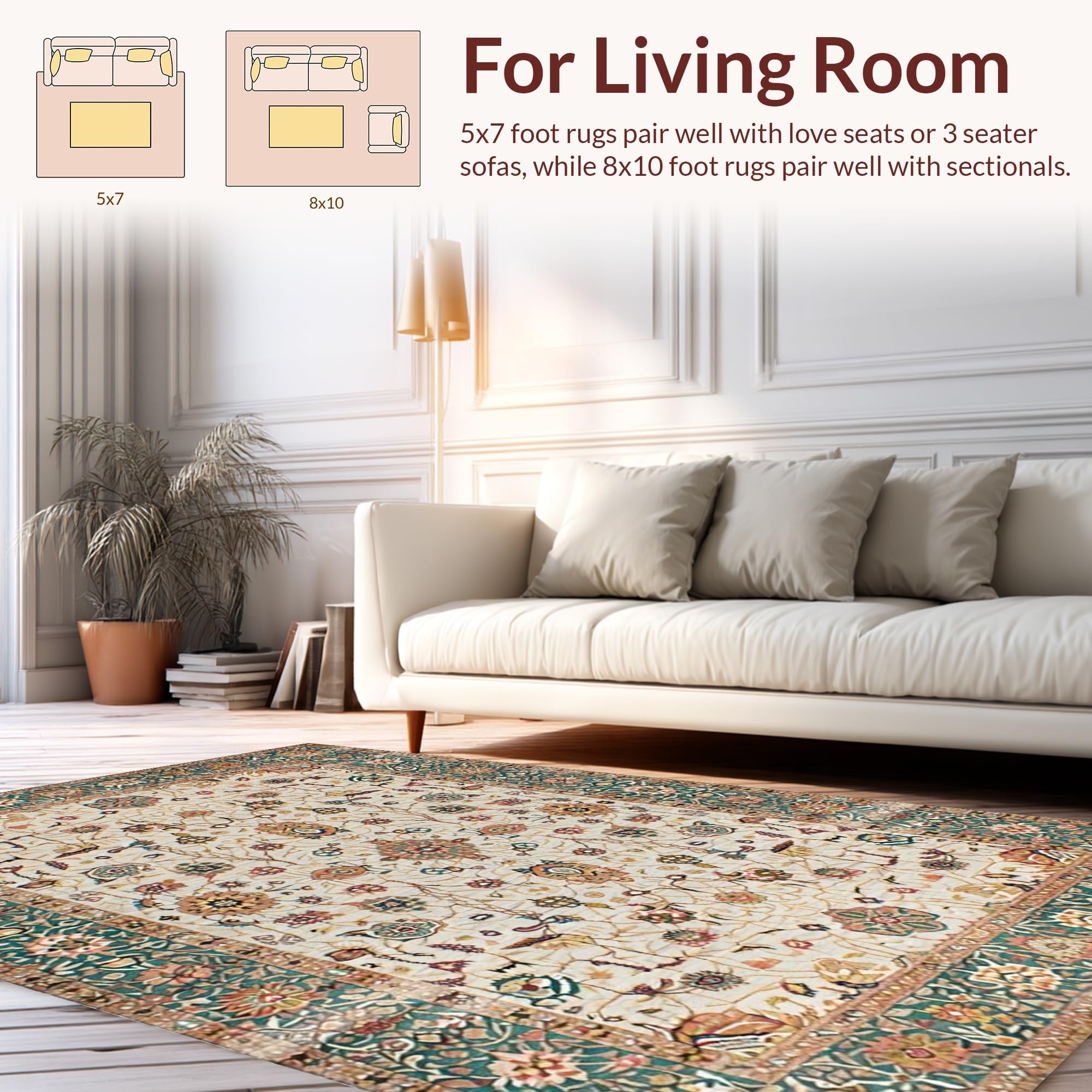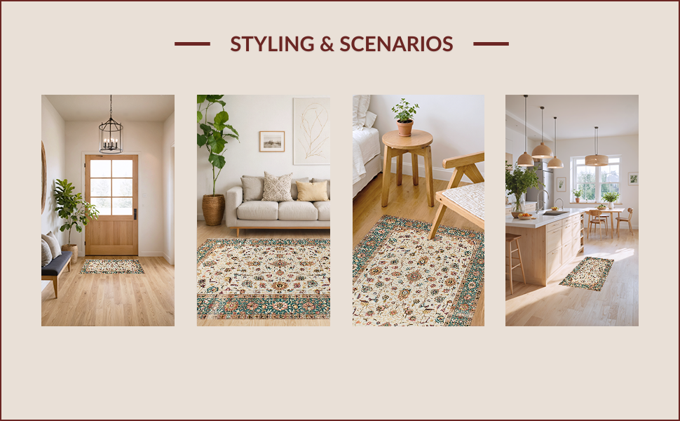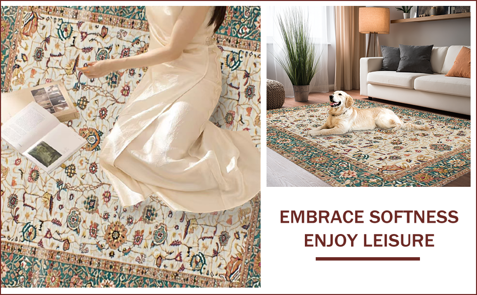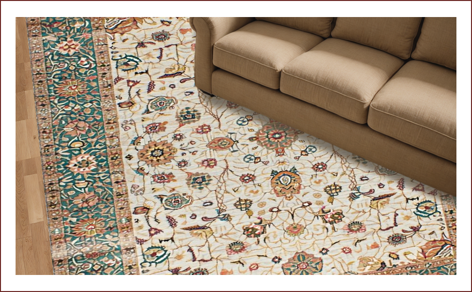 Ultra Soft Area Rug, Non Slip, Stain Resistant, Washable Area Rugs for Living Room, Bedroom, Elegant Neutral Floral Arrangement(Ivory) Overview: