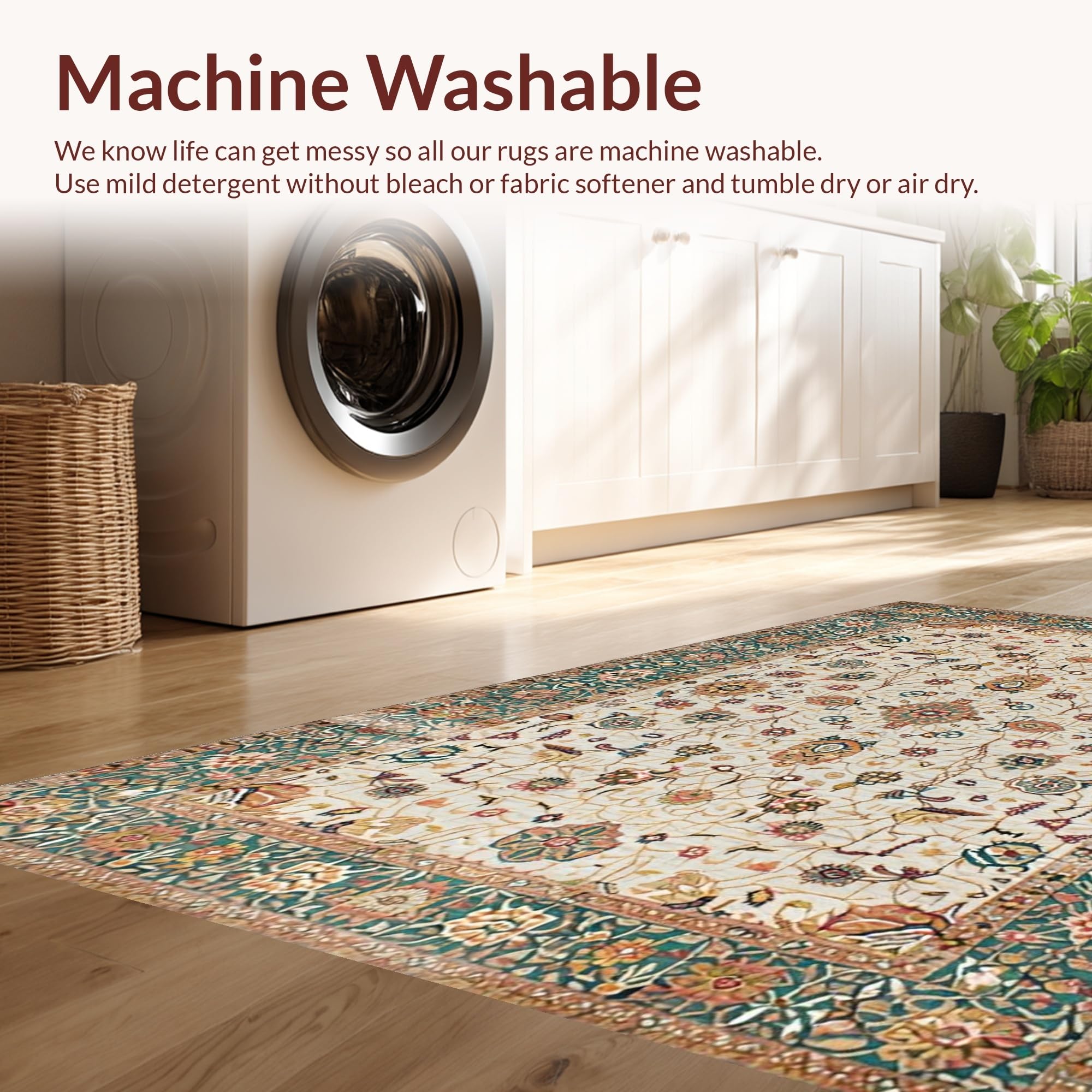 - Machine Washable: Our rugs can be easily thrown in the wash machine.
