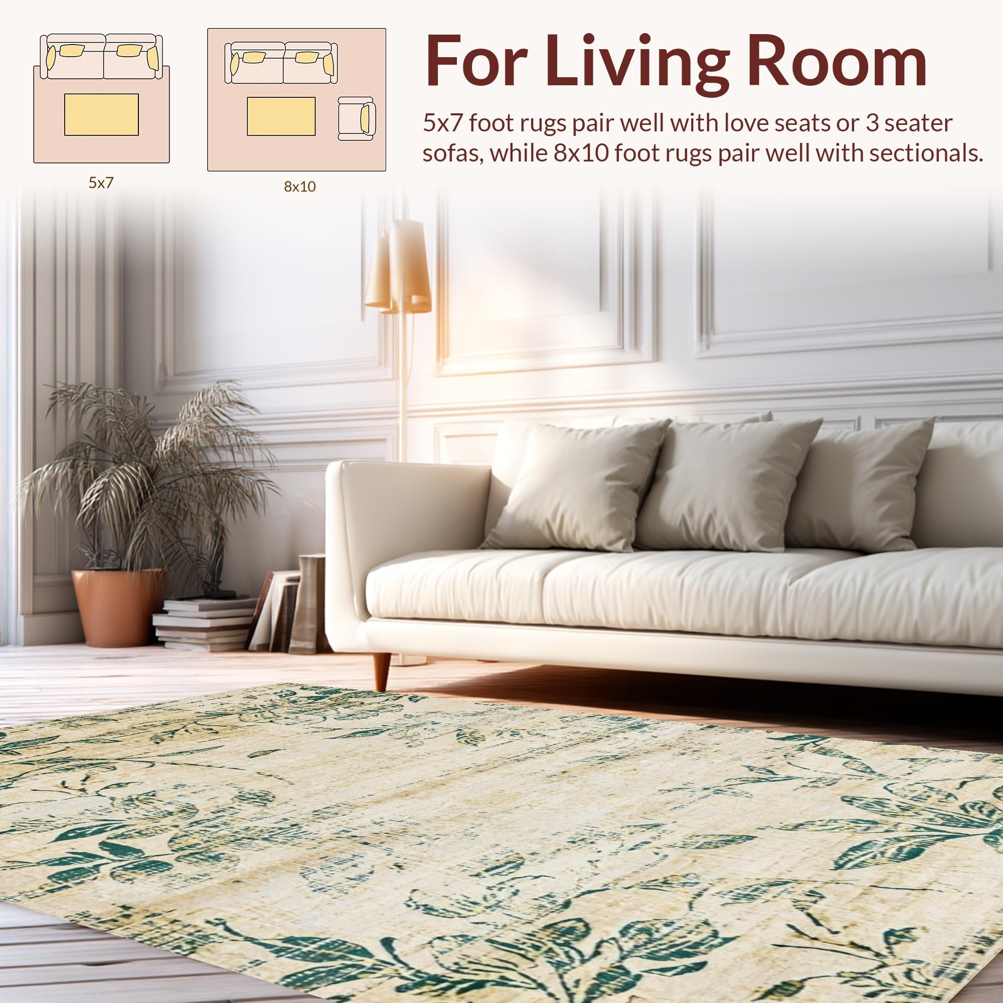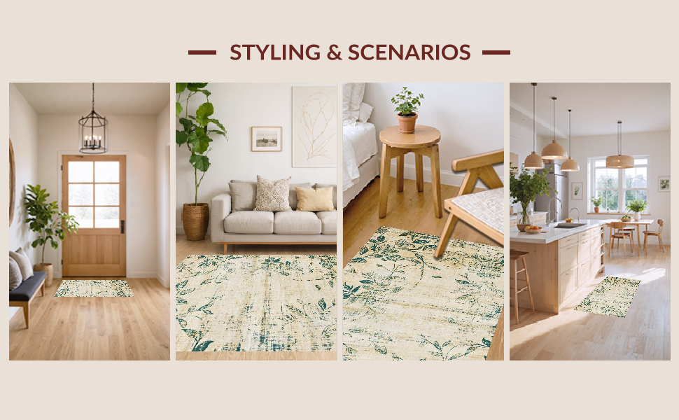 Ultra Soft Area Rug, Non Slip, Stain Resistant, Washable Area Rugs for Living Room, Bedroom, Elegant Neutral Tiled Style(Beige) Overview: