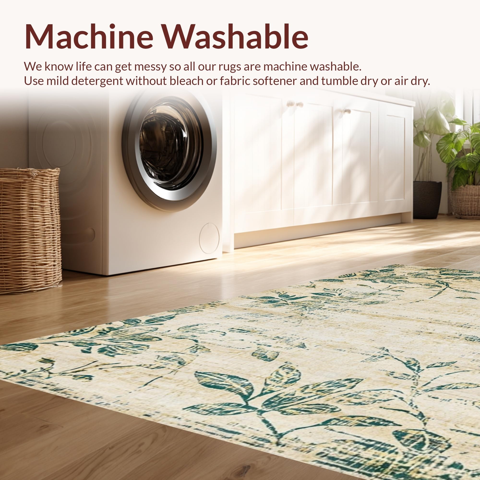 - Machine Washable: Our rugs can be easily thrown in the wash machine.