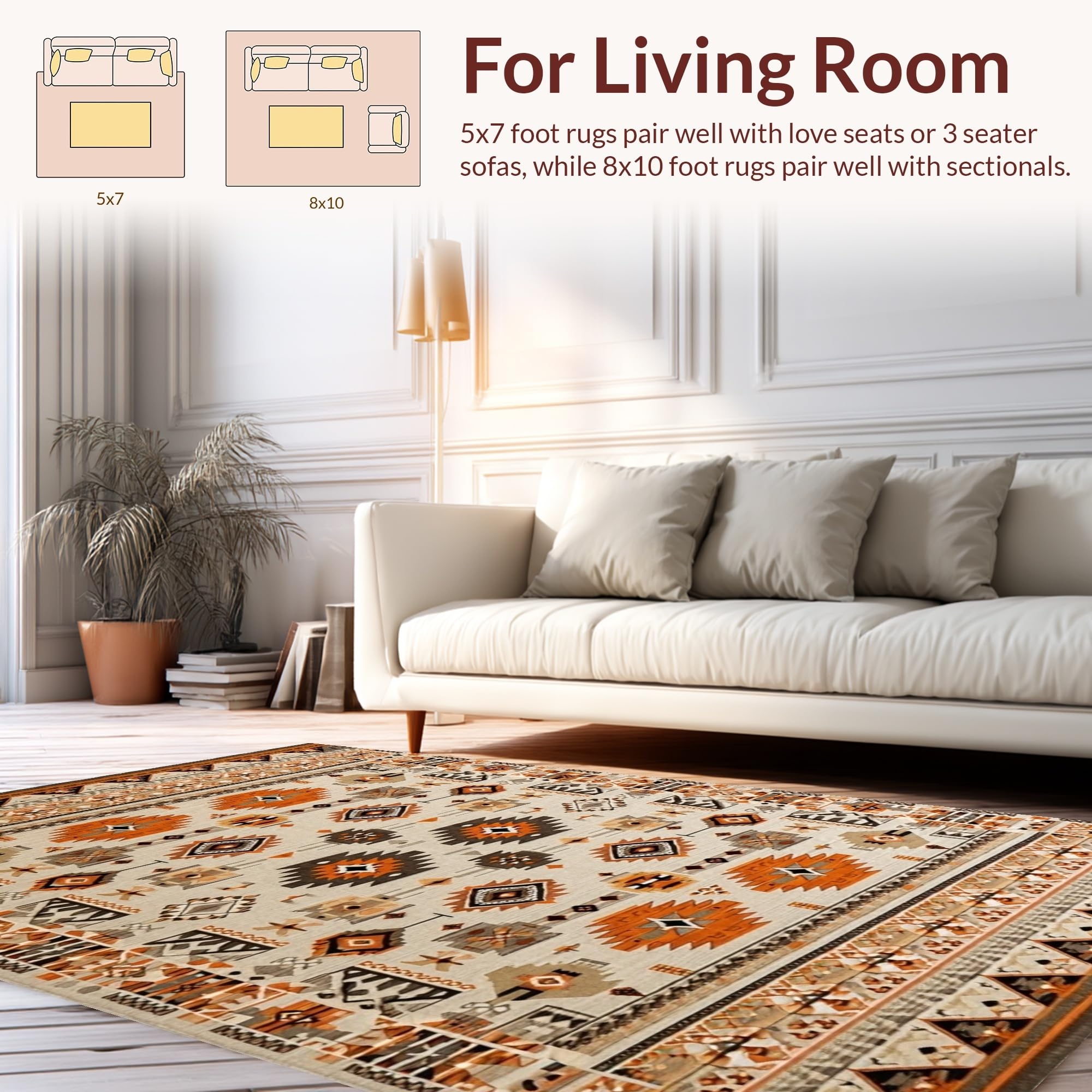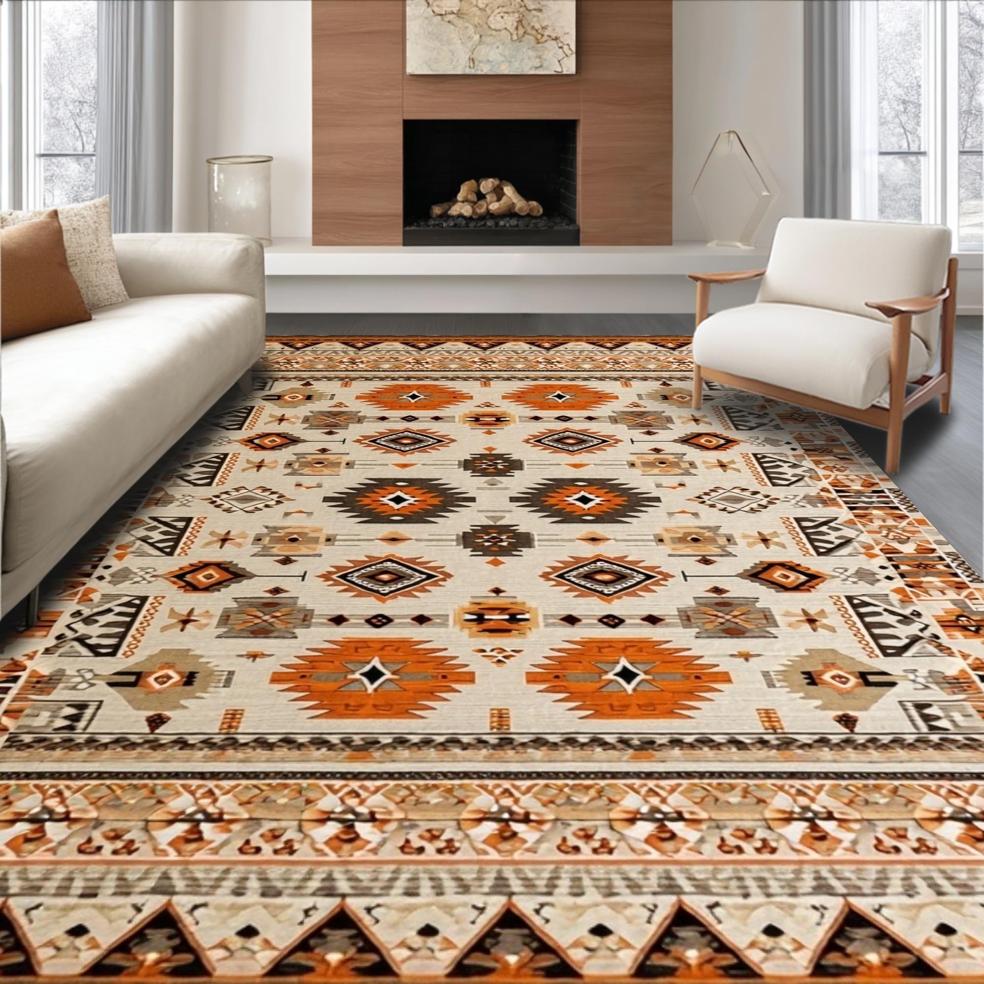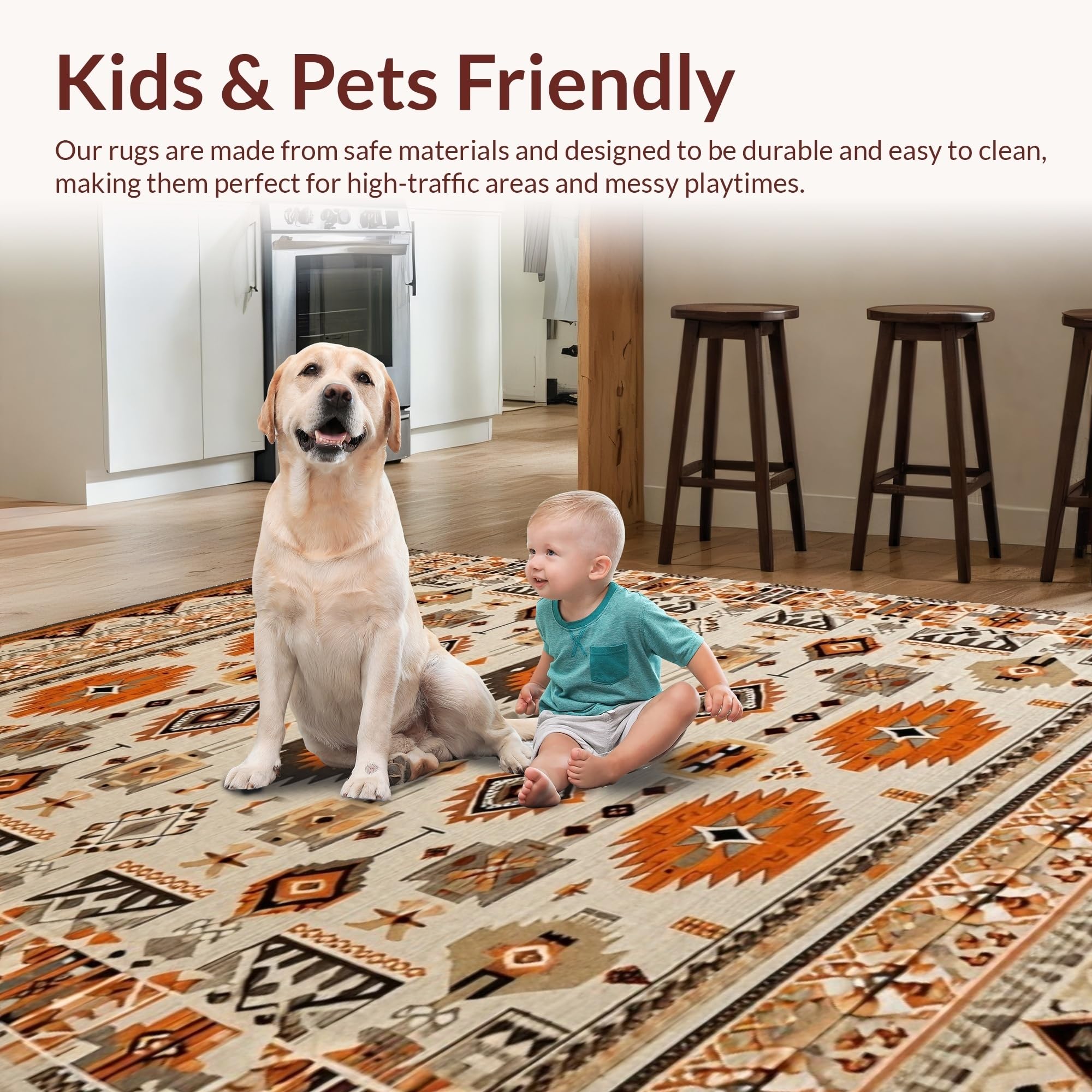 Ultra Soft Area Rug, Non Slip, Stain Resistant, Washable Area Rugs for Living Room, Bedroom, Elegant Ogee Patterned Design(Beige) Overview: