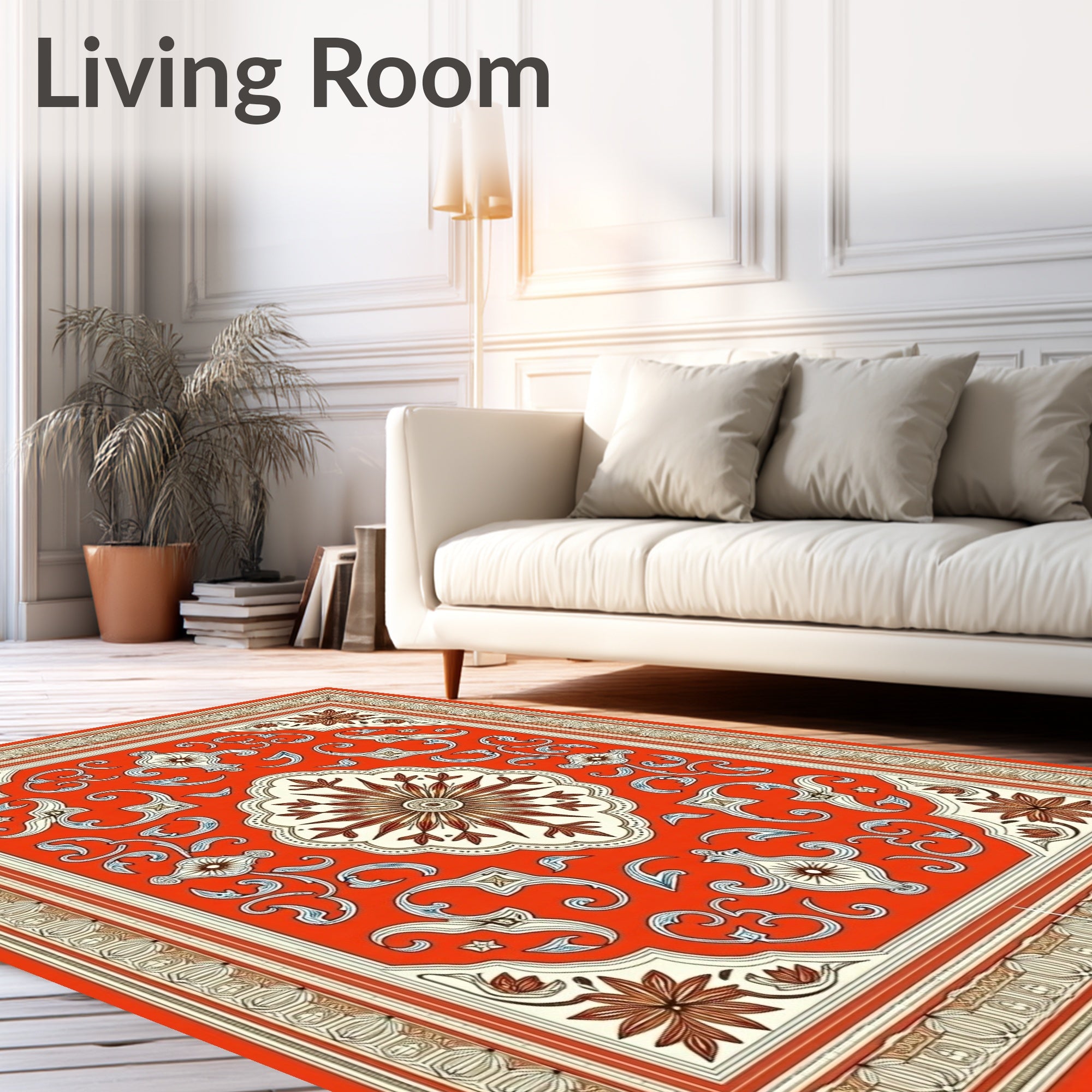 Ultra Soft Area Rug, Non Slip, Stain Resistant, Washable Area Rugs for Living Room, Bedroom, Elegant Paisley Flourish with Vintage Botanical Embellishments(Red) Overview: