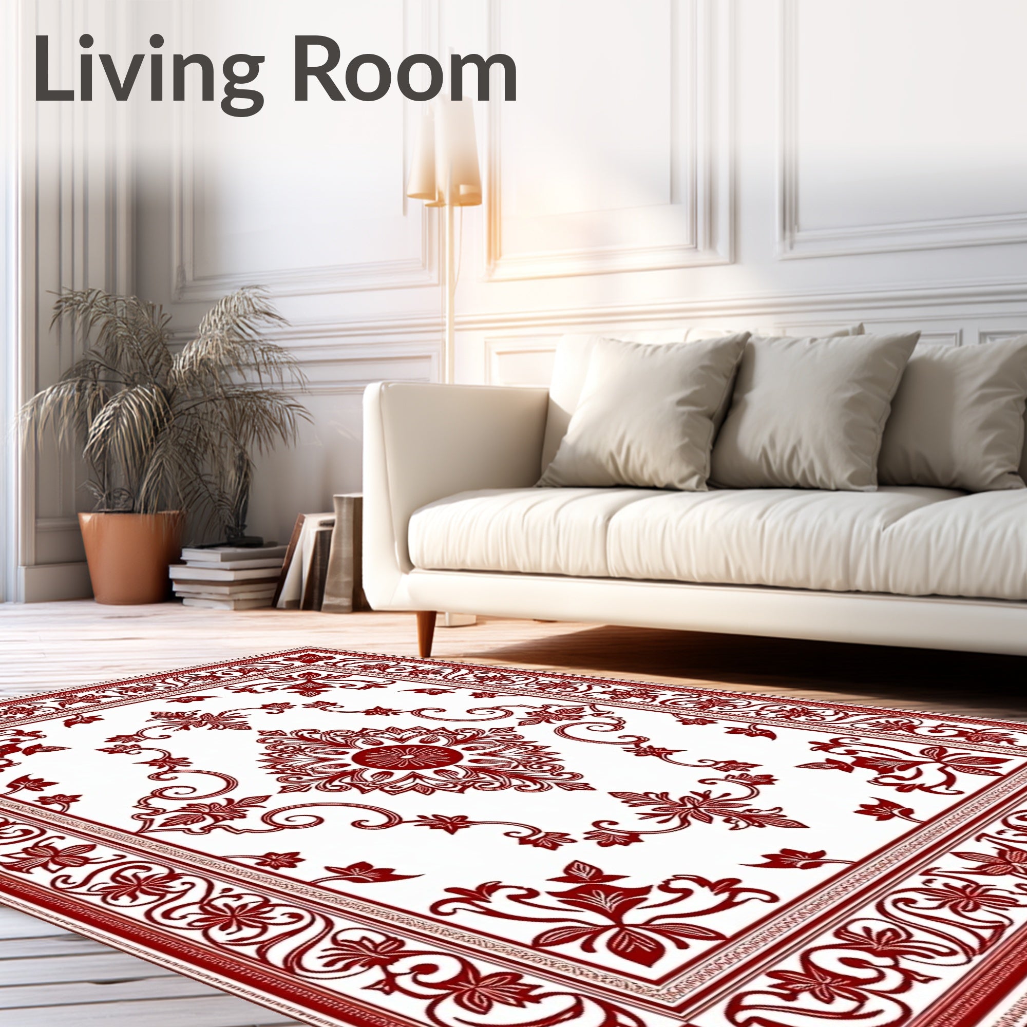 Ultra Soft Area Rug, Non Slip, Stain Resistant, Washable Area Rugs for Living Room, Bedroom, Elegant Paisley Medallion Tapestry Vintage Botanical Symphony(Red) Overview: