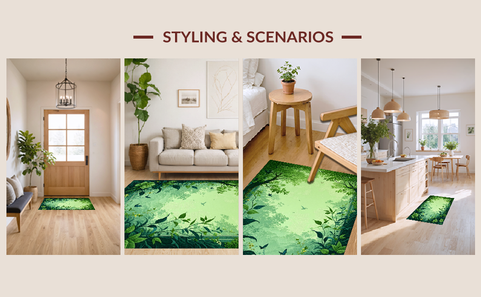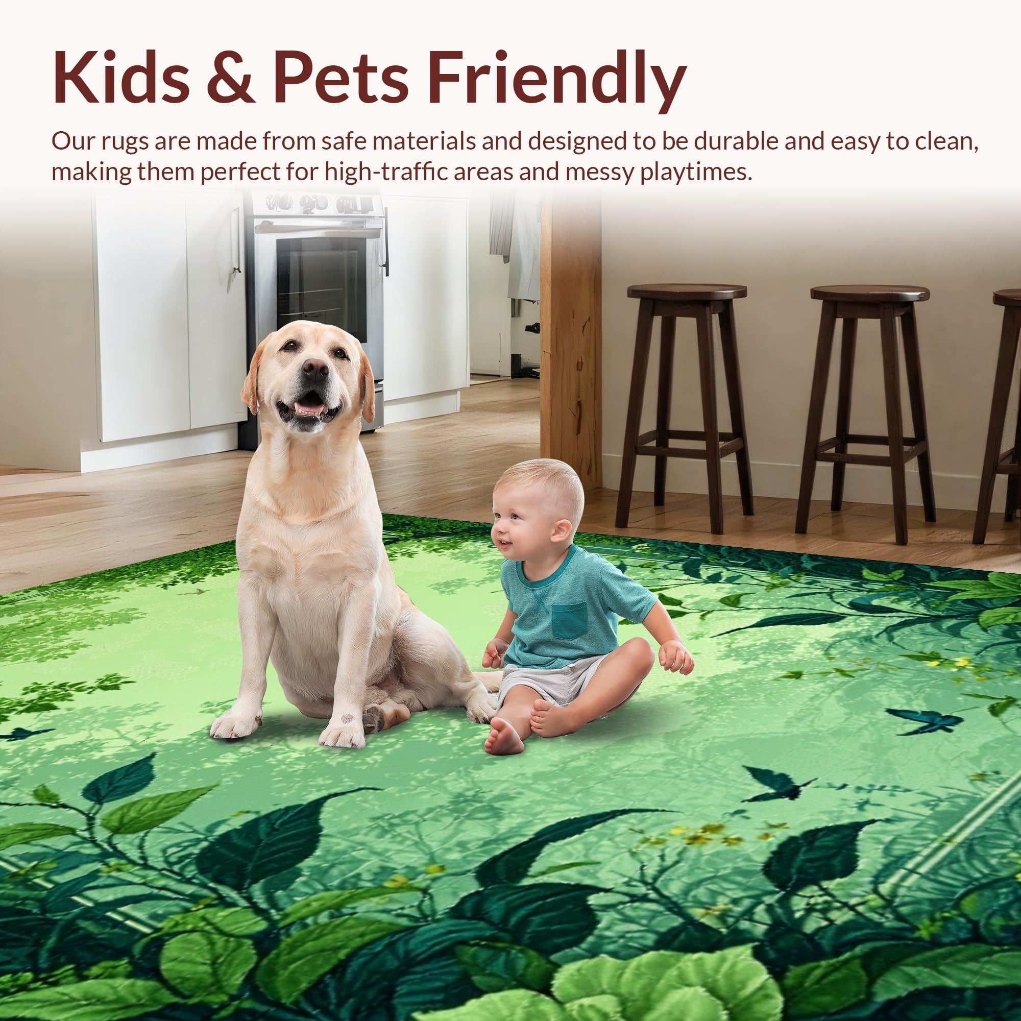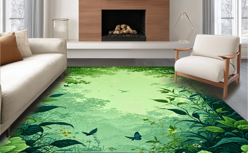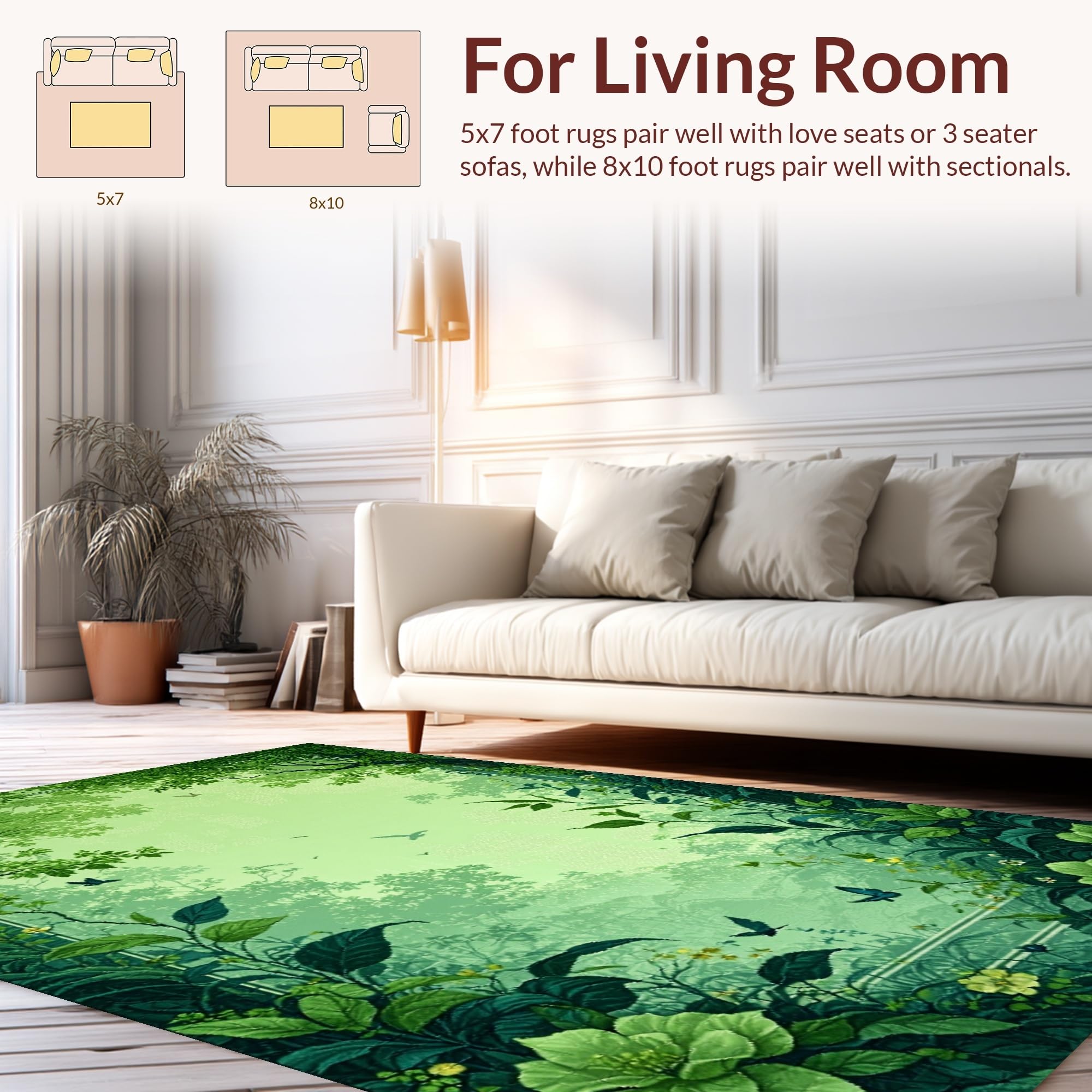 Ultra Soft Area Rug, Non Slip, Stain Resistant, Washable Area Rugs for Living Room, Bedroom, Elegant Pastel Floral Accents(Green) Overview: