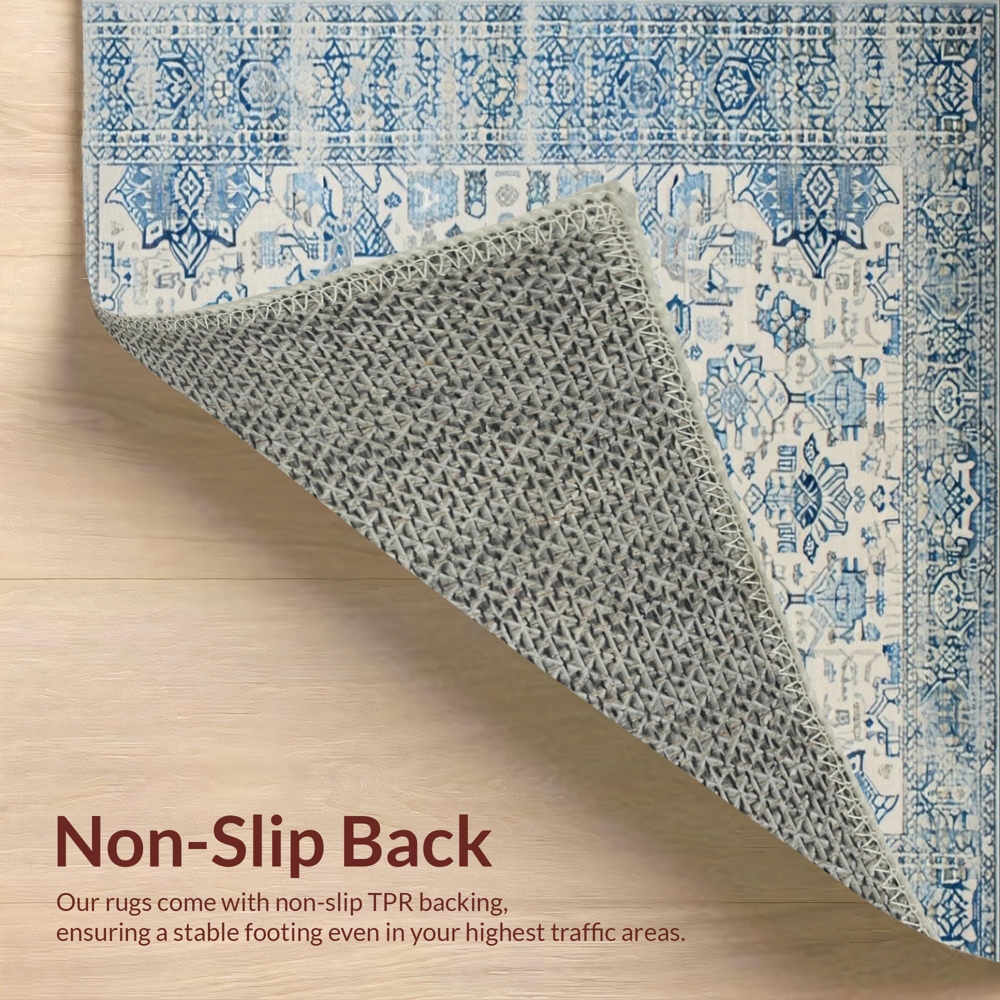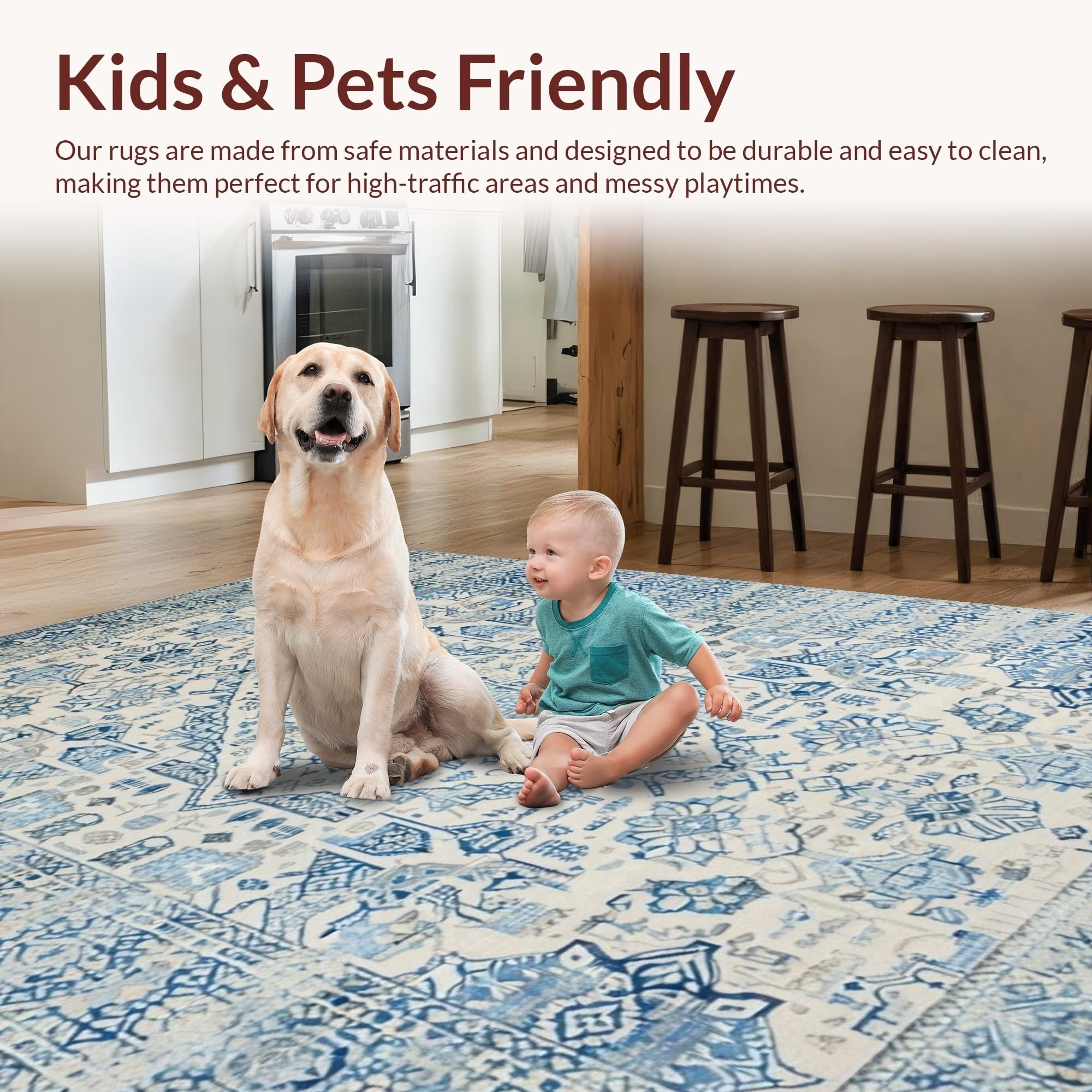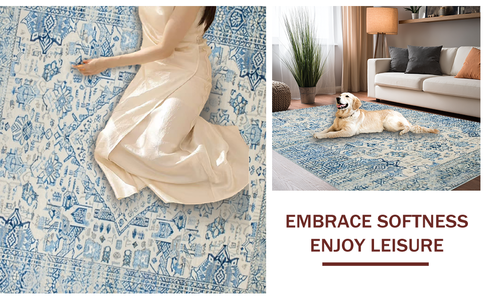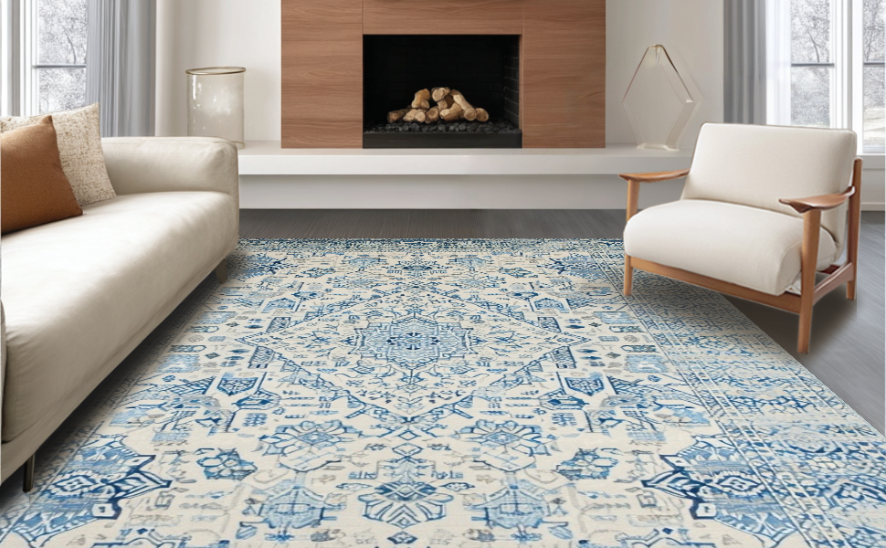 Ultra Soft Area Rug, Non Slip, Stain Resistant, Washable Area Rugs for Living Room, Bedroom, Elegant Pastel Geometric Accent(Blue) Overview: