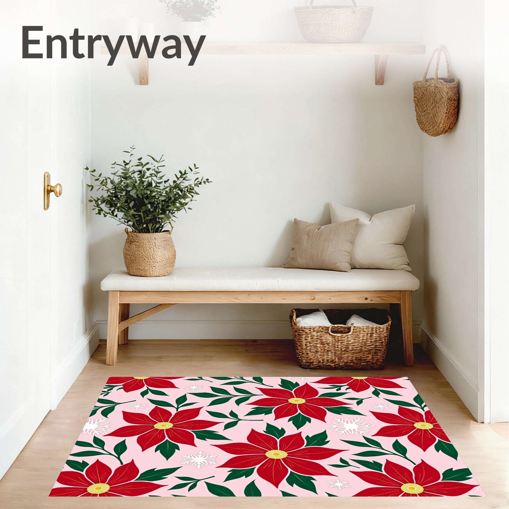 Ultra Soft Area Rug, Non Slip, Stain Resistant, Washable Area Rugs for Living Room, Bedroom, Elegant Poinsettia Blossom Seasonal Entrance Festive Accent(Pink) Overview: