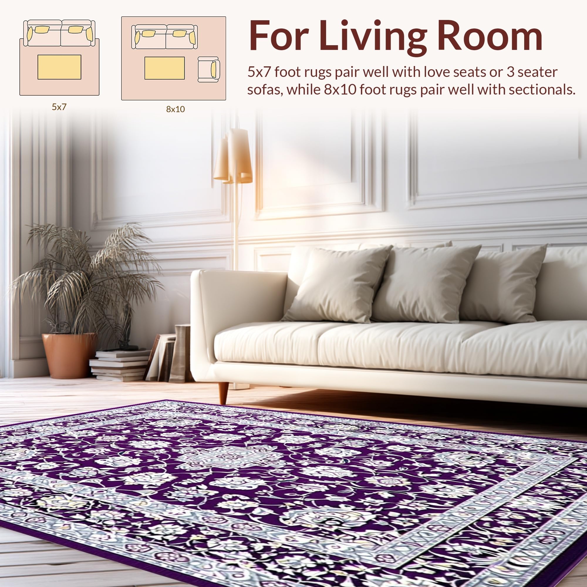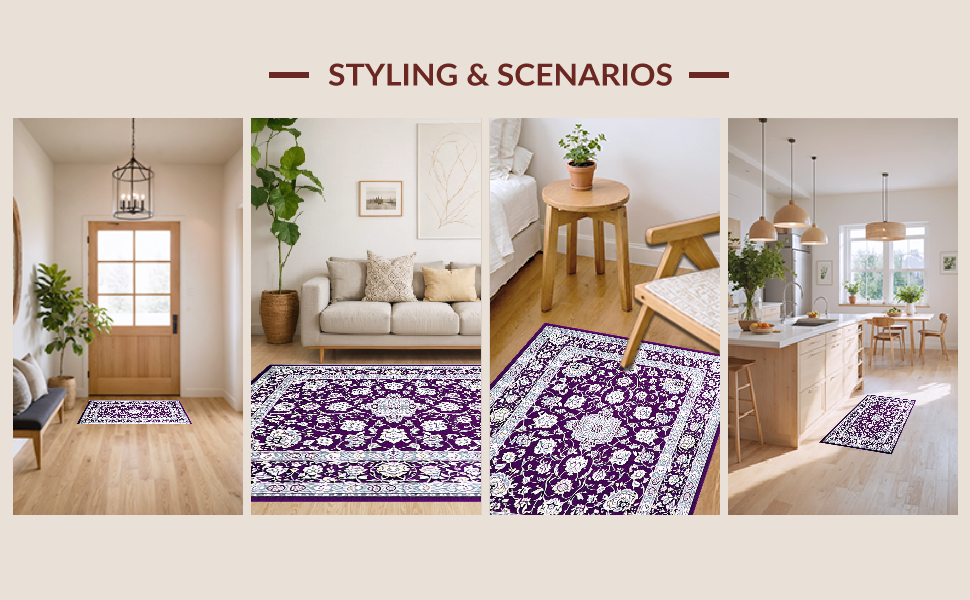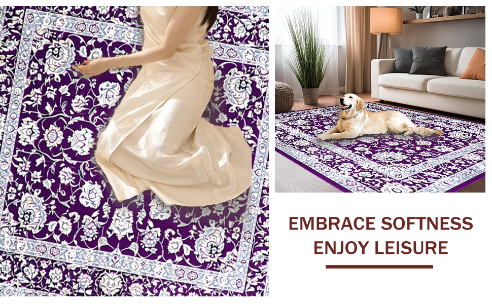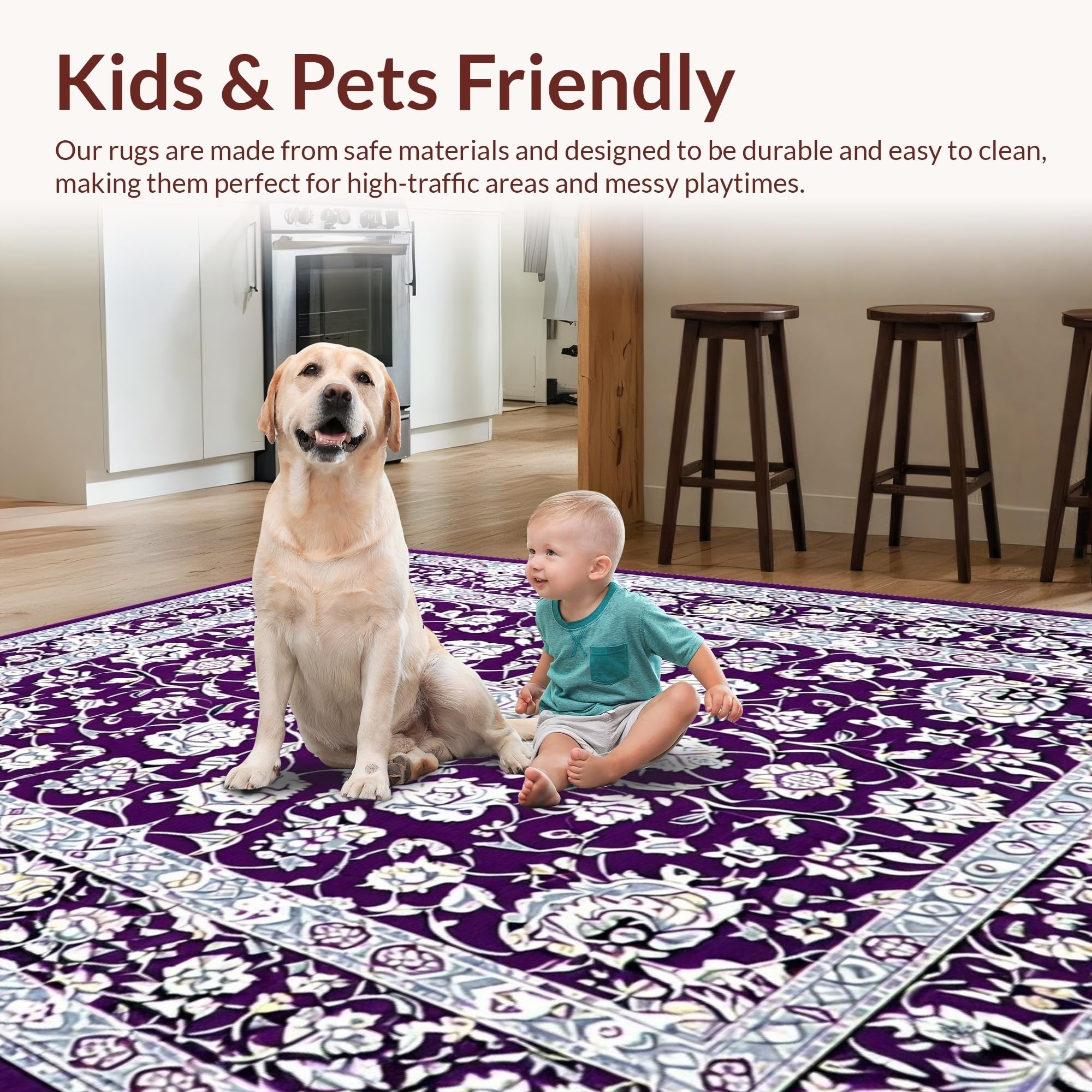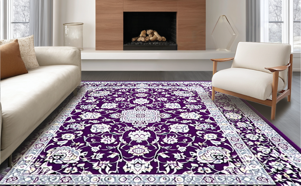 Ultra Soft Area Rug, Non Slip, Stain Resistant, Washable Area Rugs for Living Room, Bedroom, Elegant Purple Tiled Texture(Purple) Overview: