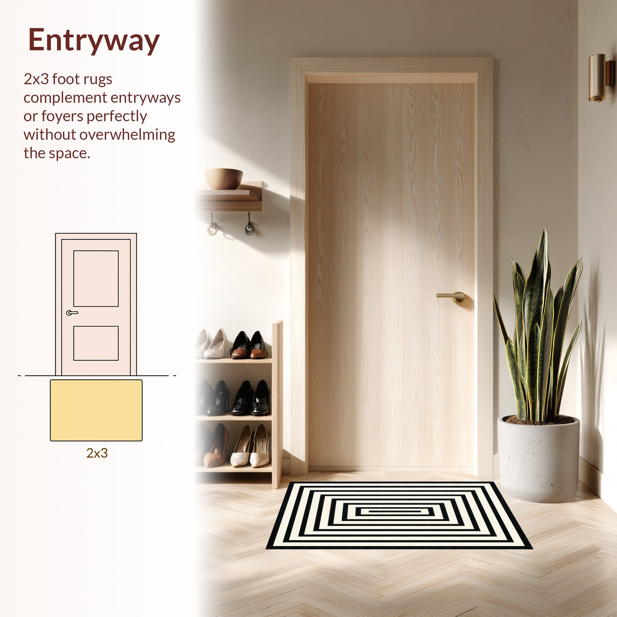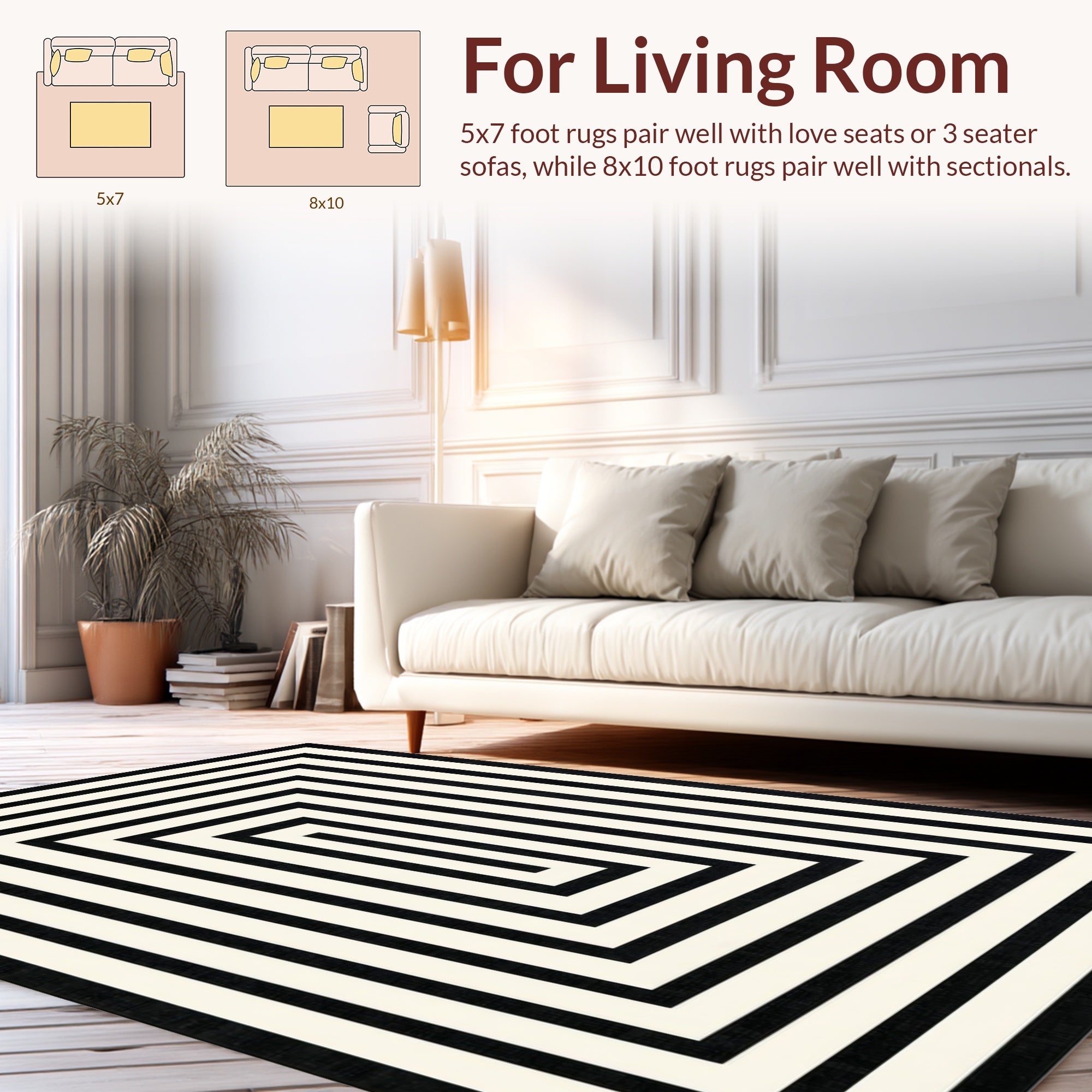 Flatwoven High Traffic Area Rug, Elegant Repetitive Chevron Stripe Design, Non Slip, Stain Resistant, Washable Area Rugs for Living Room, Bedroom (Black) Overview: