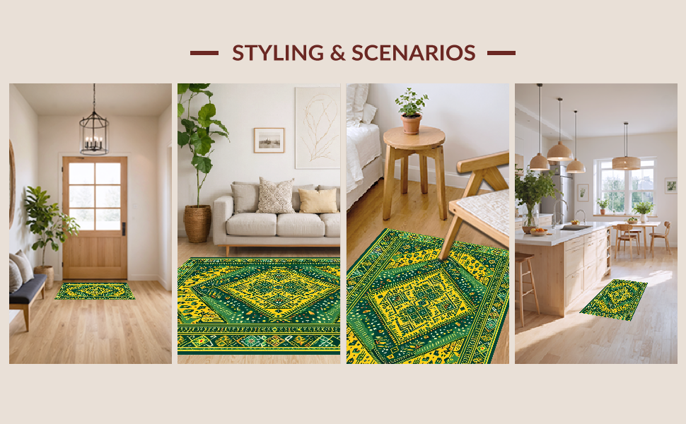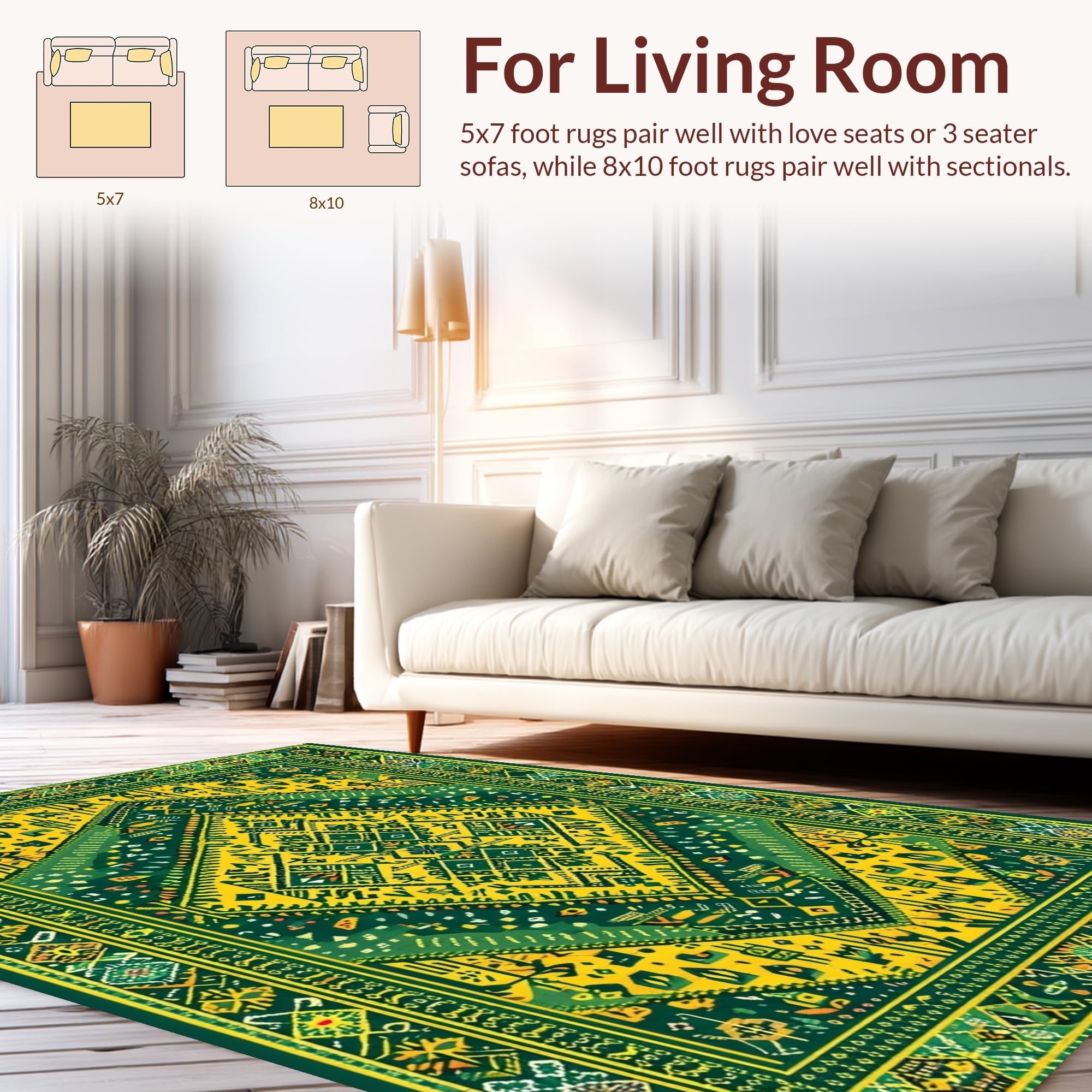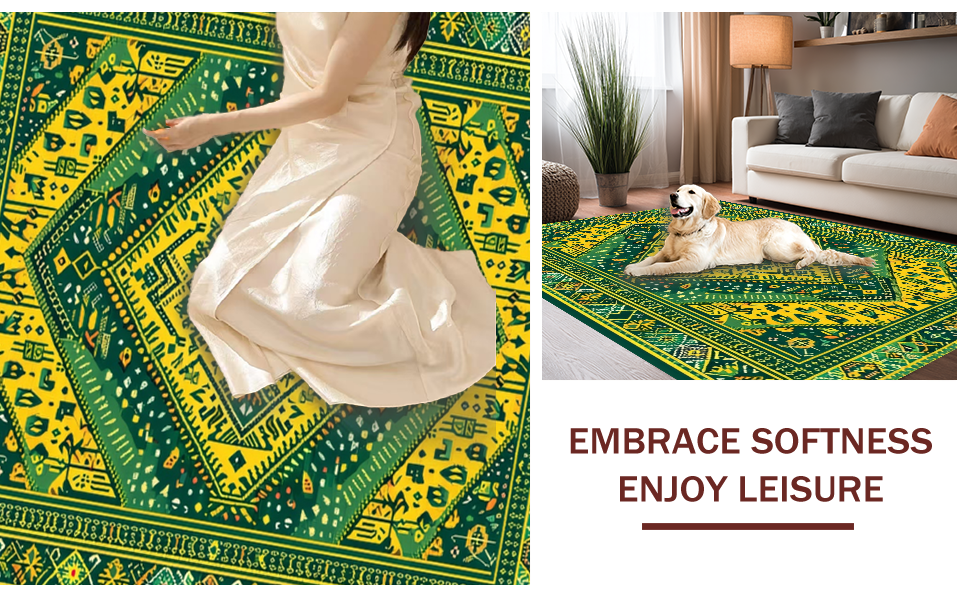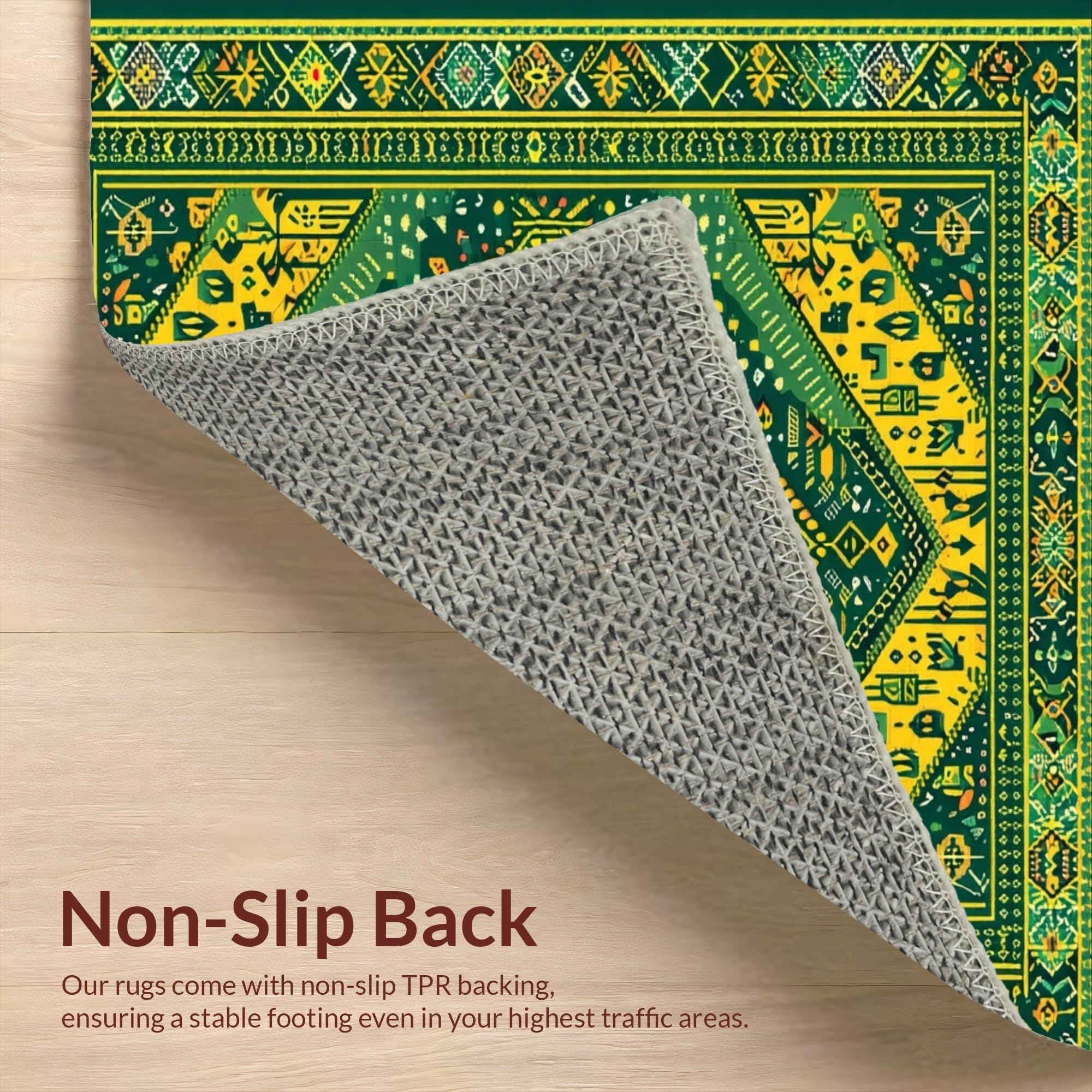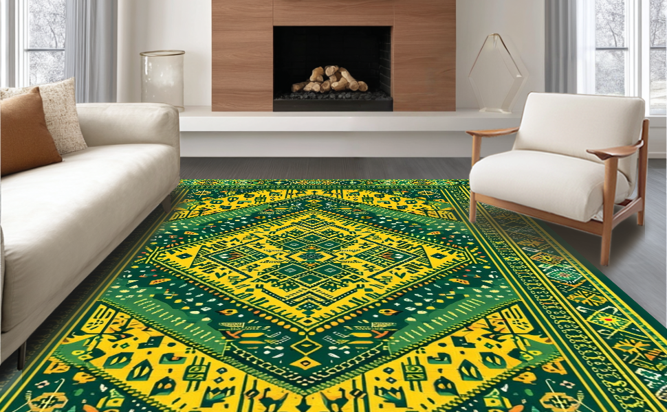 Ultra Soft Area Rug, Non Slip, Stain Resistant, Washable Area Rugs for Living Room, Bedroom, Elegant Retro Ogee Pattern(Green) Overview: