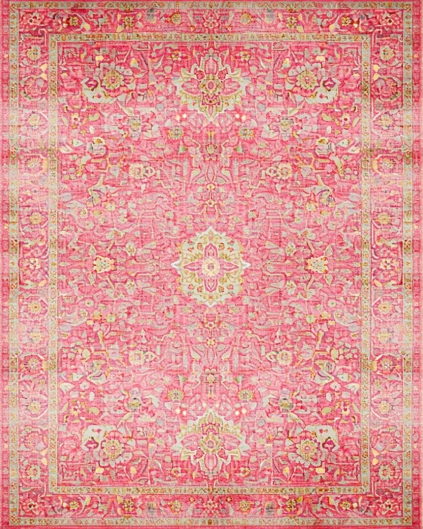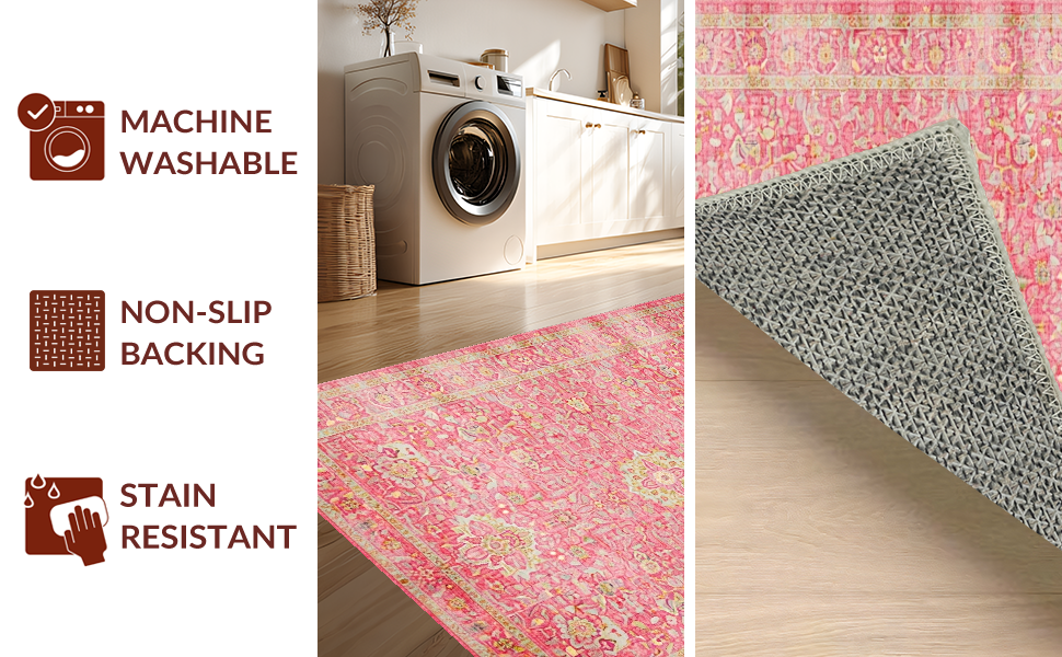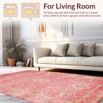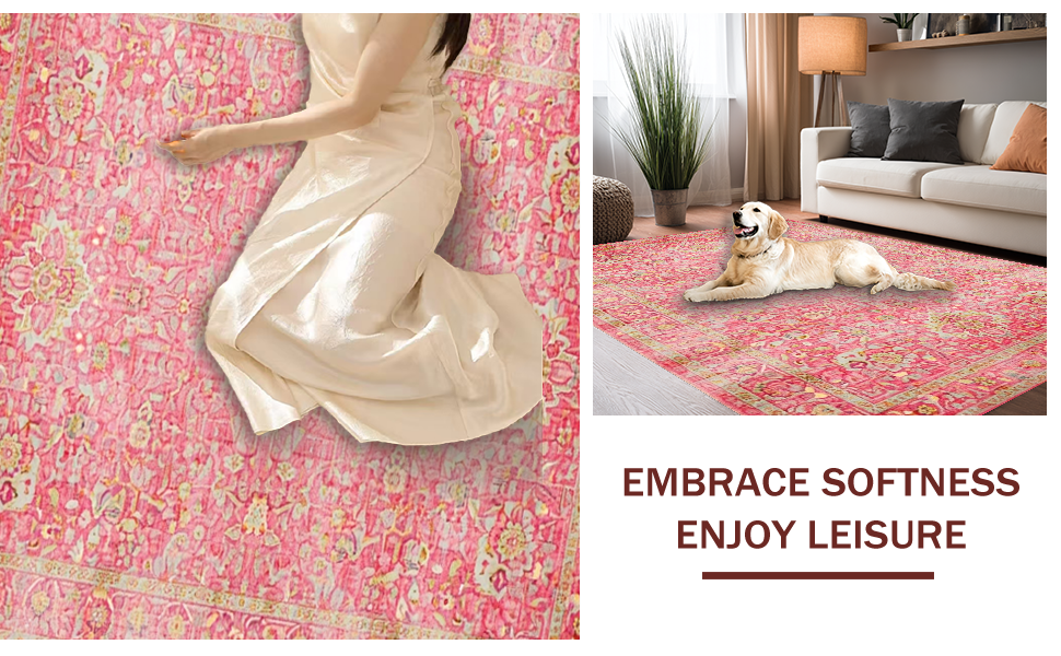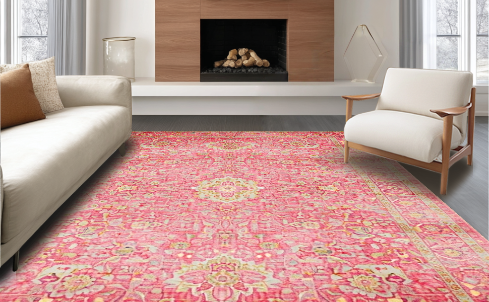 Ultra Soft Area Rug, Non Slip, Stain Resistant, Washable Area Rugs for Living Room, Bedroom, Elegant Rose Ethnic Pattern(Pink) Overview: