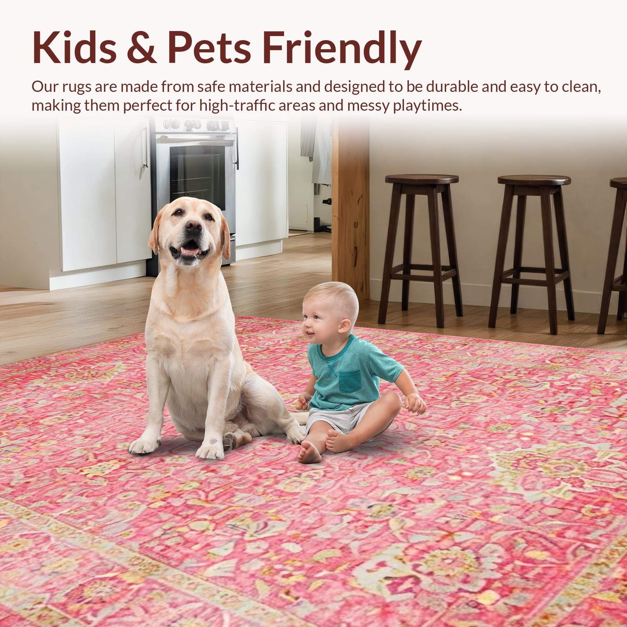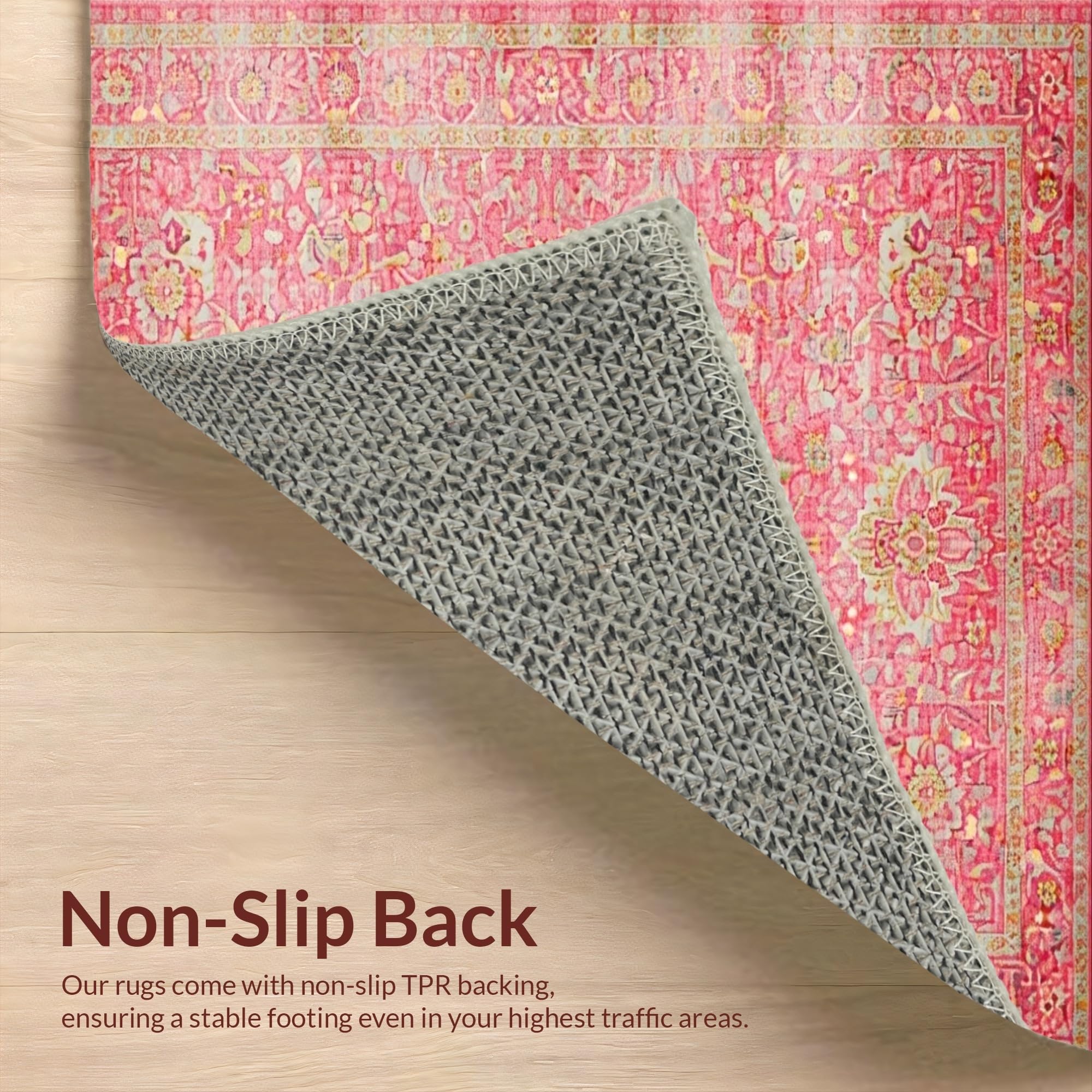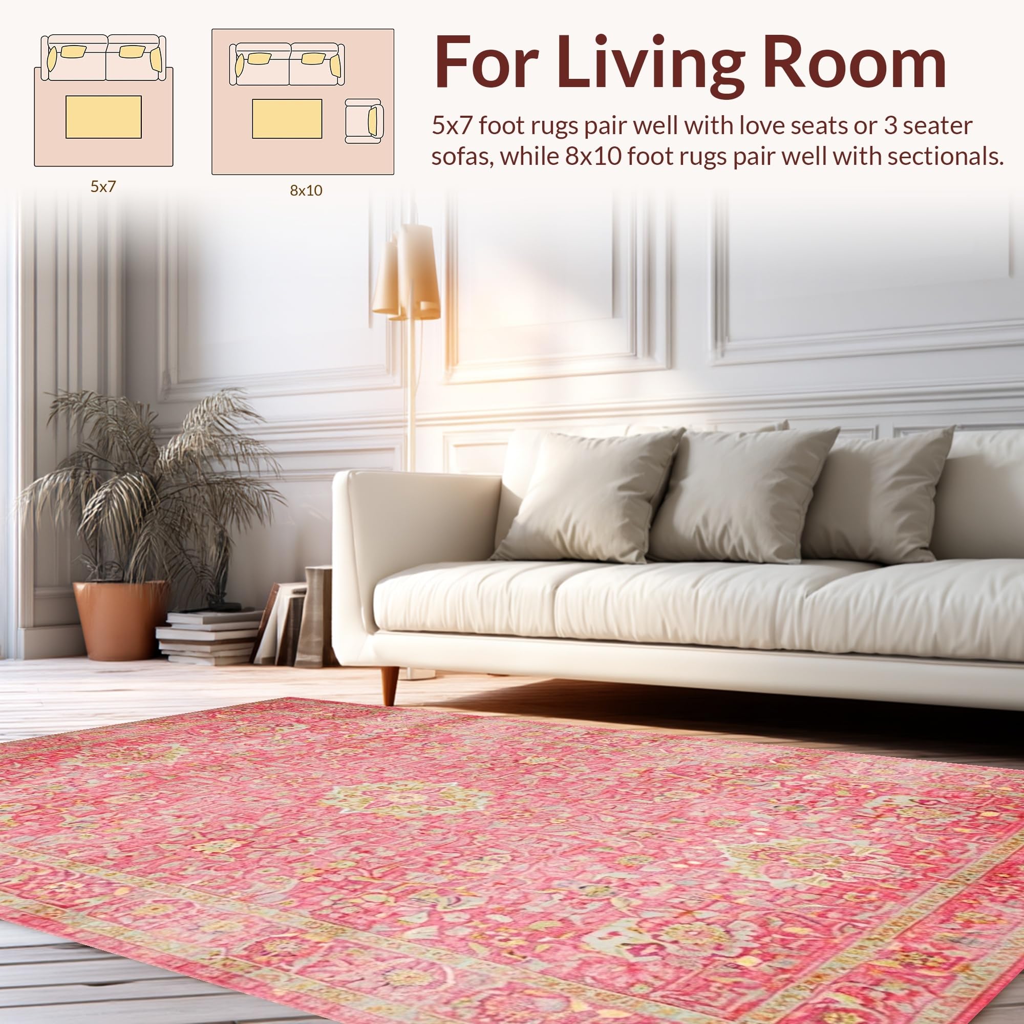 Ultra Soft Area Rug, Non Slip, Stain Resistant, Washable Area Rugs for Living Room, Bedroom, Elegant Rose Ethnic Pattern(Pink) Overview: