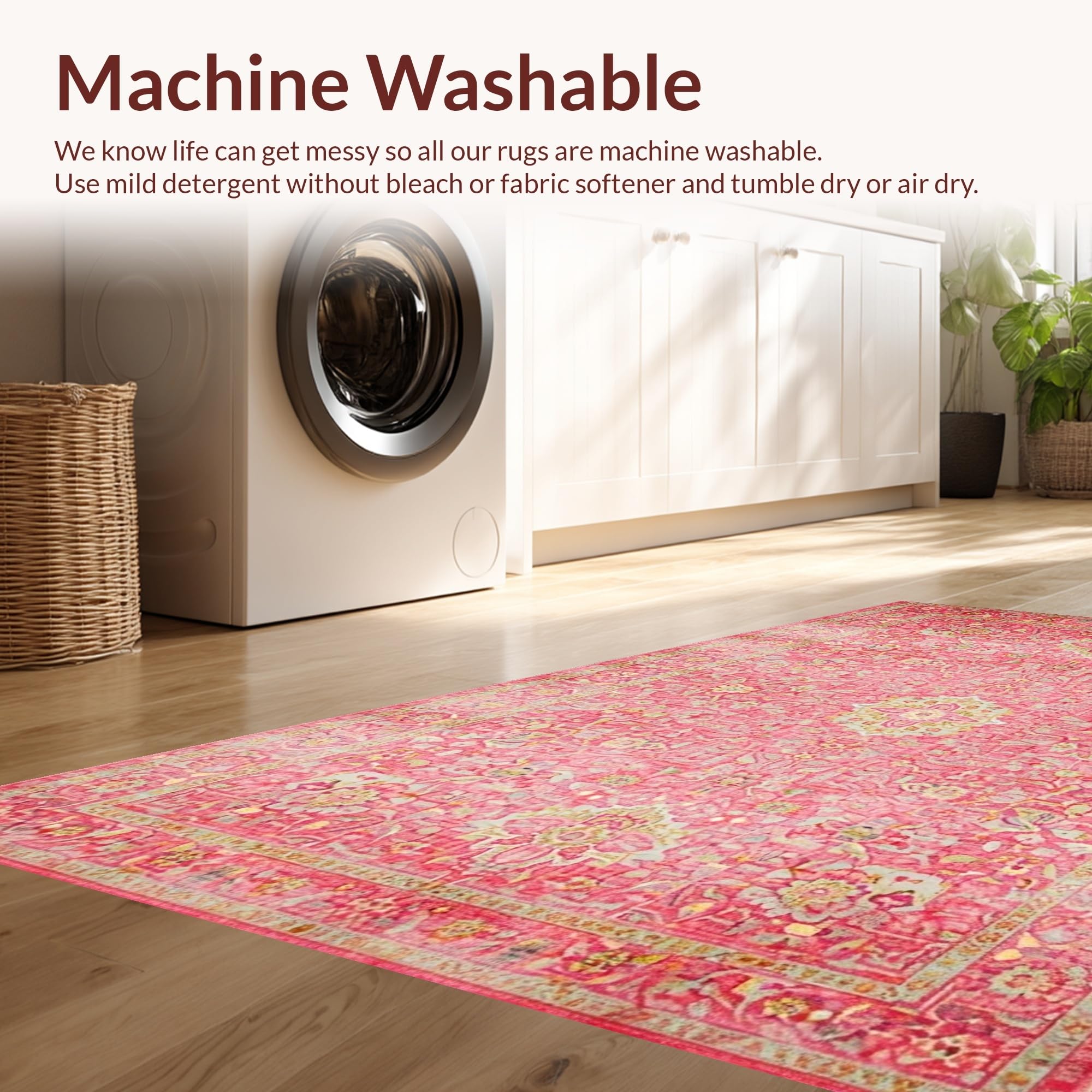- Machine Washable: Our rugs can be easily thrown in the wash machine.
